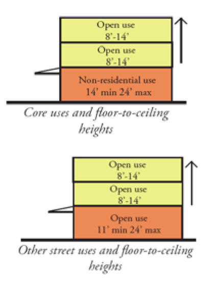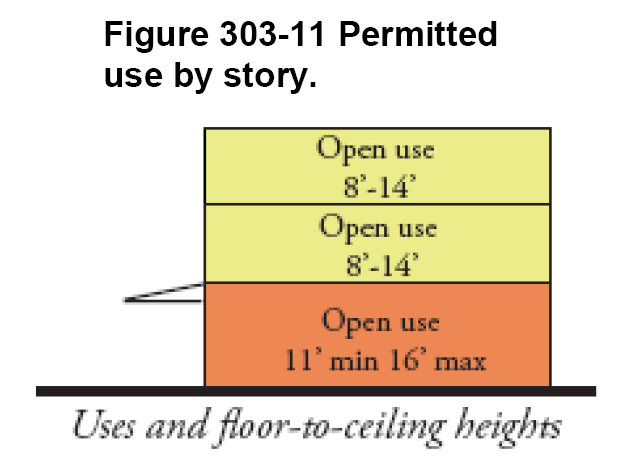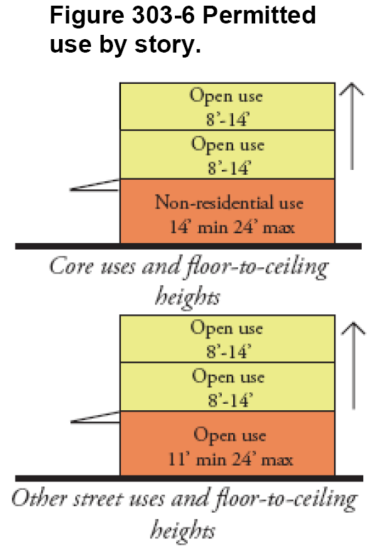 The types of ground story configurations that are allowed along street frontages, called "frontage types", which are discussed further in section 300-50, below.