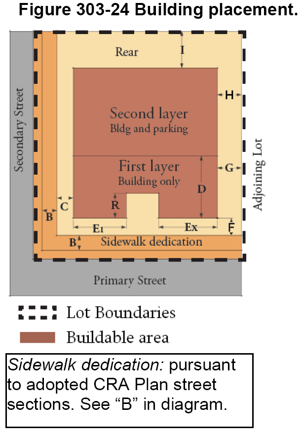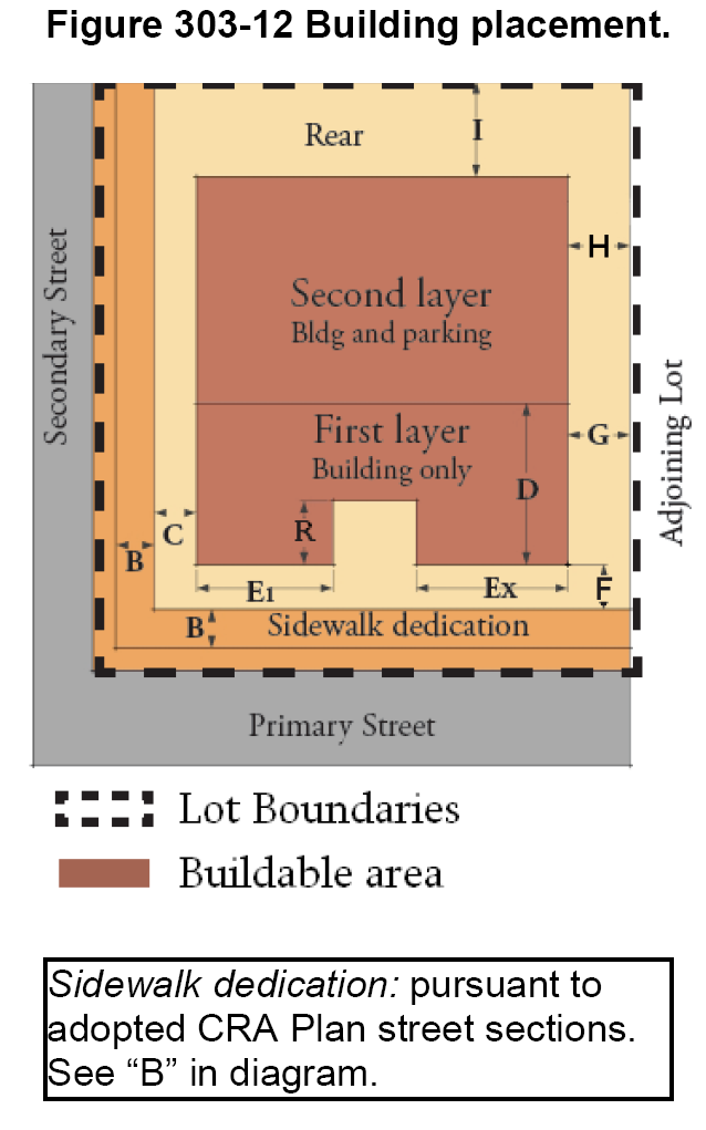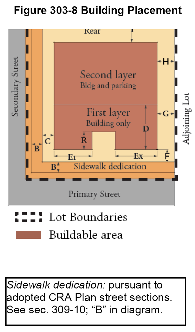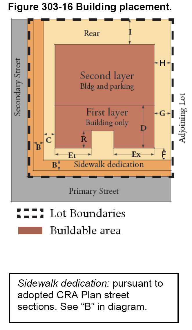 See additional regulations found in section 301-20(B) for maximum intensity/density limits permitted within the CRA and Comprehensive Plan.