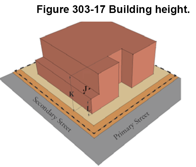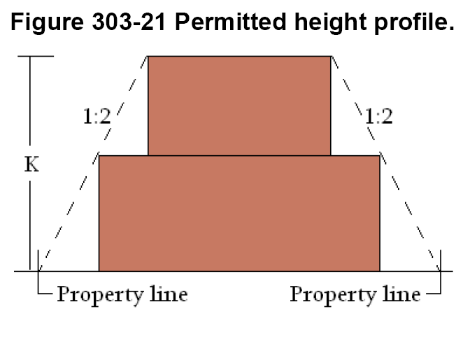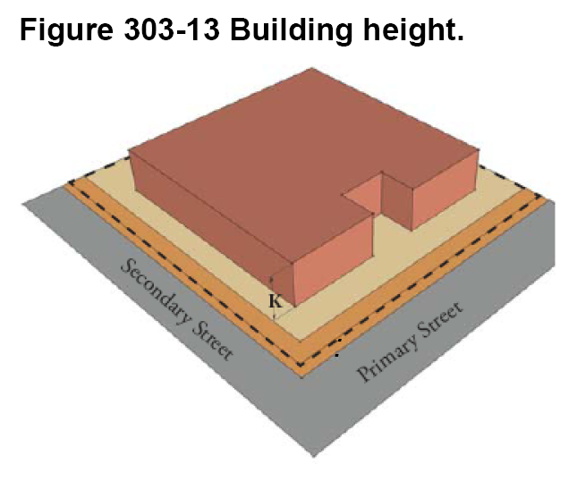 The district standards in article 303 for each district include a map showing maximum allowable height within the district. Permitted height varies within some districts based upon location. Article 304 has the rules for interpreting the maps.