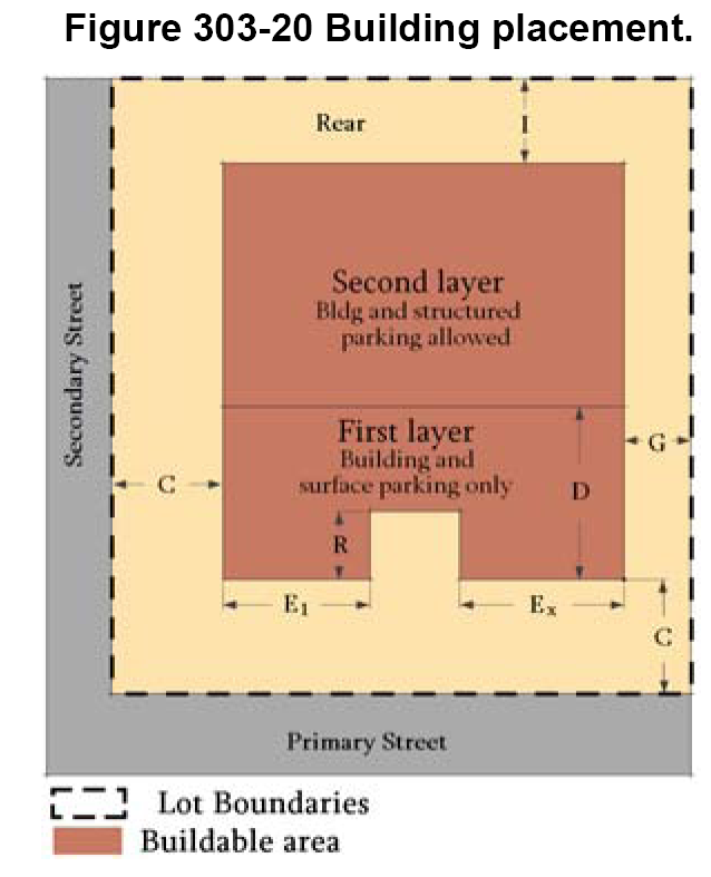 Building placement and height standards, discussed further in section 300-30, below.