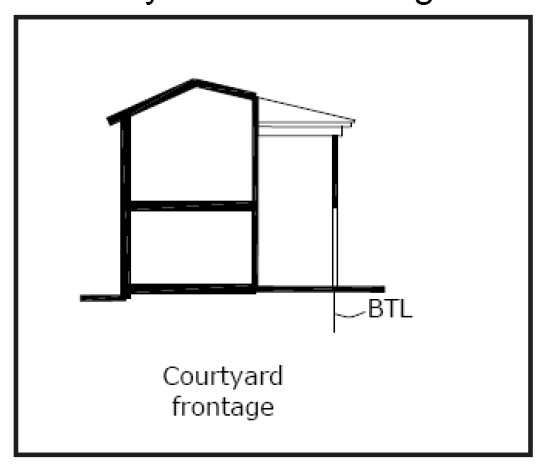 The street BTL for courtyard frontages shall be the same BTL required for shopfront, porch or stoop frontages used in combination with the courtyard.