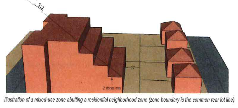 Maintain, and enhance when possible, the stability and property values of residential neighborhoods through compatible transitions to nonresidential properties, and through building form standards that bring new or expanded dwellings closer to the street with a renewed emphasis on the front yard.