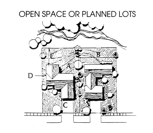 (A) Open Space or Planned Lots: This dwelling type consists of fully detached, single-family residences located on individual lots. Different lot standards apply depending upon the district in which the open or planned lot is located. All open space or planned lots must be located within a "open space" or "planned" development as permitted in section 12-32 and conforming to the residential performance standards contained in section 12-53.