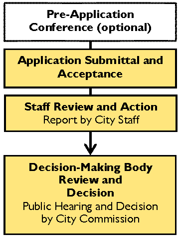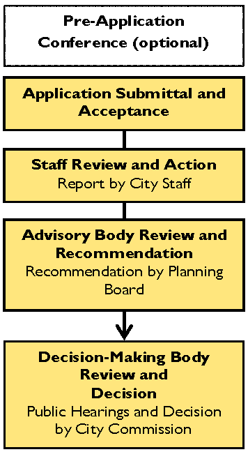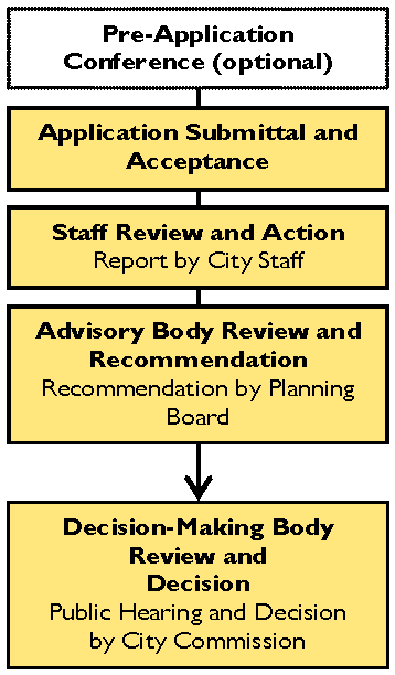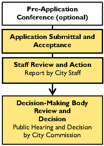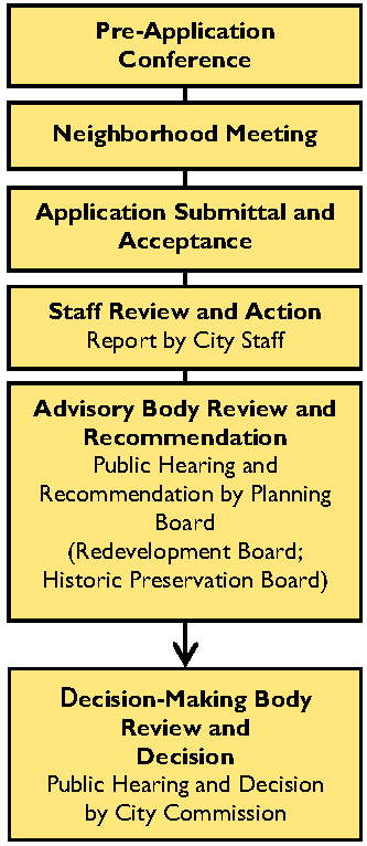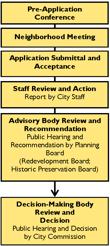Application Submittal and Acceptance. Applicable. (See Section 3.3.C.) Applications may be initiated by the City Commission, the Planning Board, a Redevelopment Board, or City staff, as well as a person who may submit an application in accordance with Section 3.3.C.1, Authority to Submit Applications.