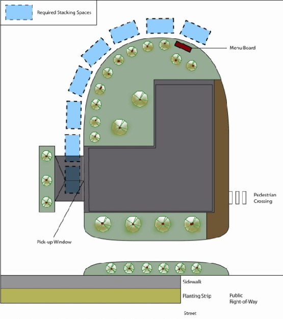 Figure 6.2.E.3 Stacking spaces for a drive-through restaurant.