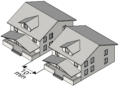 Separated by a minimum of 10 feet and greater than 5 feet from the property line or;