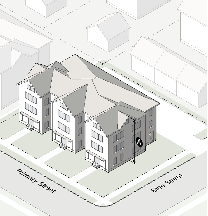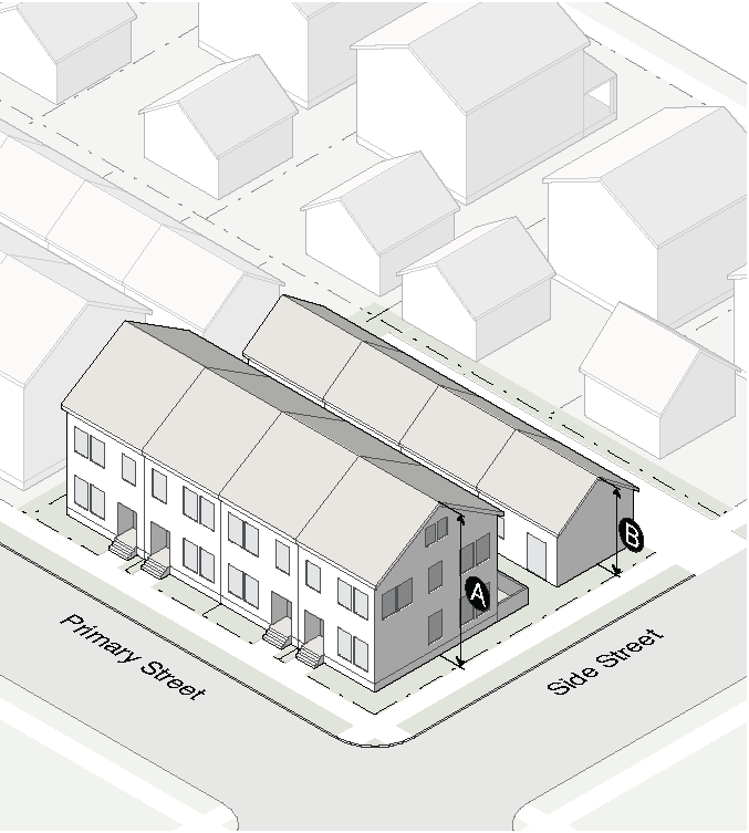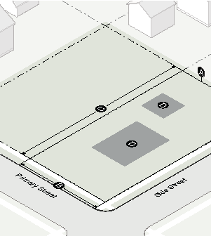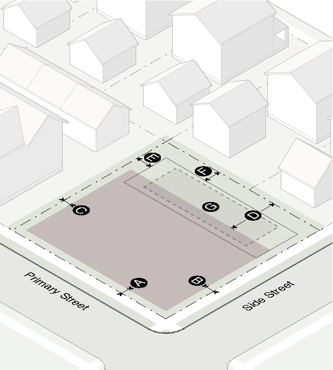 No on-site parking is allowed between the principal building and the street.