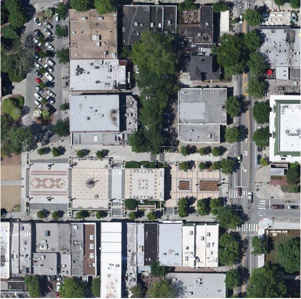 Required yards, planted areas, fountains, community gardens, rooftop gardens, parks, plazas, hardscape elements related to sidewalks and plazas, amenity space, and similar features.