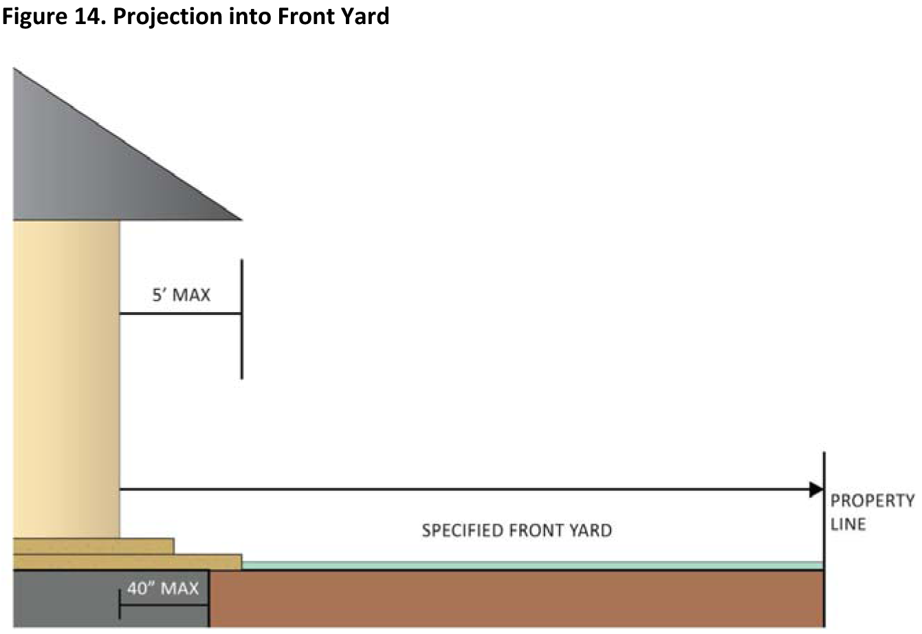Subsurface structures may not project into the front yard greater than forty (40) inches (Figure 14. Projection into Front Yard).