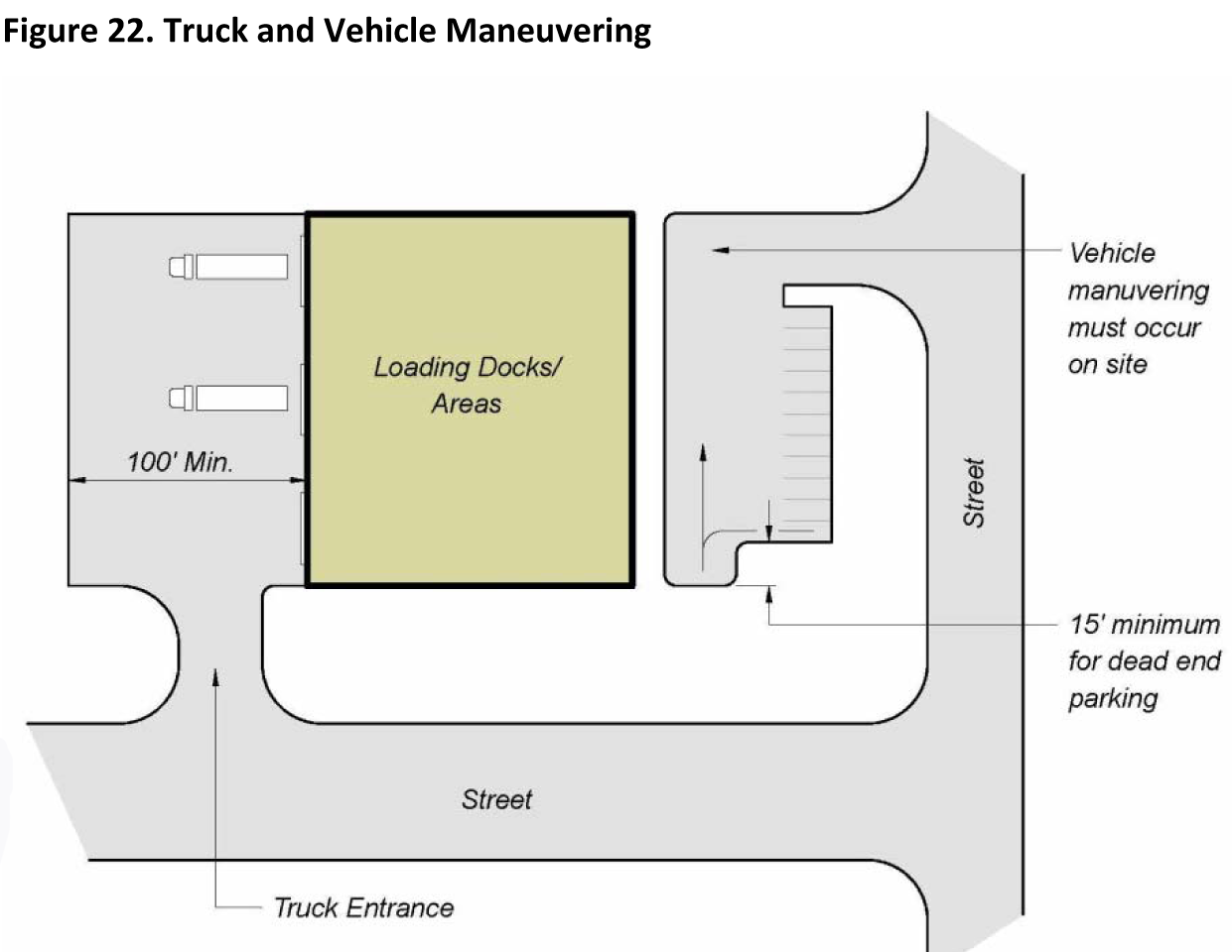 All off-street parking, driveways, maneuvering, and loading areas shall be designed in accordance with Figure 21. References for Table 10 and Table 10. Minimum Requirements for Parking Space Configuration, Arrangement, Size, and Circulation, shall be paved with a concrete or asphalt surface, and shall be curbed in accordance with the City's parking lot paving requirements.