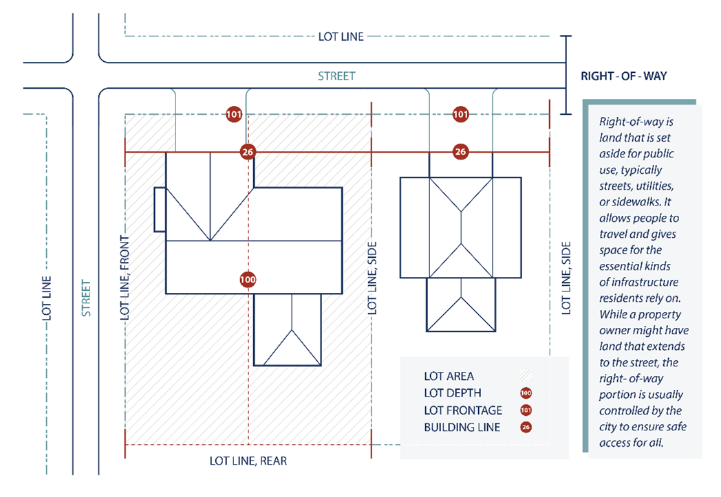 Regulate the area and dimension of lots, yards, and other open spaces.