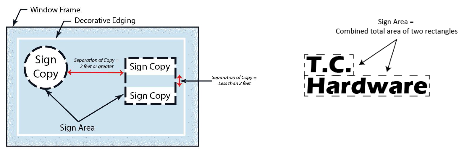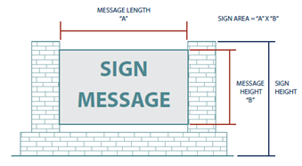 Drawings and/or sketches indicating the dimensions in square feet, location and sign area for all the permanent signs;