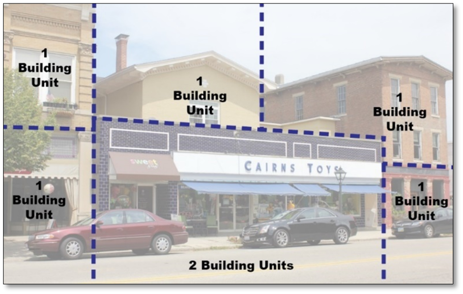 Large buildings including, but not limited to, multi-family and multi-tenant buildings, shall be designed to minimize the scale. This shall be accomplished with any combination of the below: