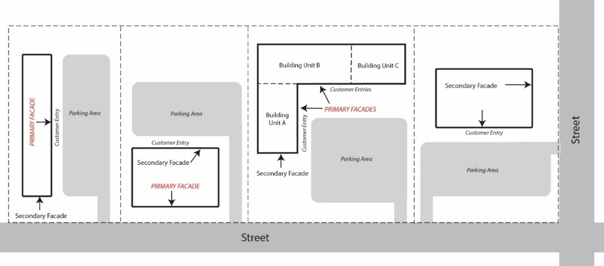 Drawings and/or sketches indicating the exterior surface details of all buildings on the site on which wall signs, awning signs, canopy signs, projecting signs, window signs or other building signs are proposed;