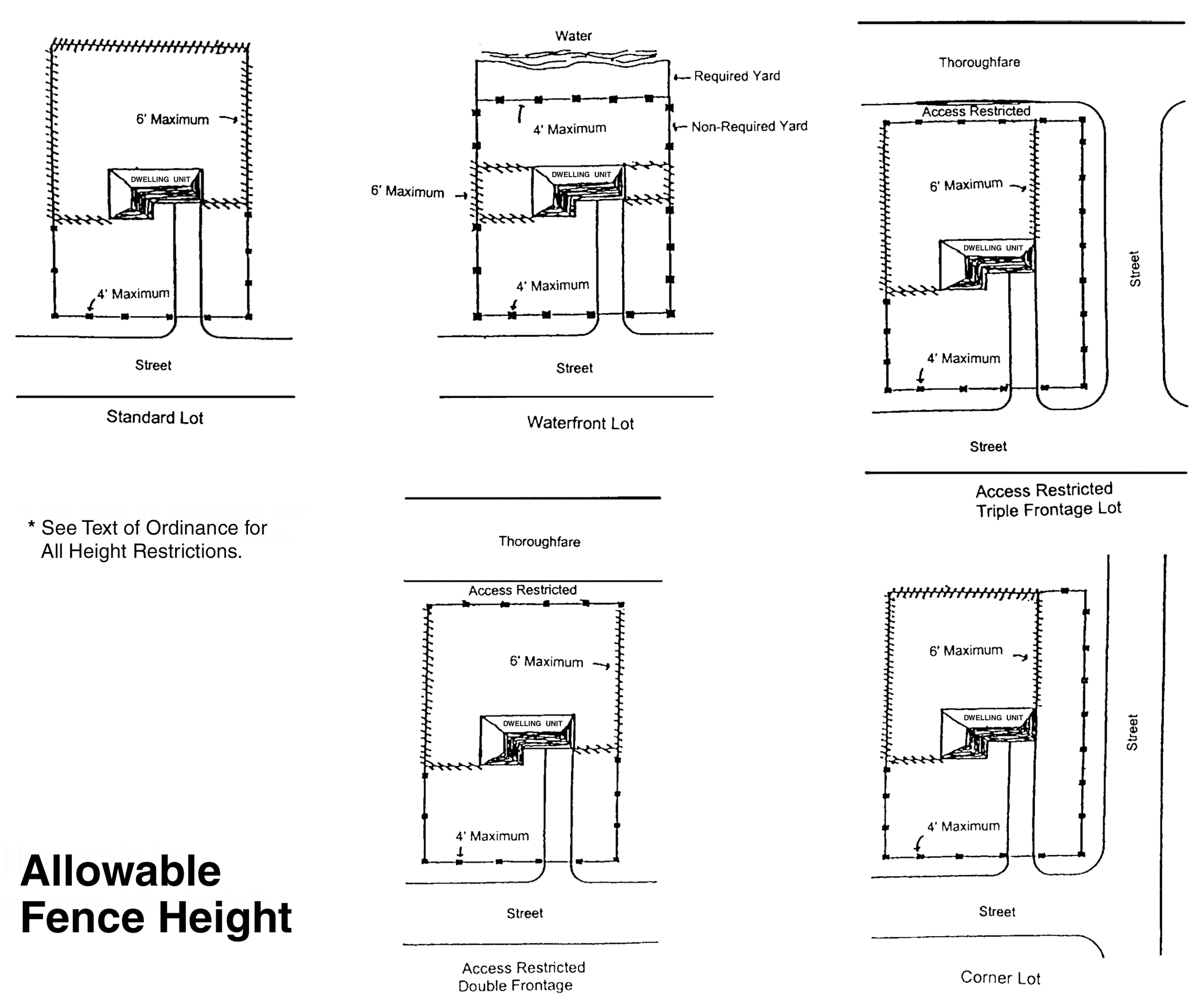 6.2.4 Fences, walls and screens. To protect the use and enjoyment of residential property by providing for the passage of air and light; to protect public welfare and safety by providing for the safe movement of motor vehicles and pedestrians, by ensuring that property is not adversely impacted by any fence or hedge and by ensuring that fences and hedges do not detract from the aesthetic enjoyment of the community and to facilitate police and fire fighting services, no person shall erect, construct, modify, maintain, plant or grow any fence or hedge in the R-1A, R-1B, R-1C, R-1D and R-1E Districts (or other area in the township being used as residential property) in violation of this chapter. Fence requirements for the remaining zoning districts are specified within the text of each district description.