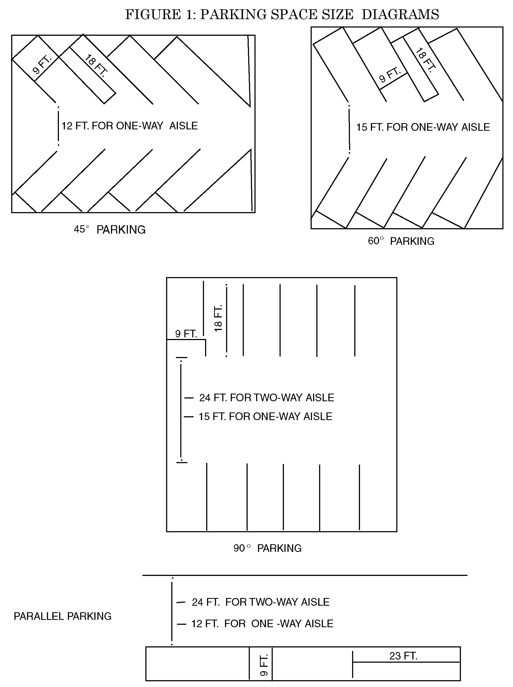 See Table 1 and Figure 1 for more details on parking space size requirements.