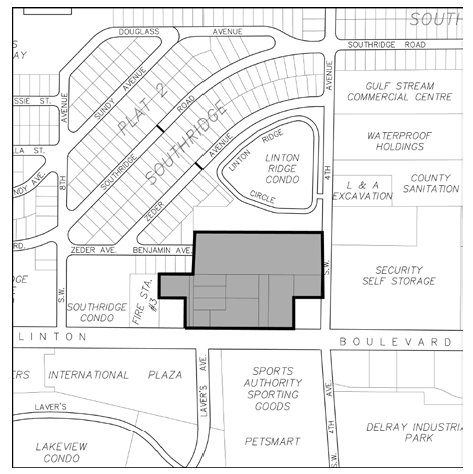 Defined. The Lintco Development Overlay District is hereby established to include the area on the north side of Linton Boulevard, west of SW 4th Avenue as shown on the Map in Section 4.5.19 (B), below: