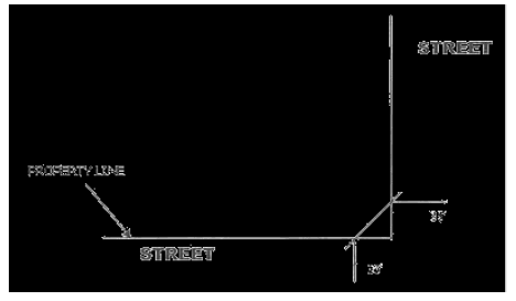 SIGHT DISTANCE TRIANGLE: A triangular area at the intersection of two (2) streets bounded by property lines connecting them at points thirty five feet (35') from the intersection of the two (2) adjoining property lines, which is to be kept reasonably clear to allow for the unimpeded view of drivers or pedestrians approaching the intersection.