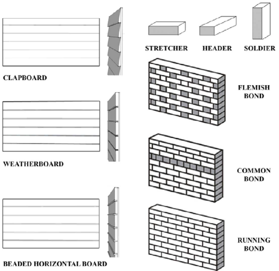 Generally accepted exterior facing materials shall relate to the mass of the structure and be prioritized in their use based on square footage as follow: