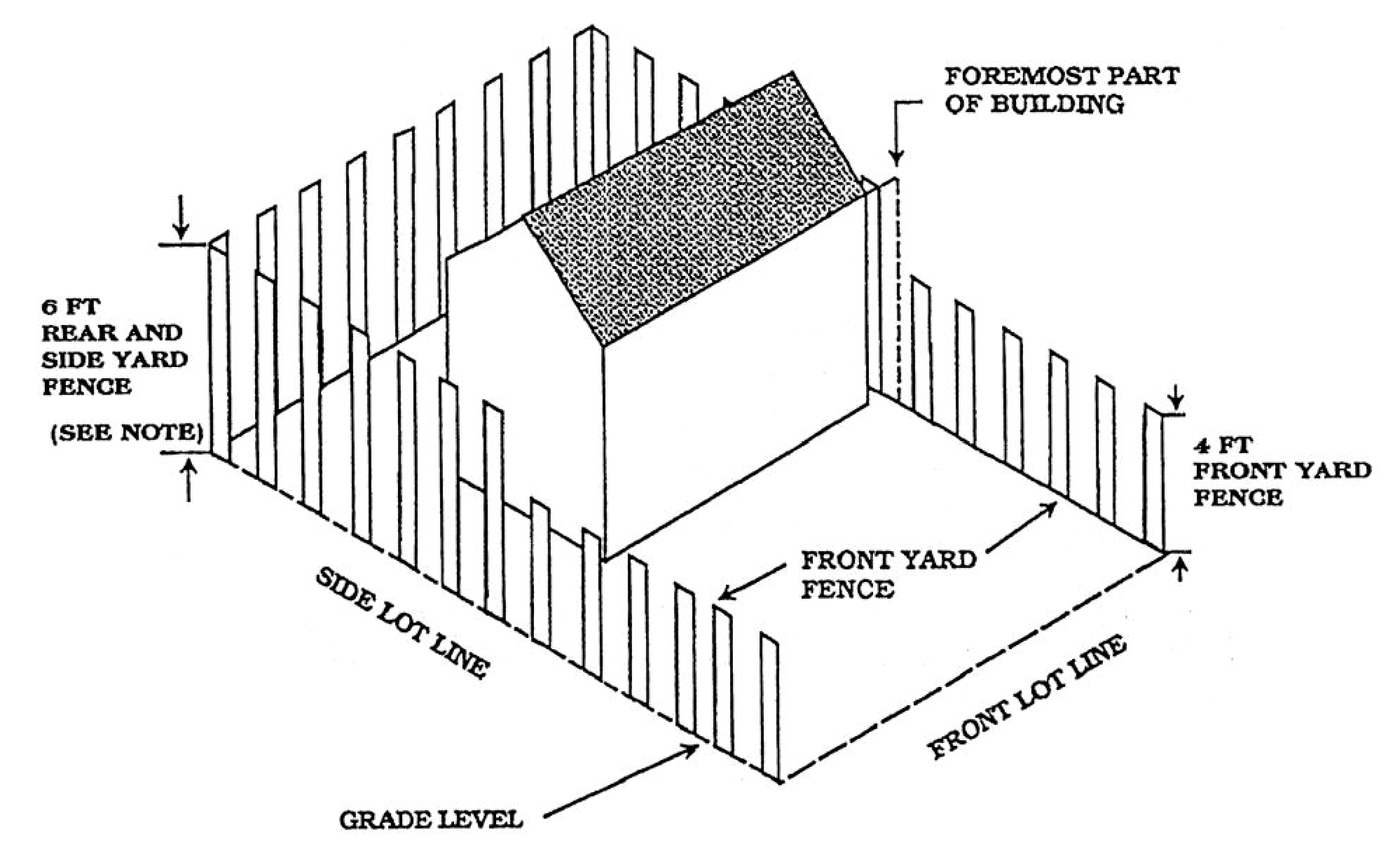 Height and setback requirements. The measurement of fence and hedge height shall be taken from the existing grade of any adjoining property at the lot line or proposed location of the fence. Refer to section 70-30 (definitions) for graphic illustration of yard areas.