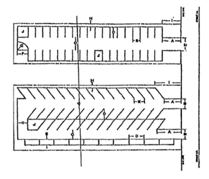 Dimensions of aisles and spaces for the following parking space angles are as follows: