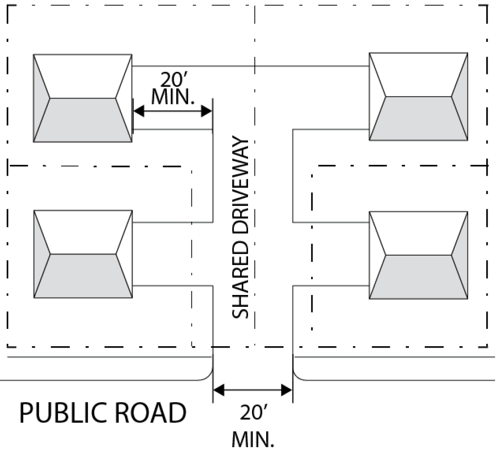Each mixed-use and nonresidential lot shall have a minimum 20 feet of frontage along an existing or proposed public street.