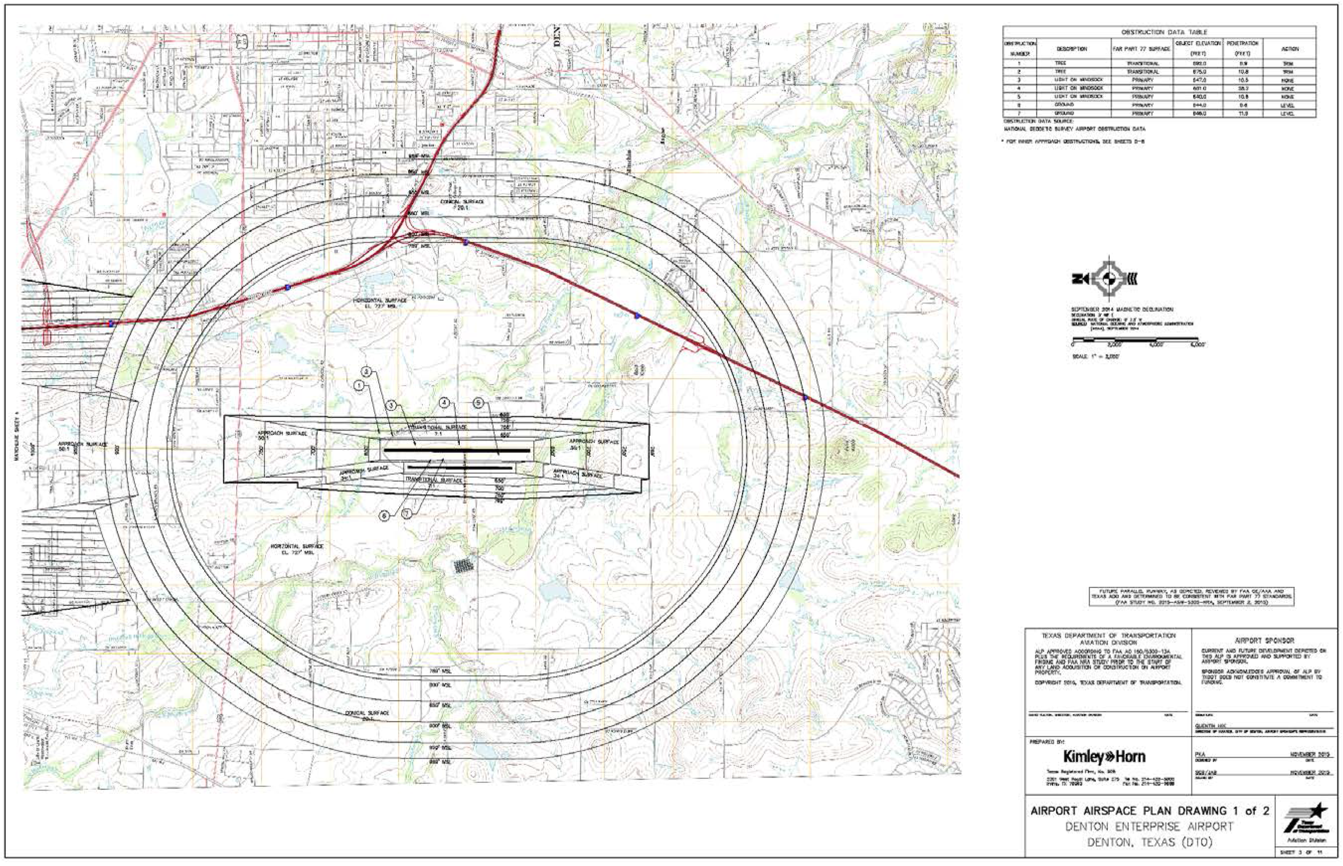 The Municipal Airport Overlay (MAO) district is intended to regulate and restrict the height of structures and objects of natural growth and the use of property in the vicinity of the Denton Enterprise Airport to prevent the creation or establishment of obstructions that are a hazard to air navigation. Application of this district will help prevent the encroachment of noise sensitive or otherwise incompatible land uses which may endanger the health, safety, and welfare of the owners, occupants, or users of the land. This district is also intended to implement state and federal rules associated with land uses in the vicinity of airports. Such state and federal rules shall apply within the MAO district.