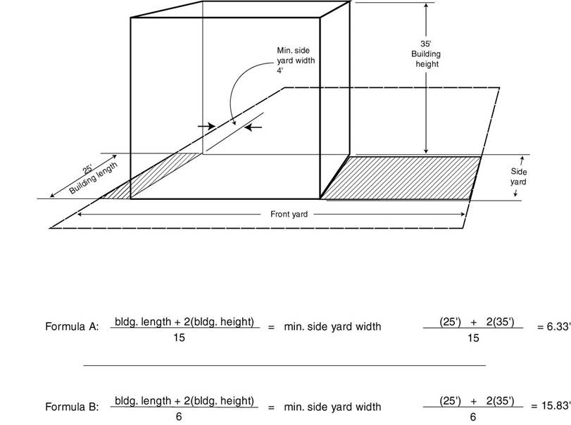 In many instances, side setback requirements are determined through the use of the following formula: