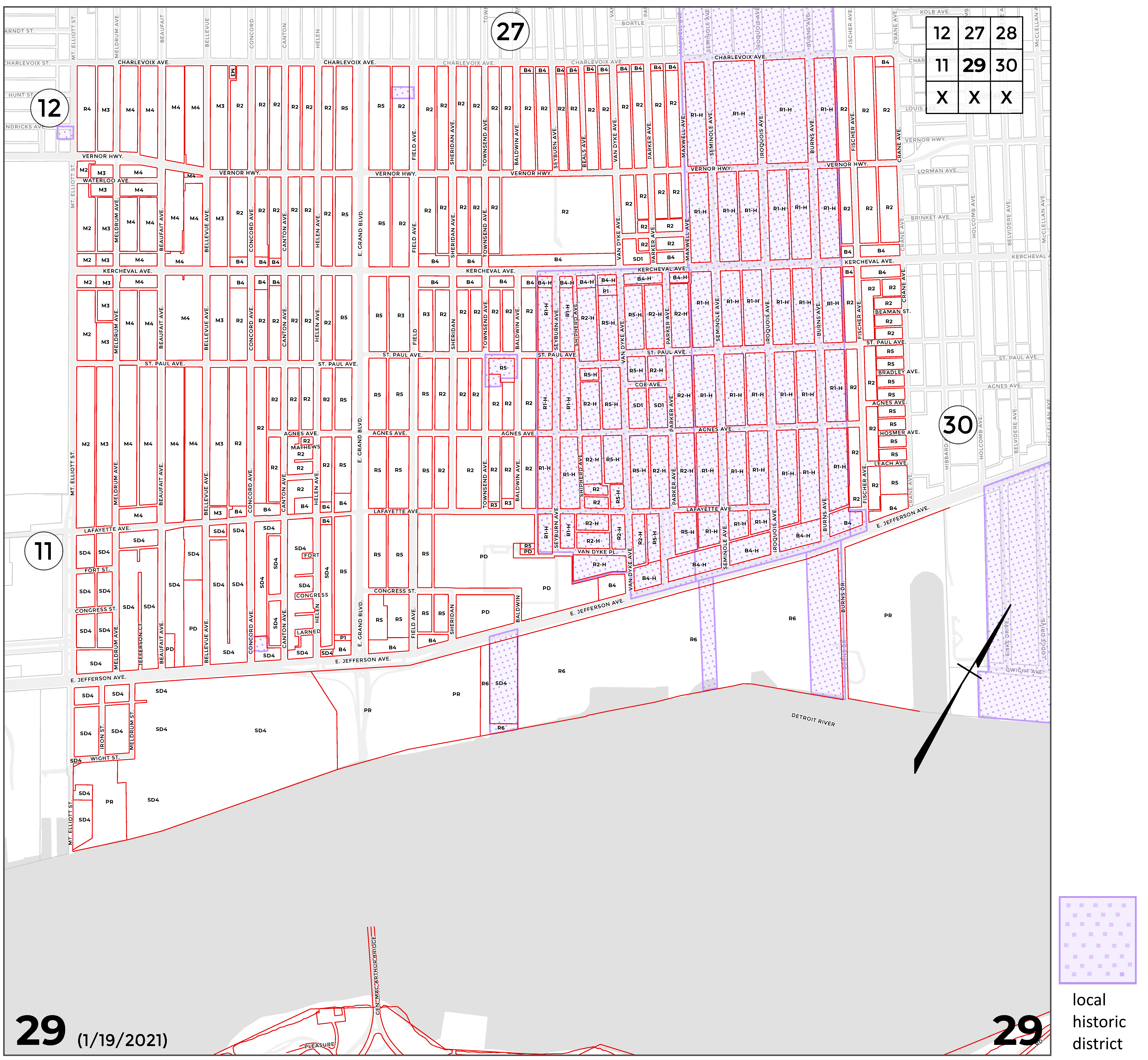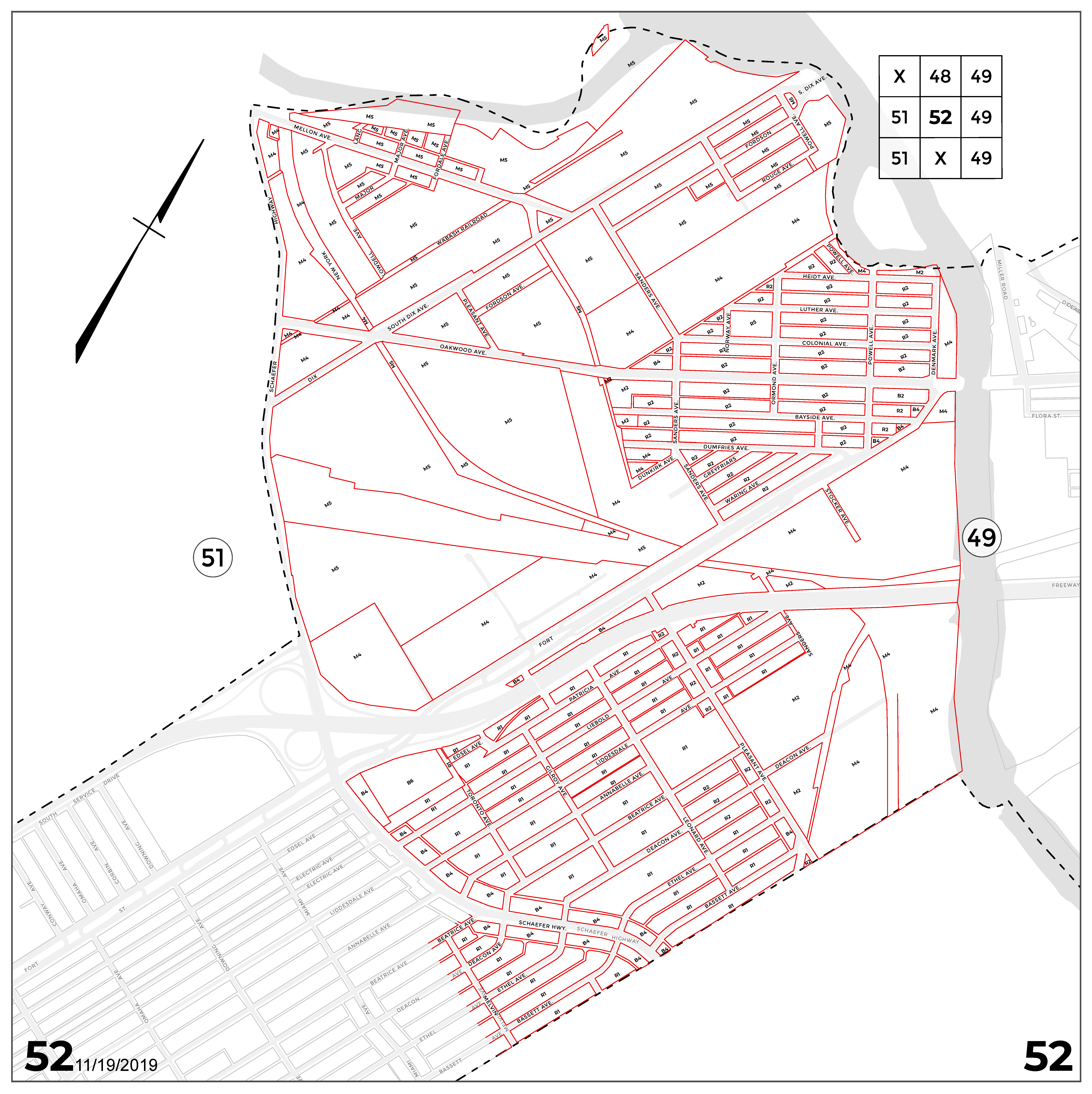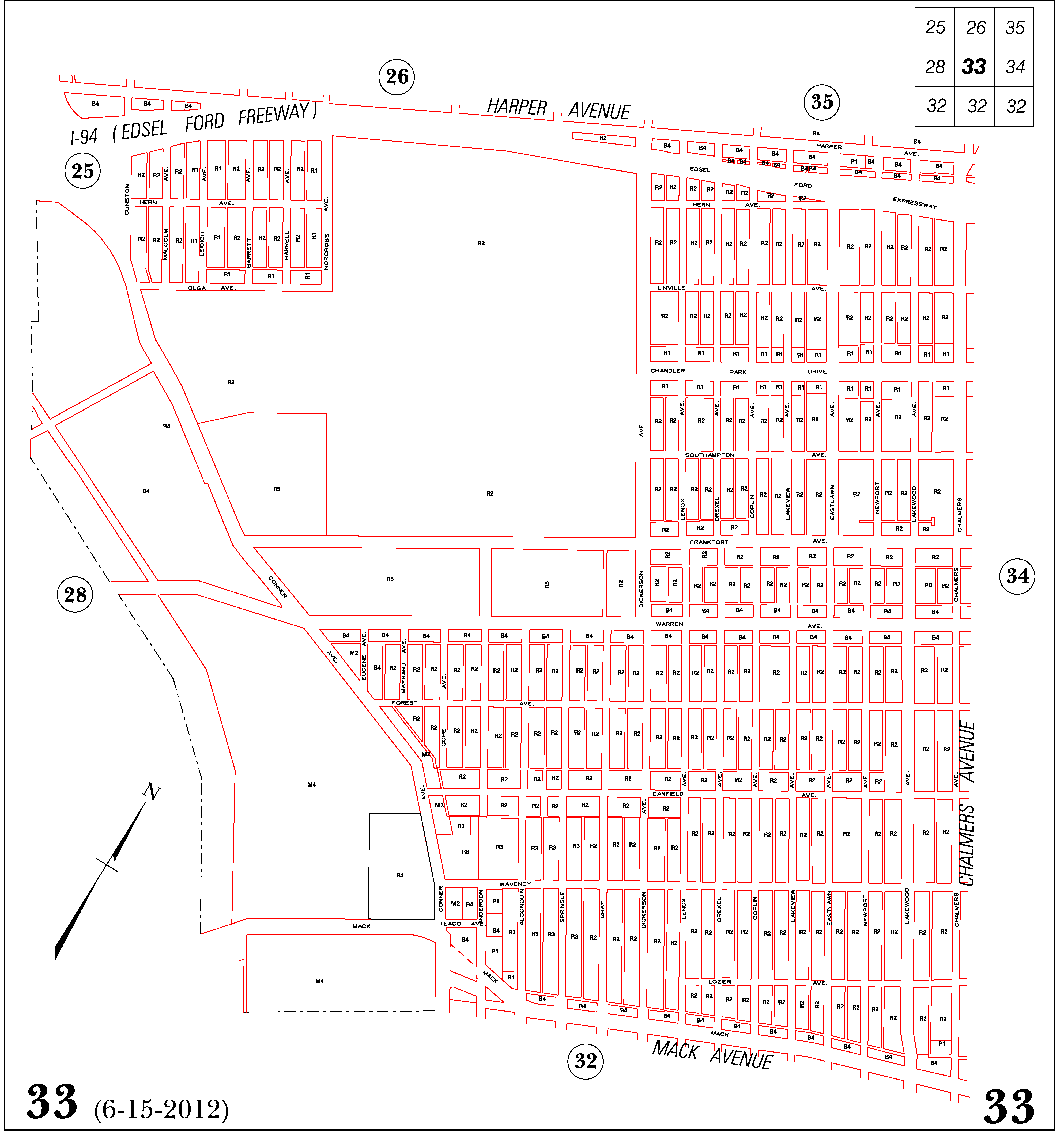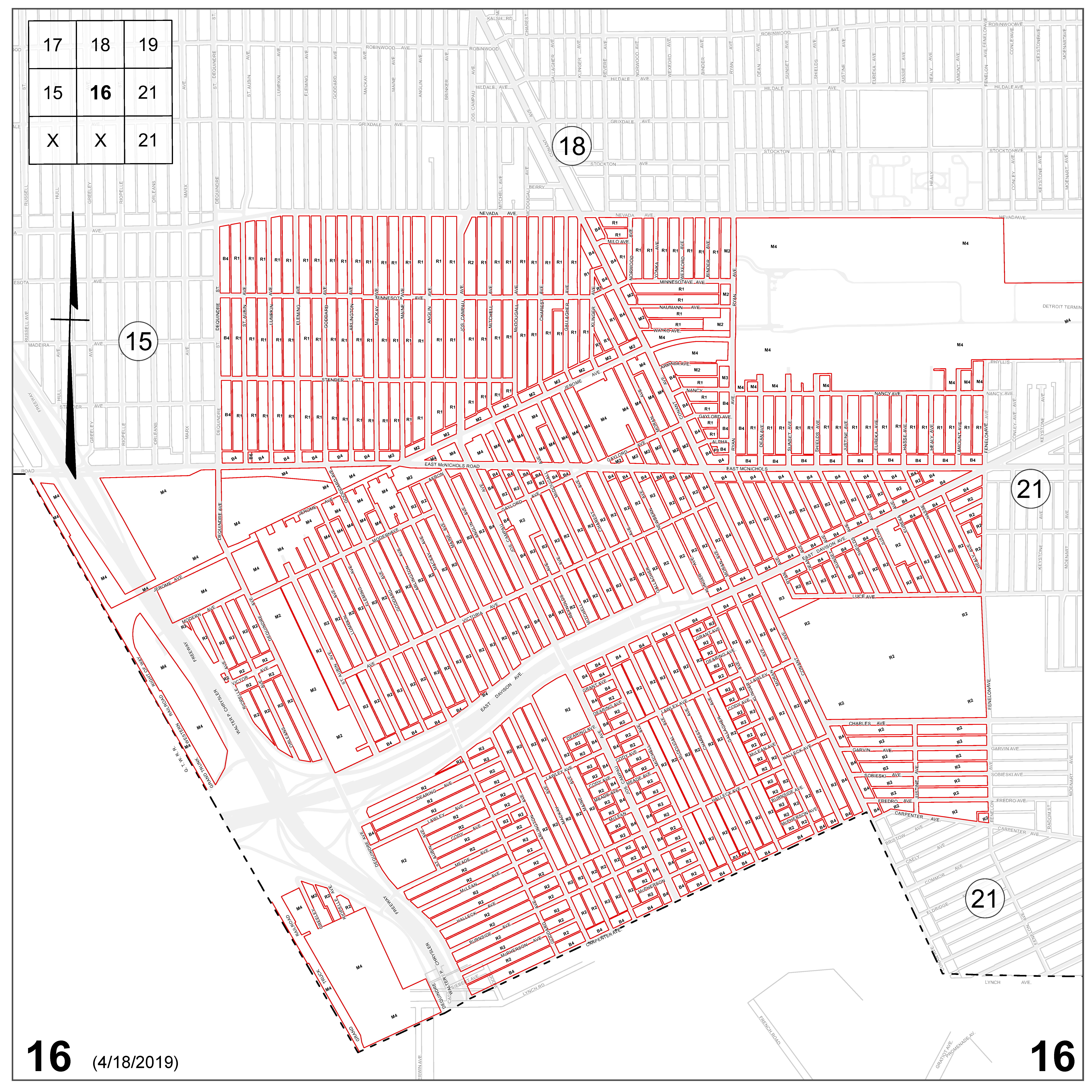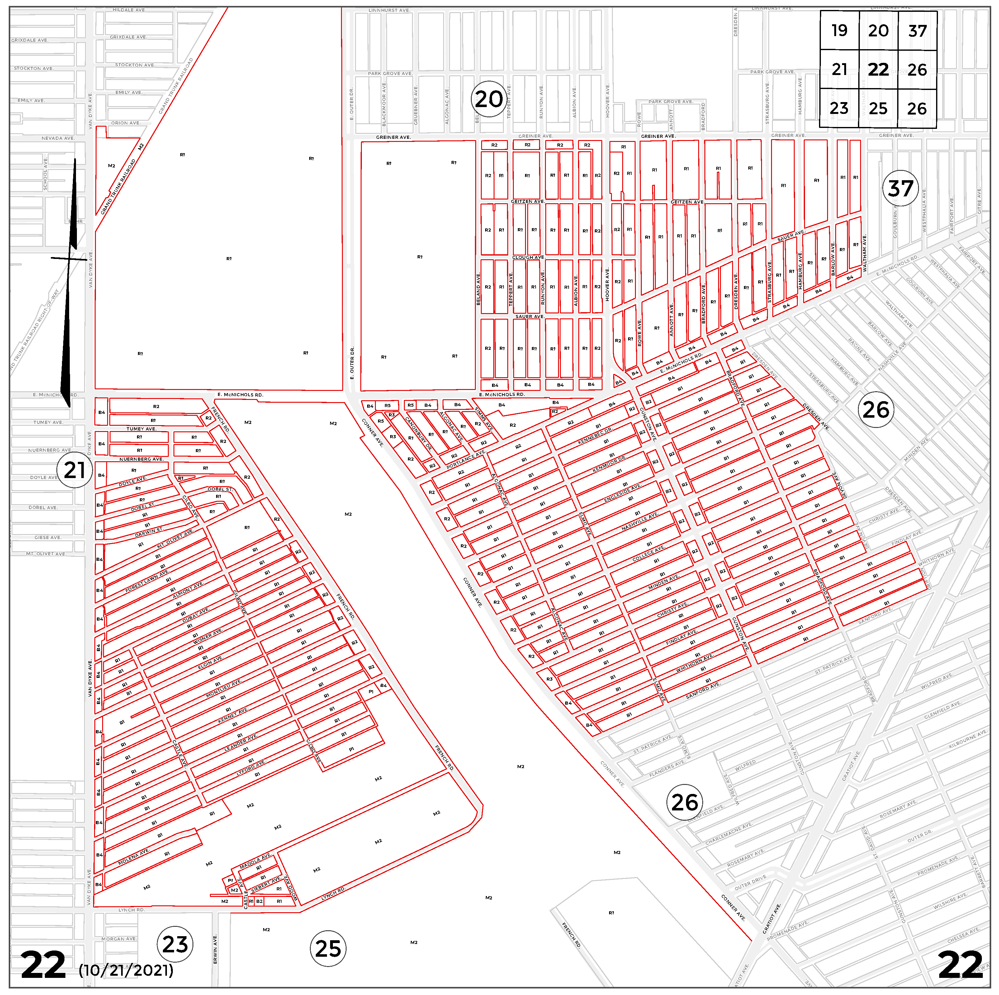 INDEX MAP FOR CITY OF DETROIT ZONING DISTRICTS