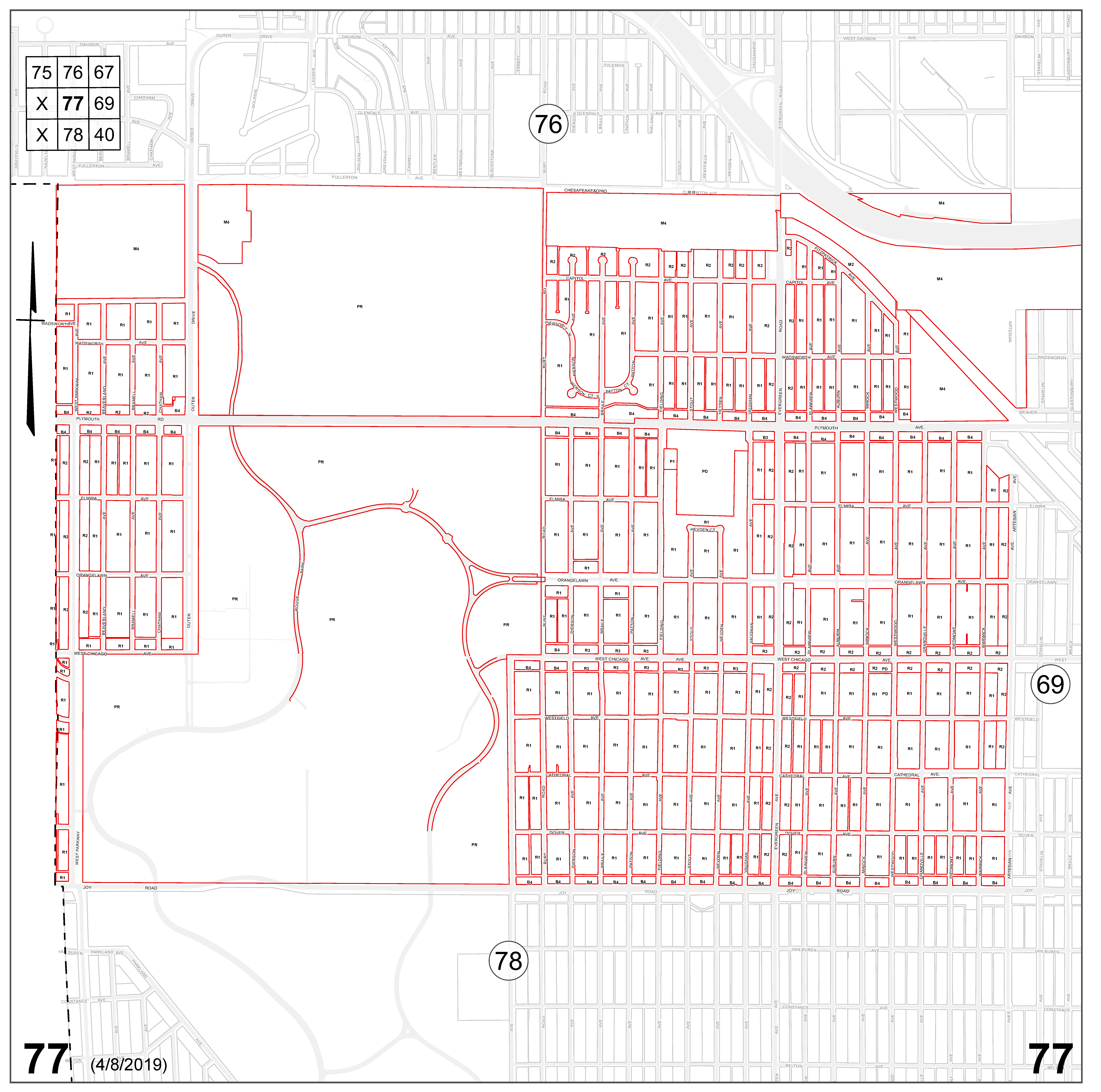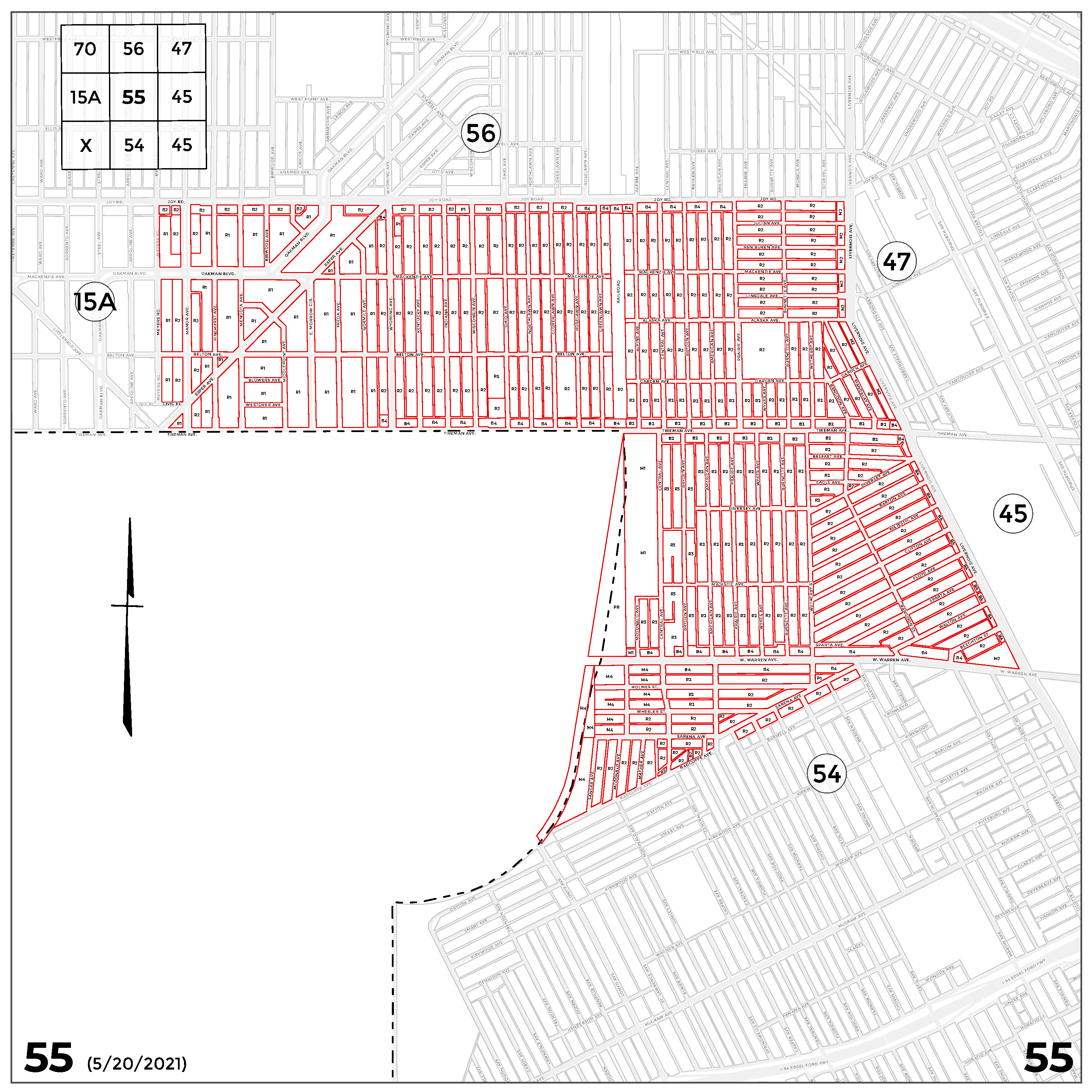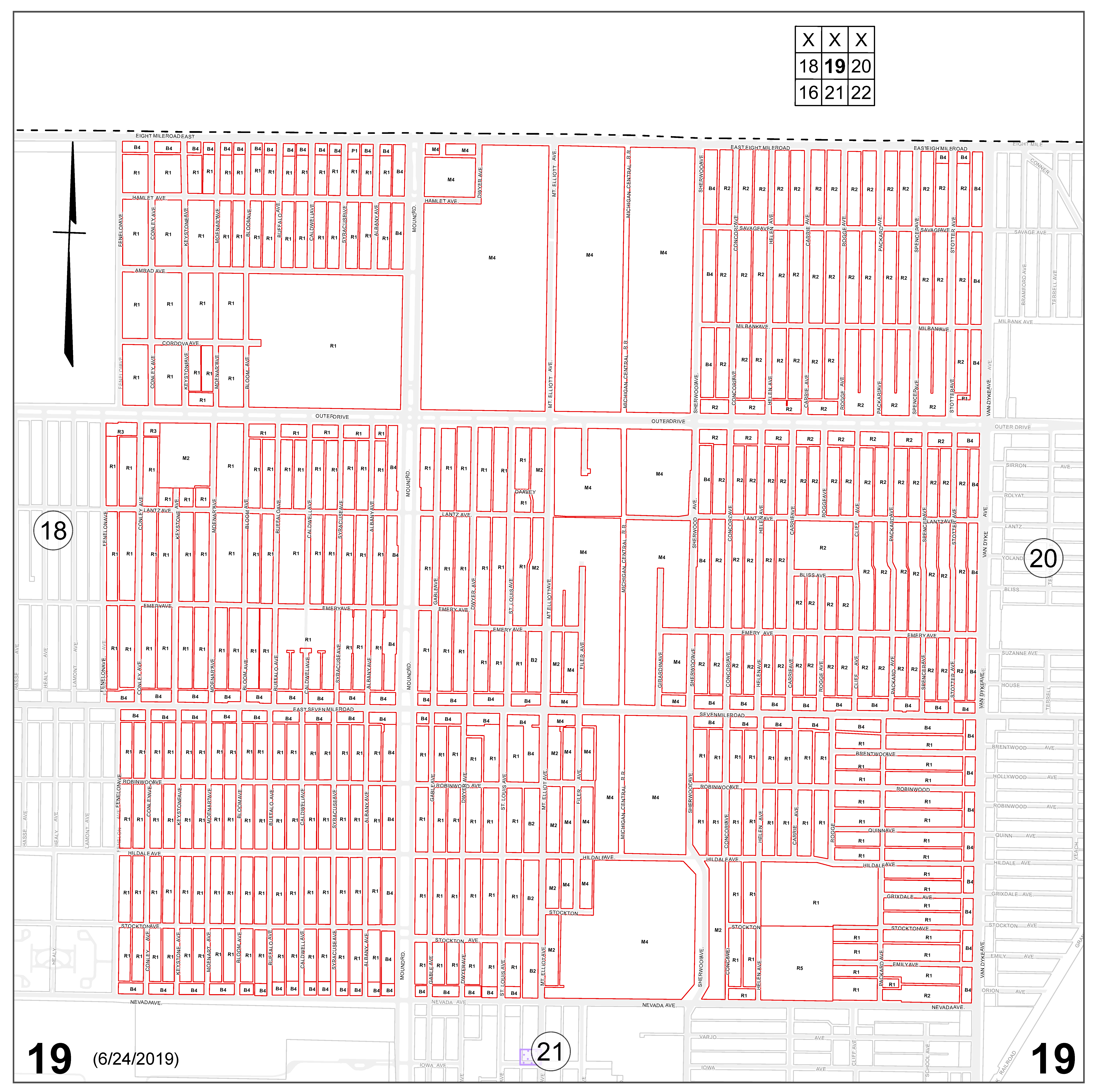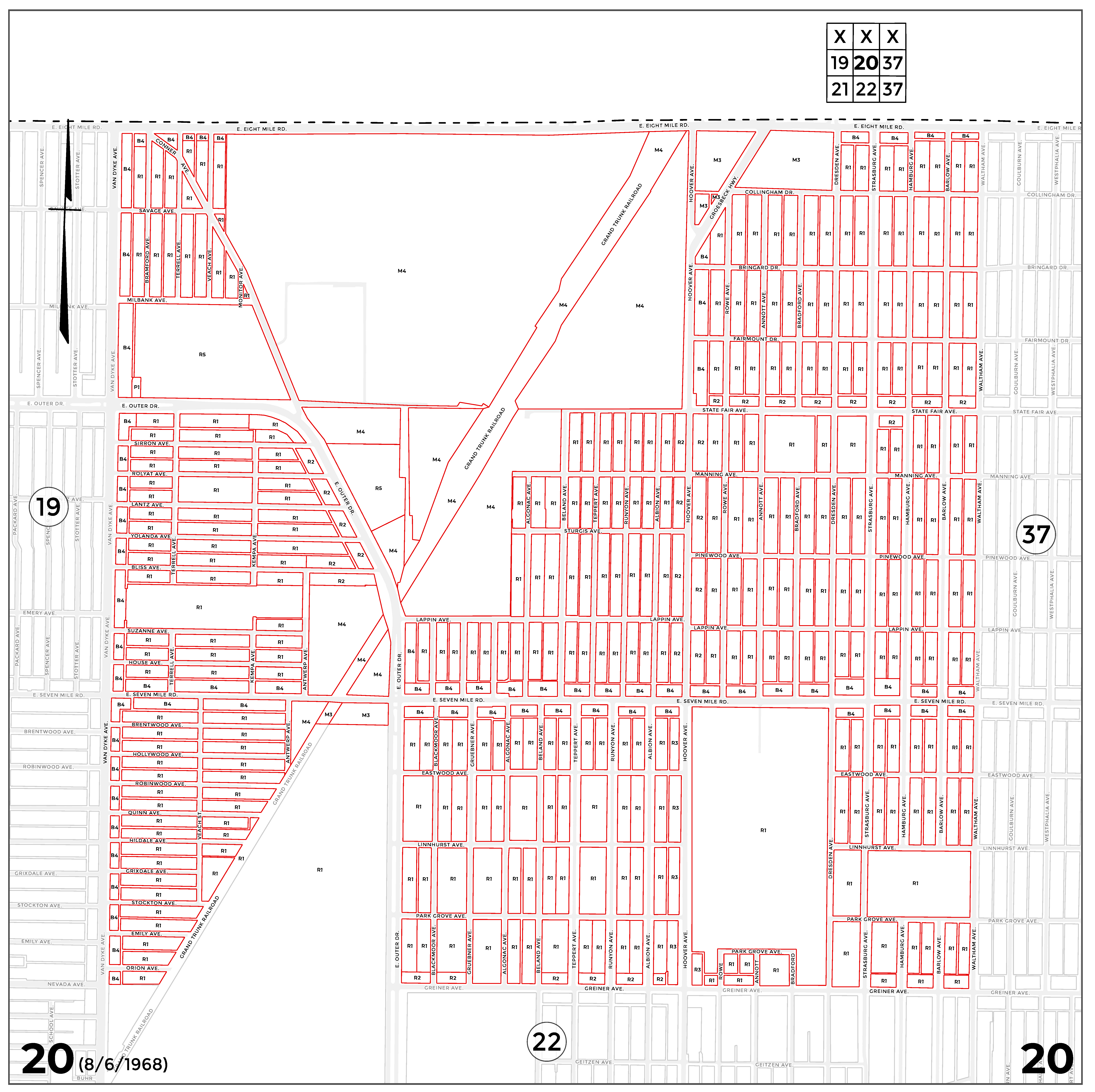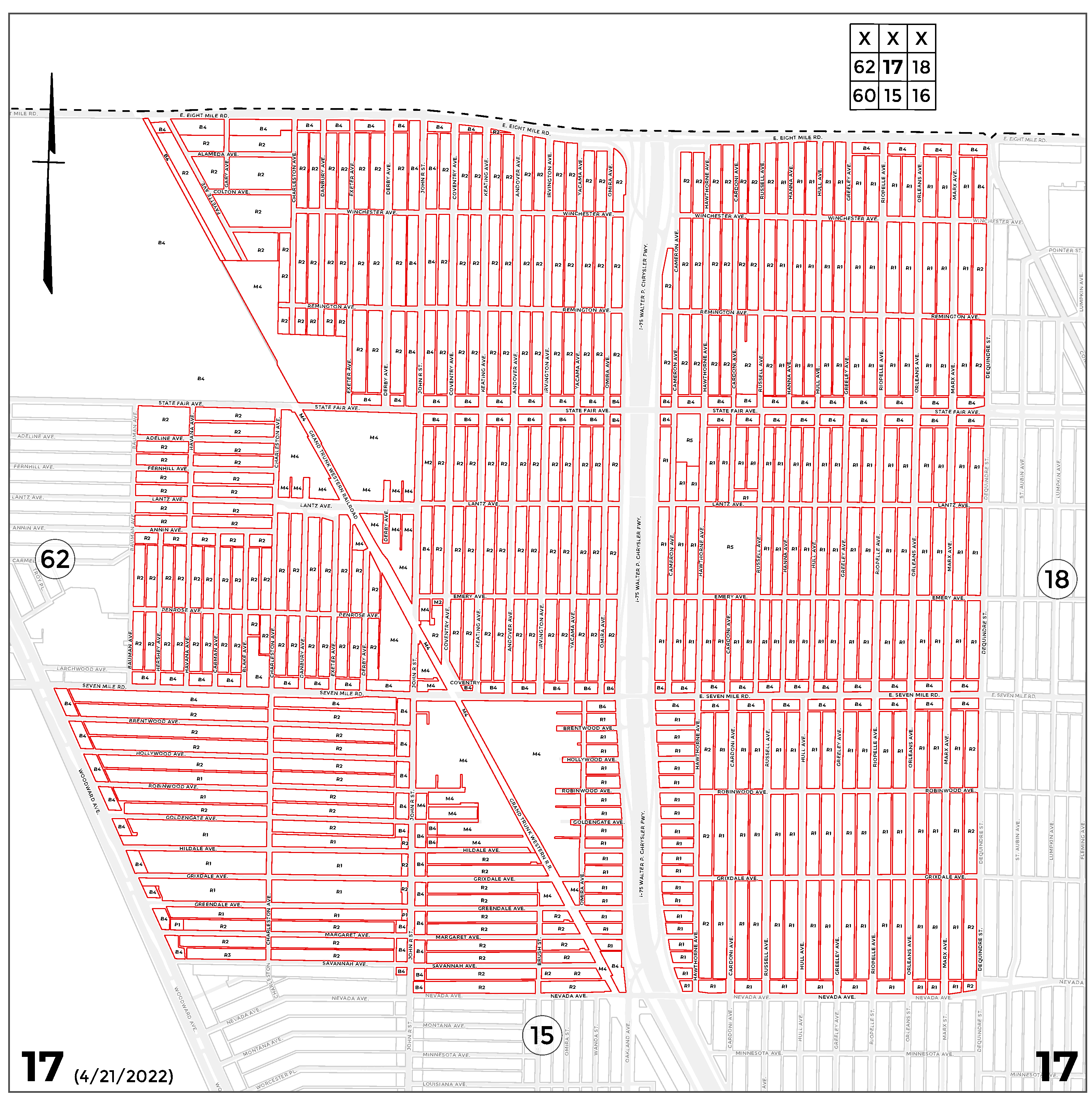 INDEX MAP FOR CITY OF DETROIT ZONING DISTRICTS