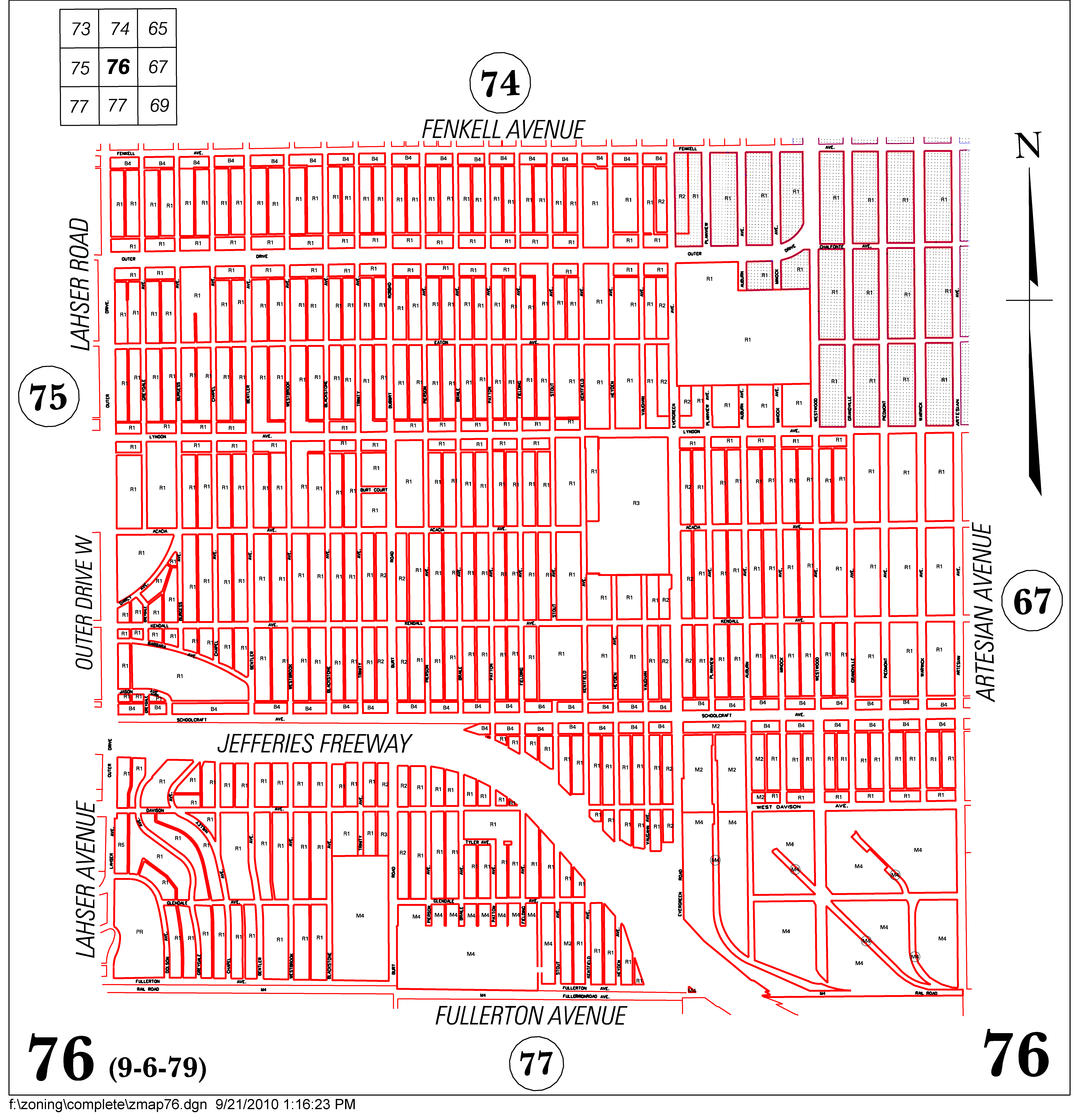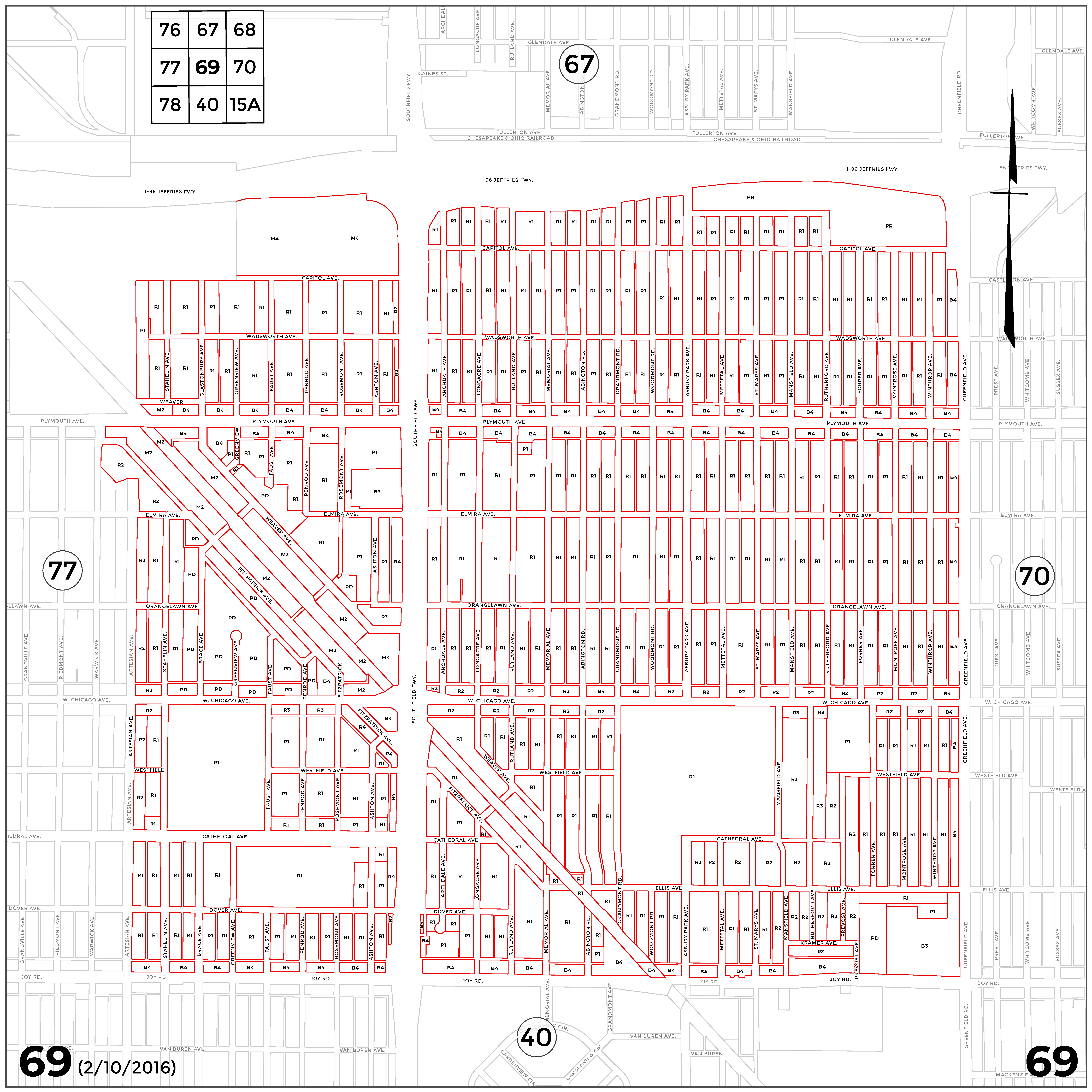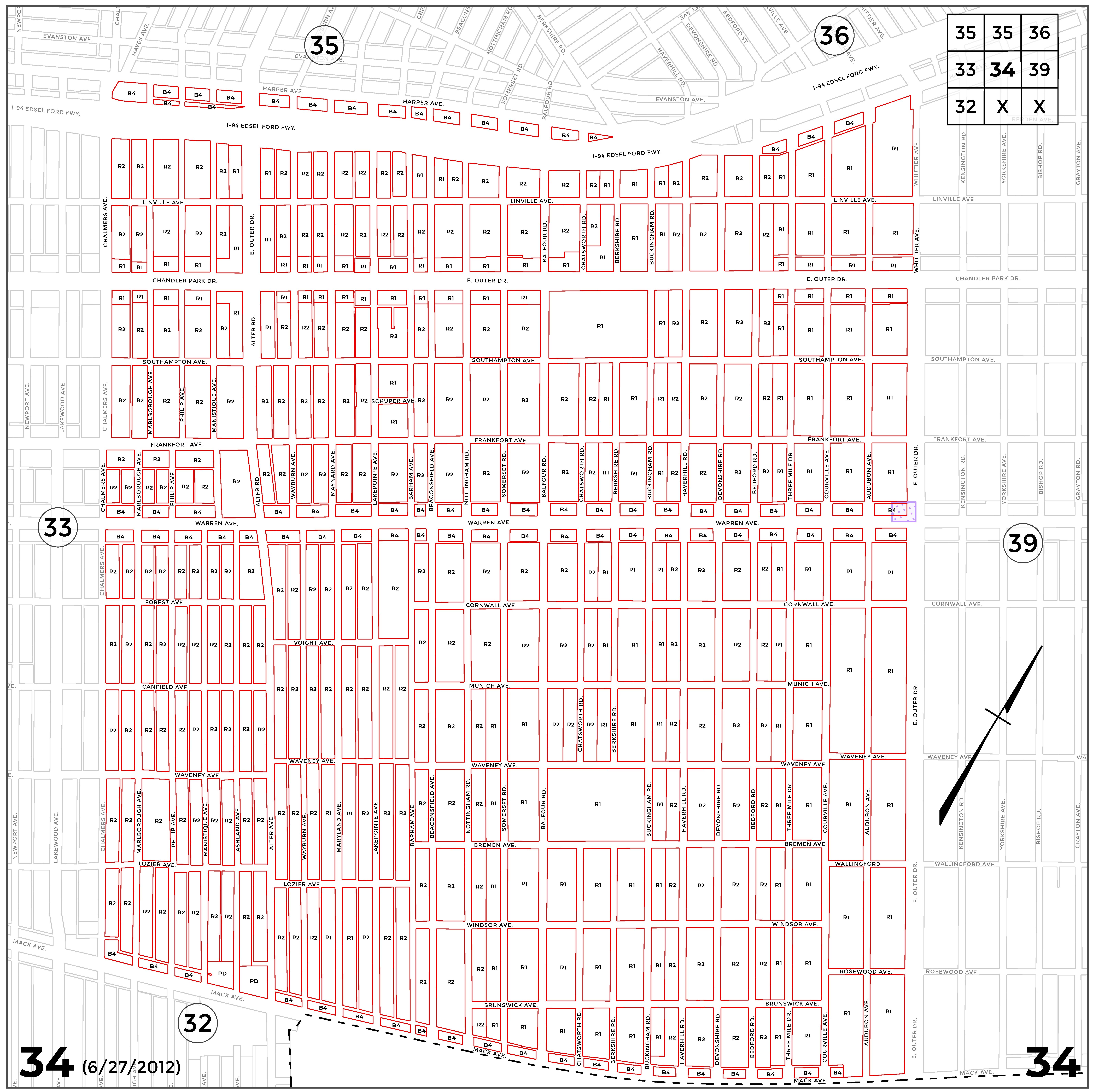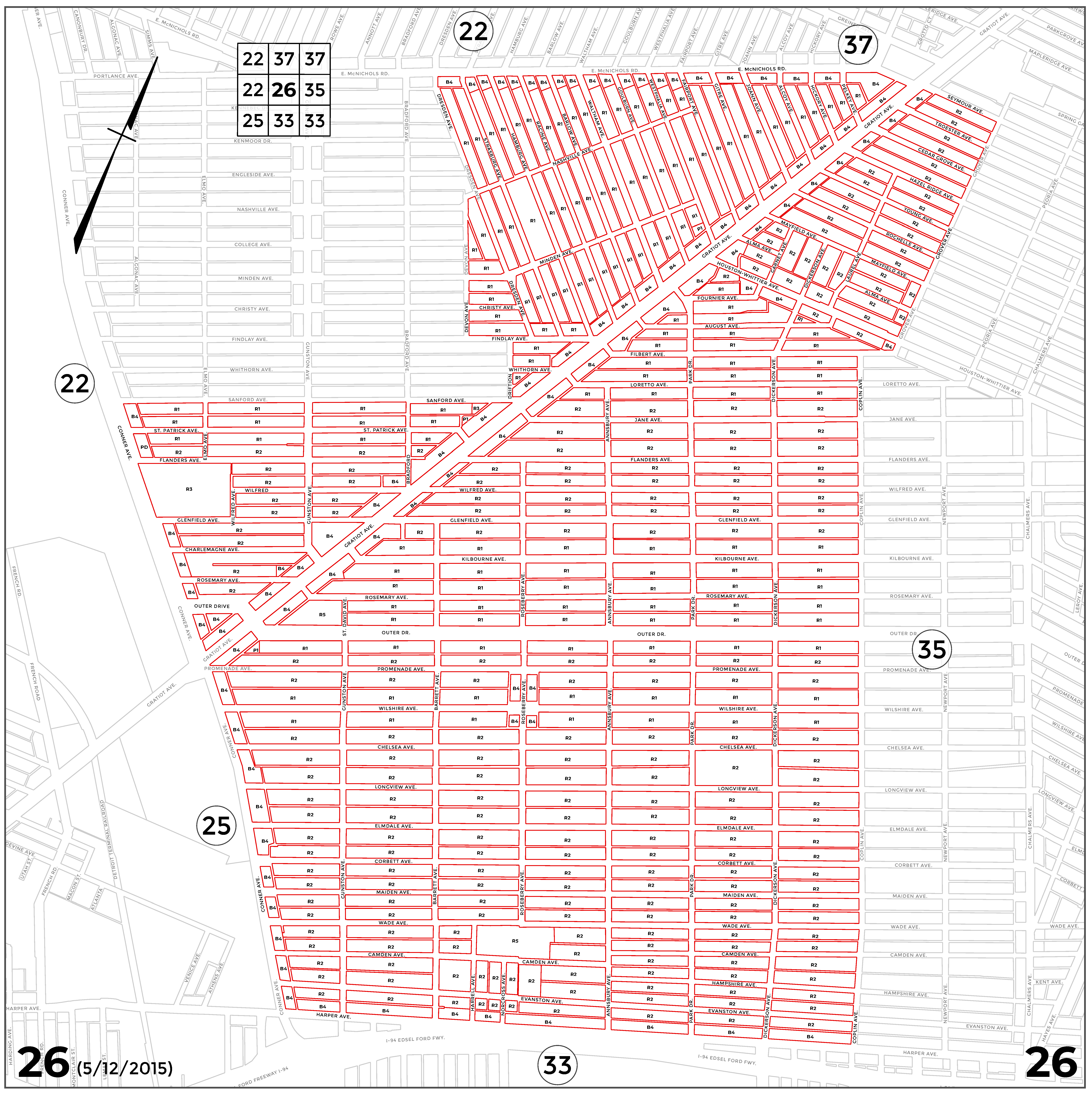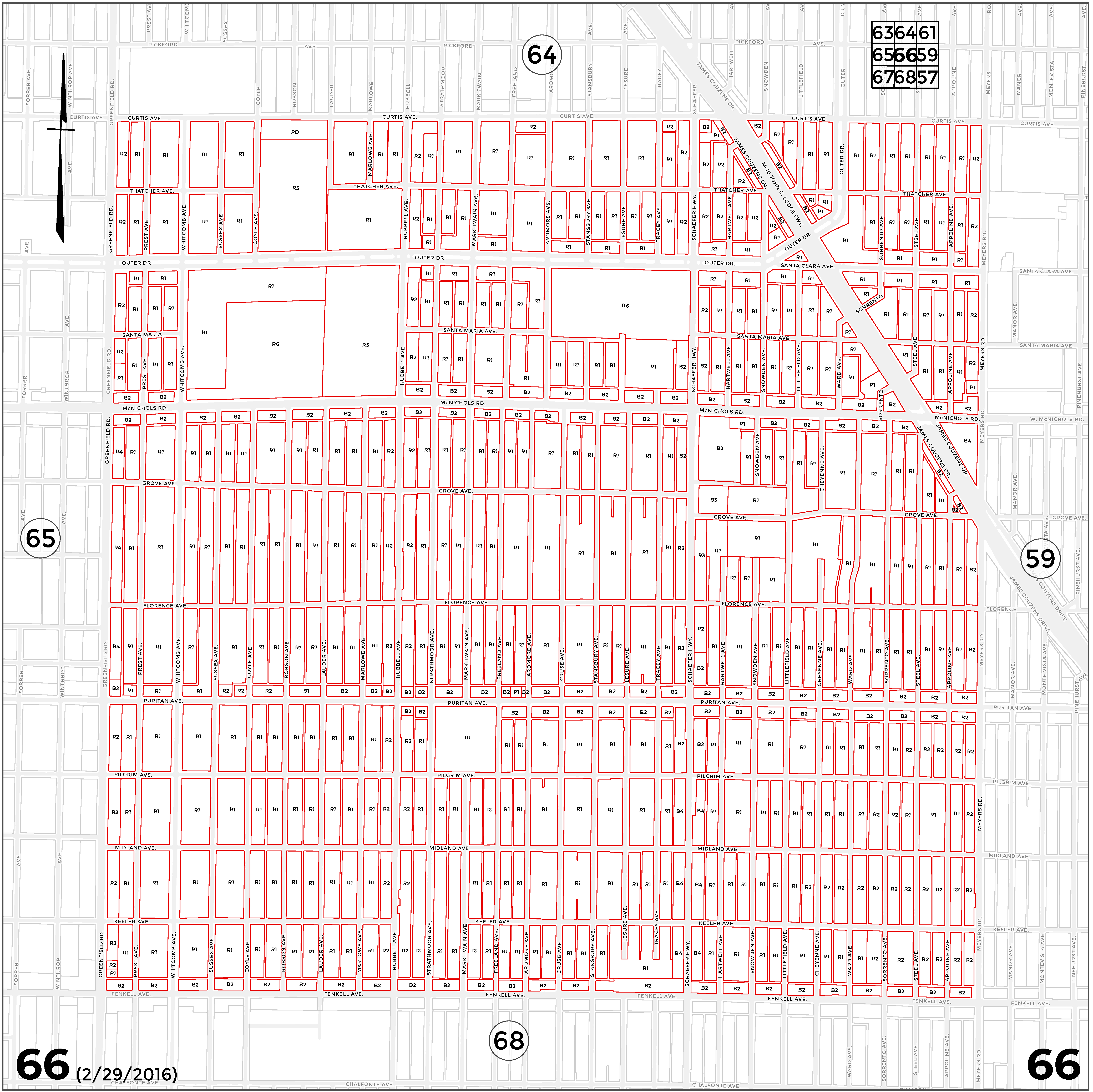INDEX MAP FOR CITY OF DETROIT ZONING DISTRICTS