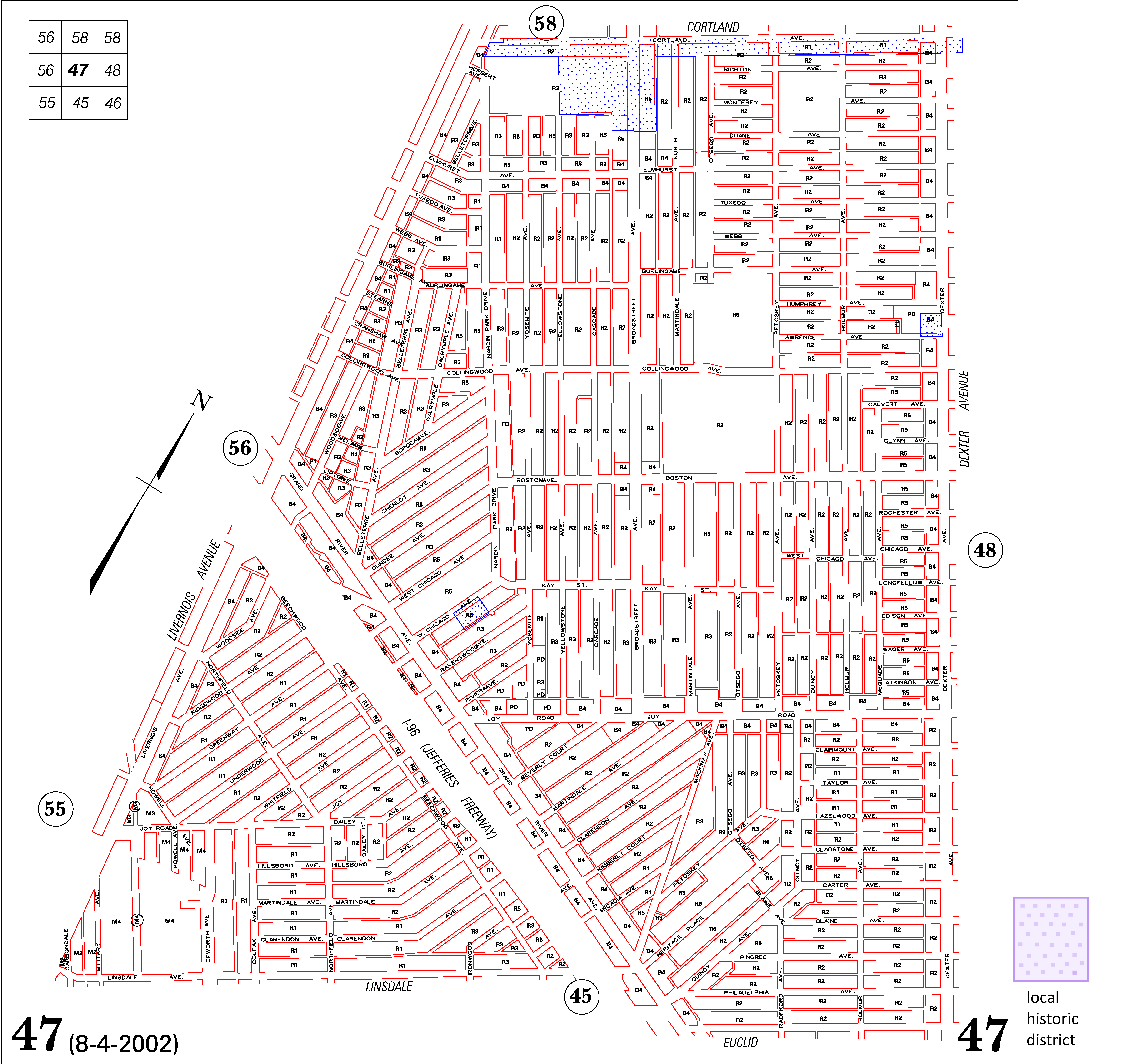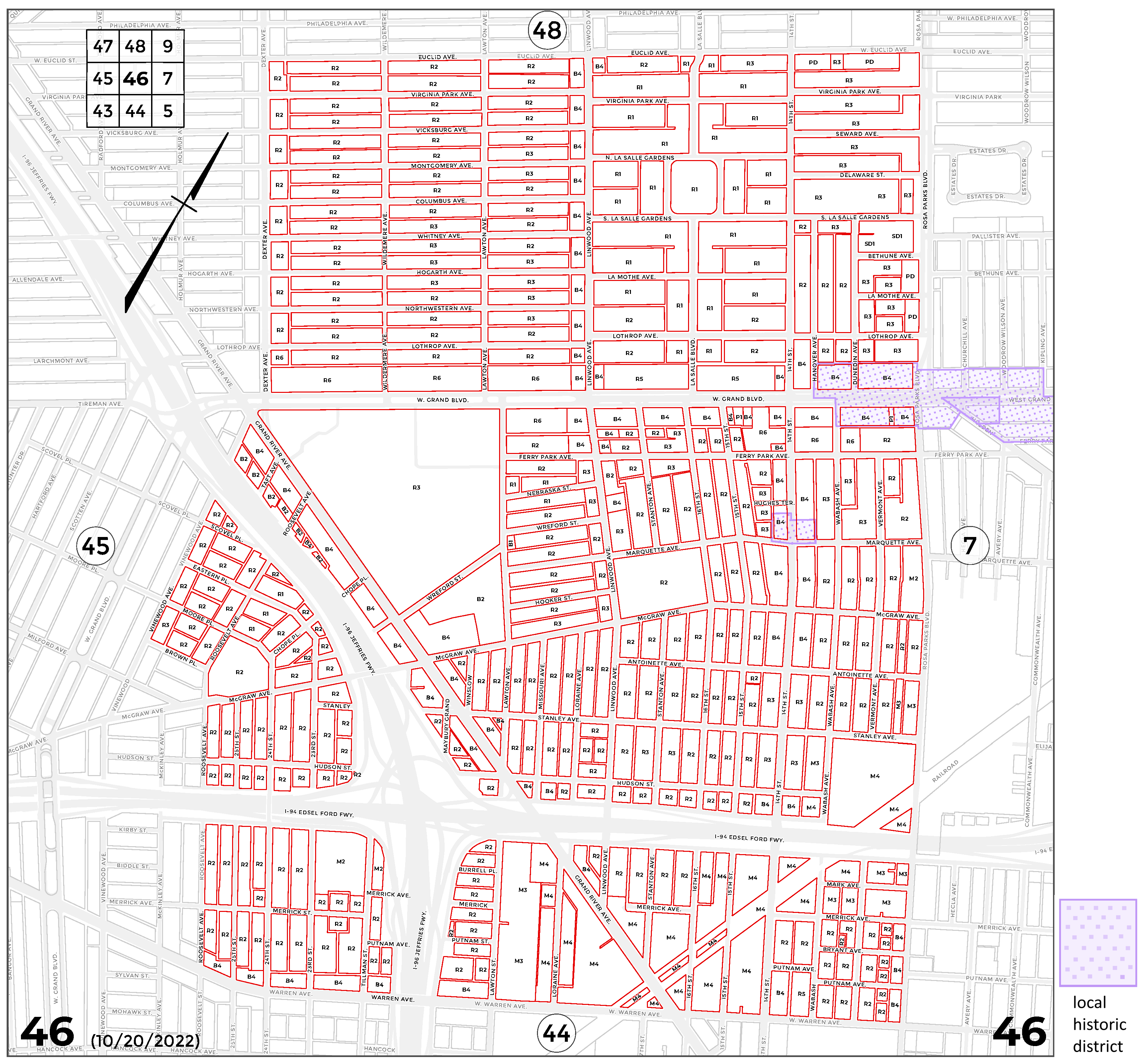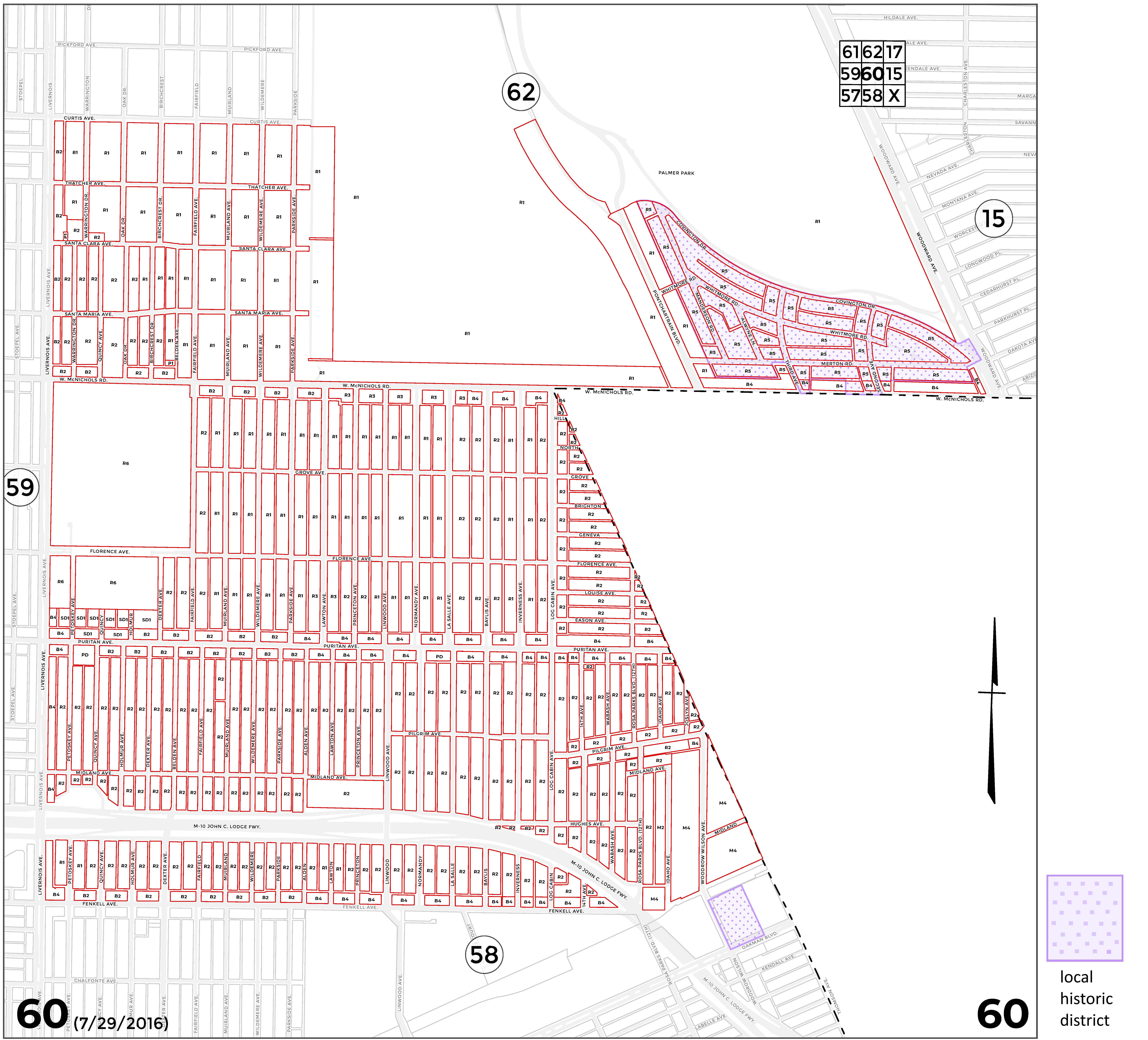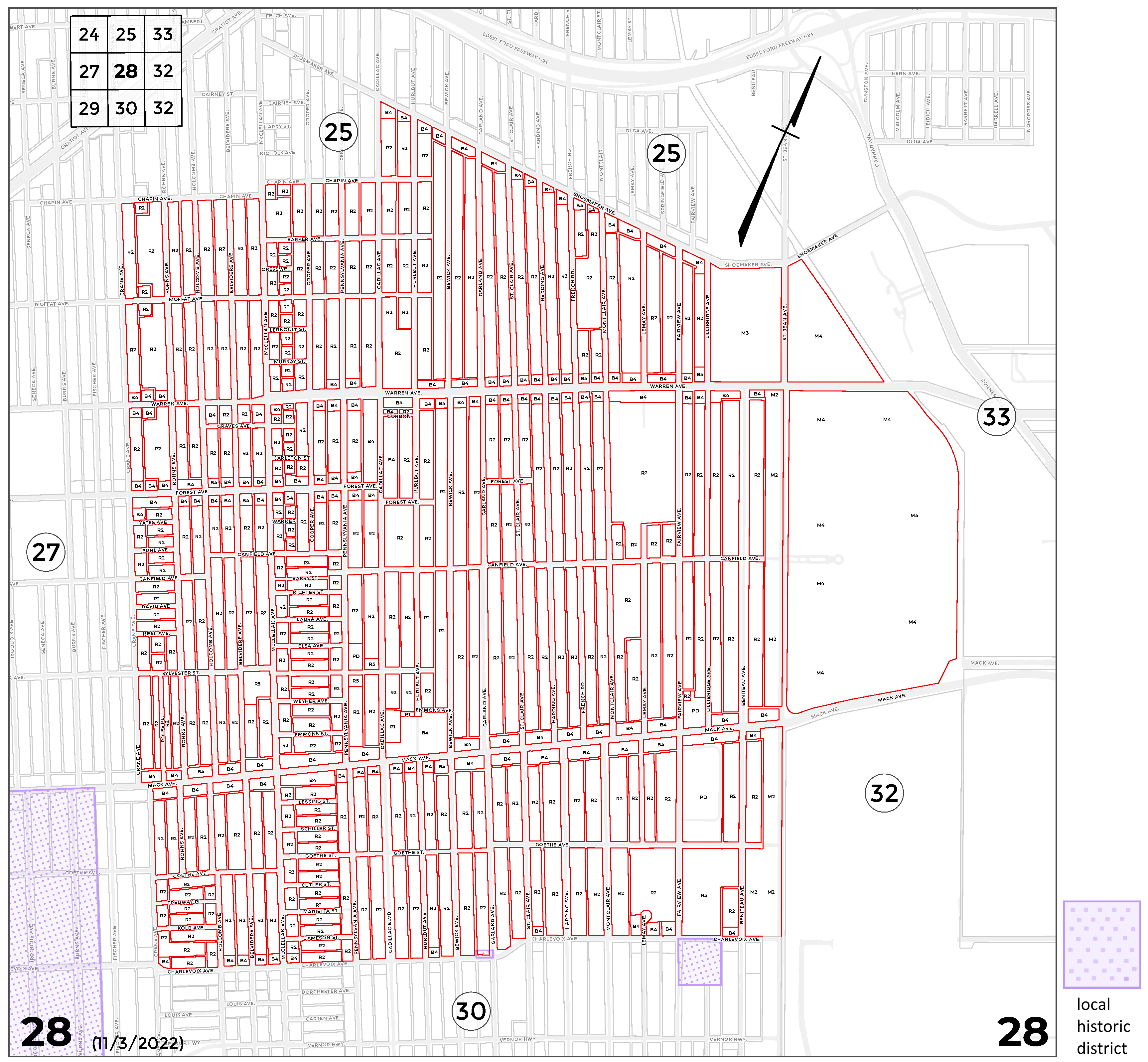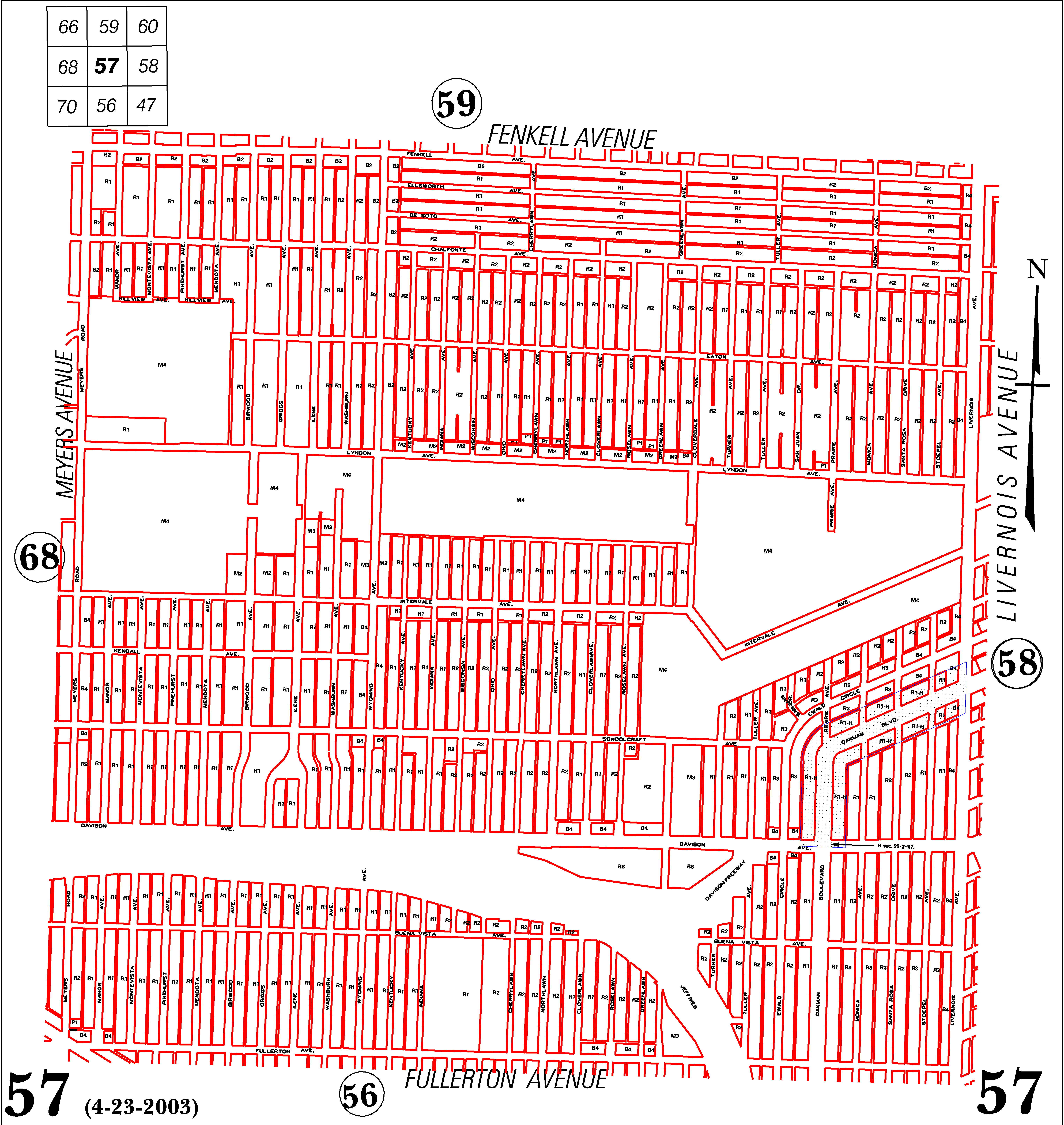 INDEX MAP FOR CITY OF DETROIT ZONING DISTRICTS