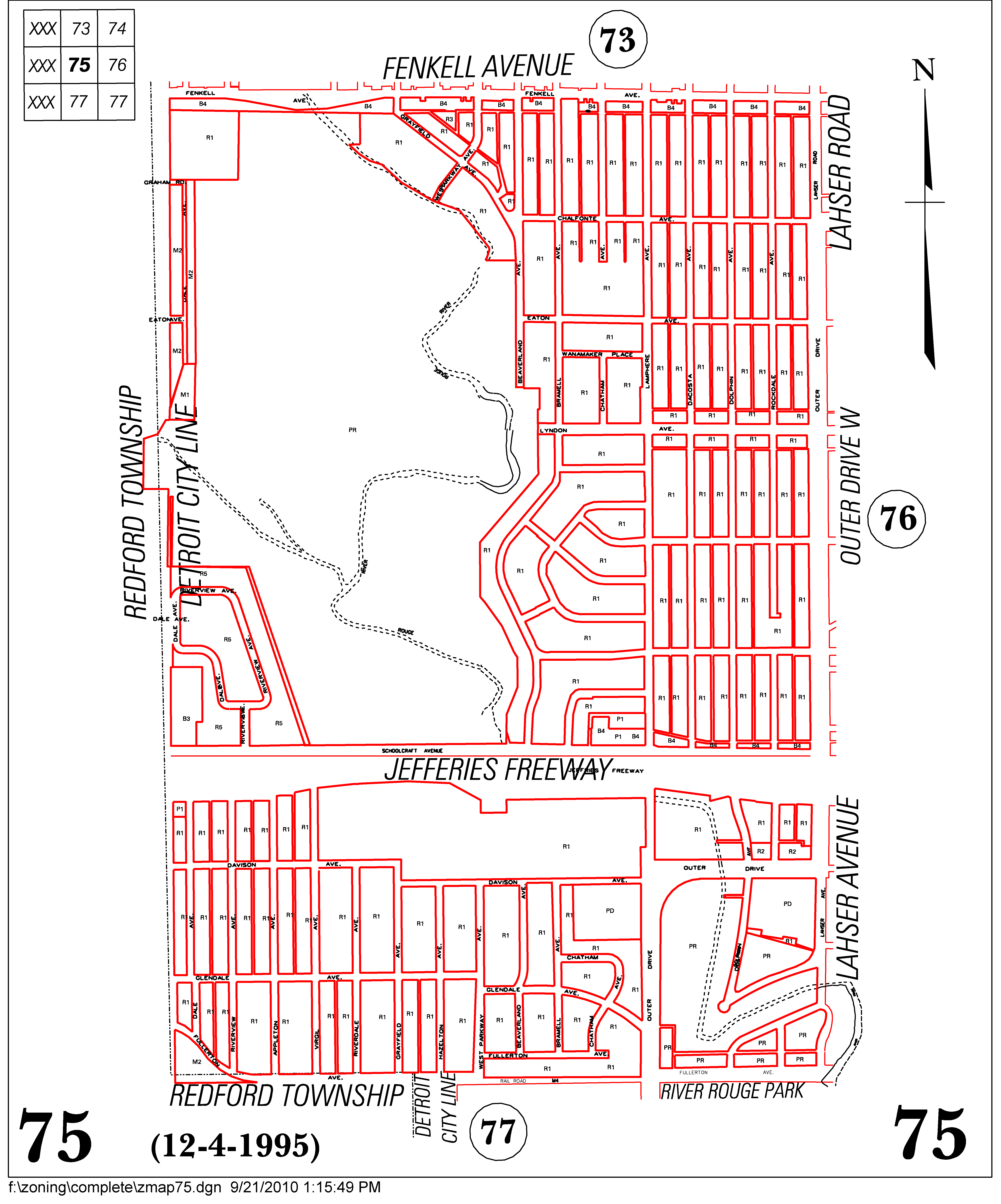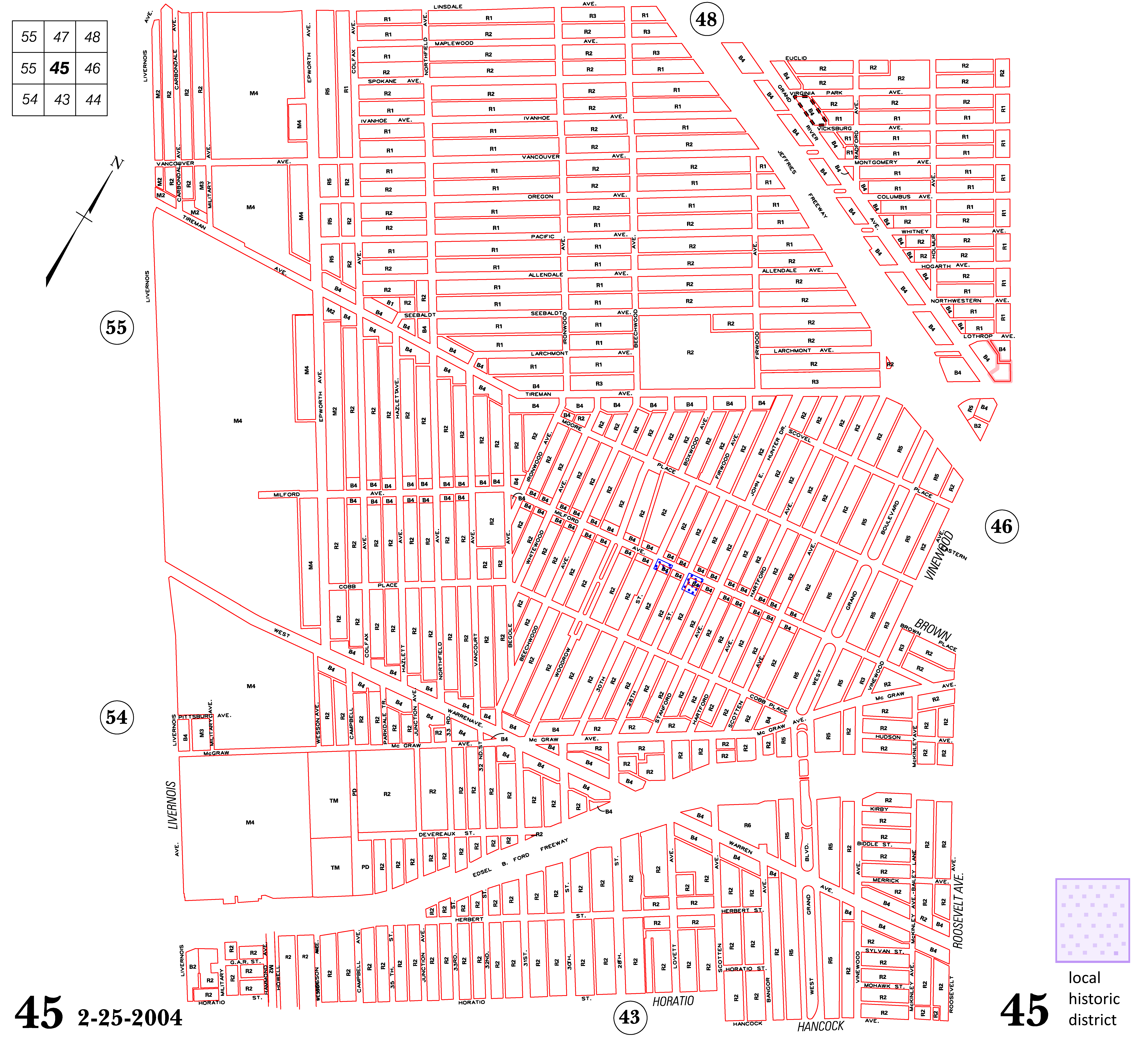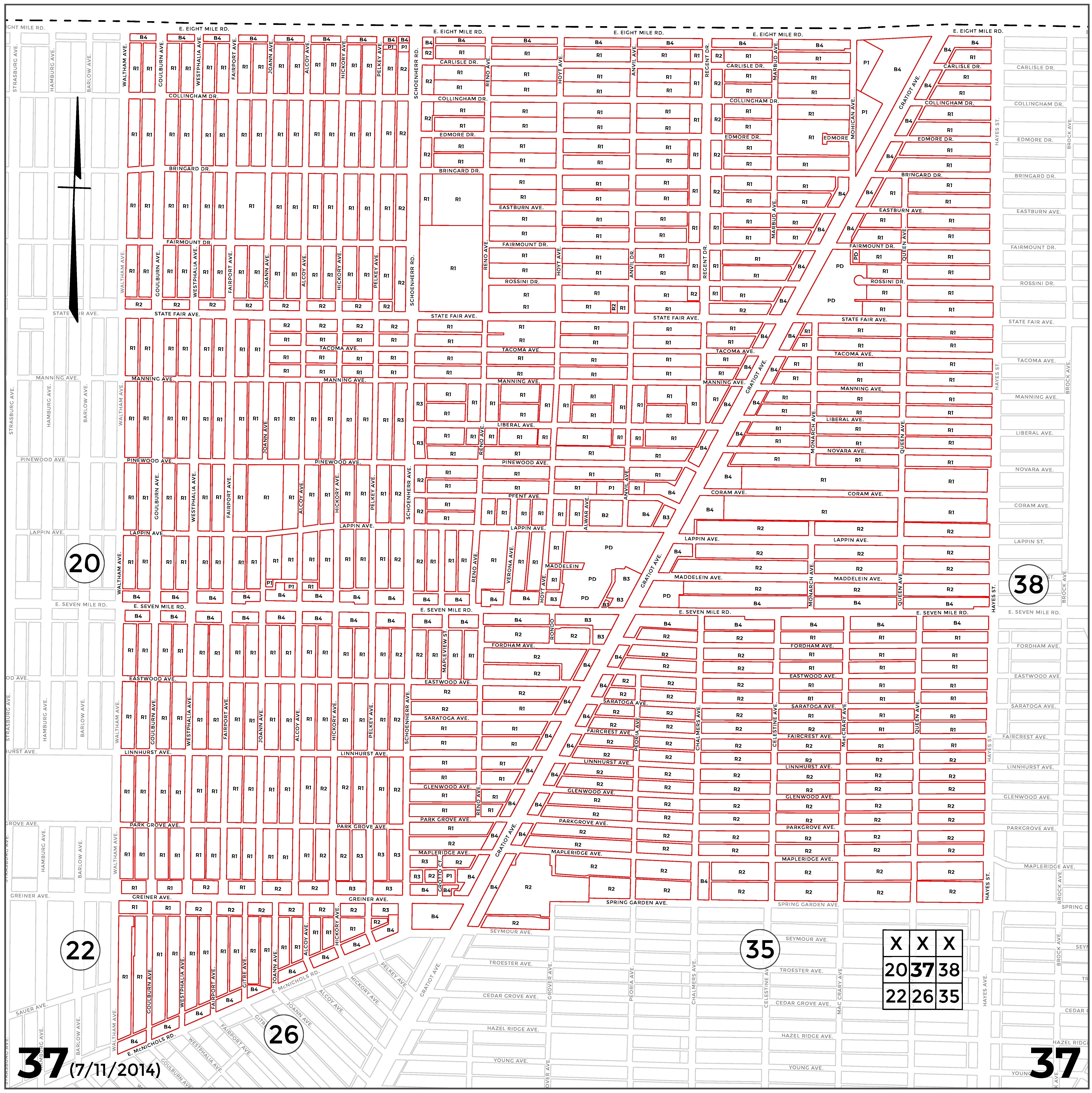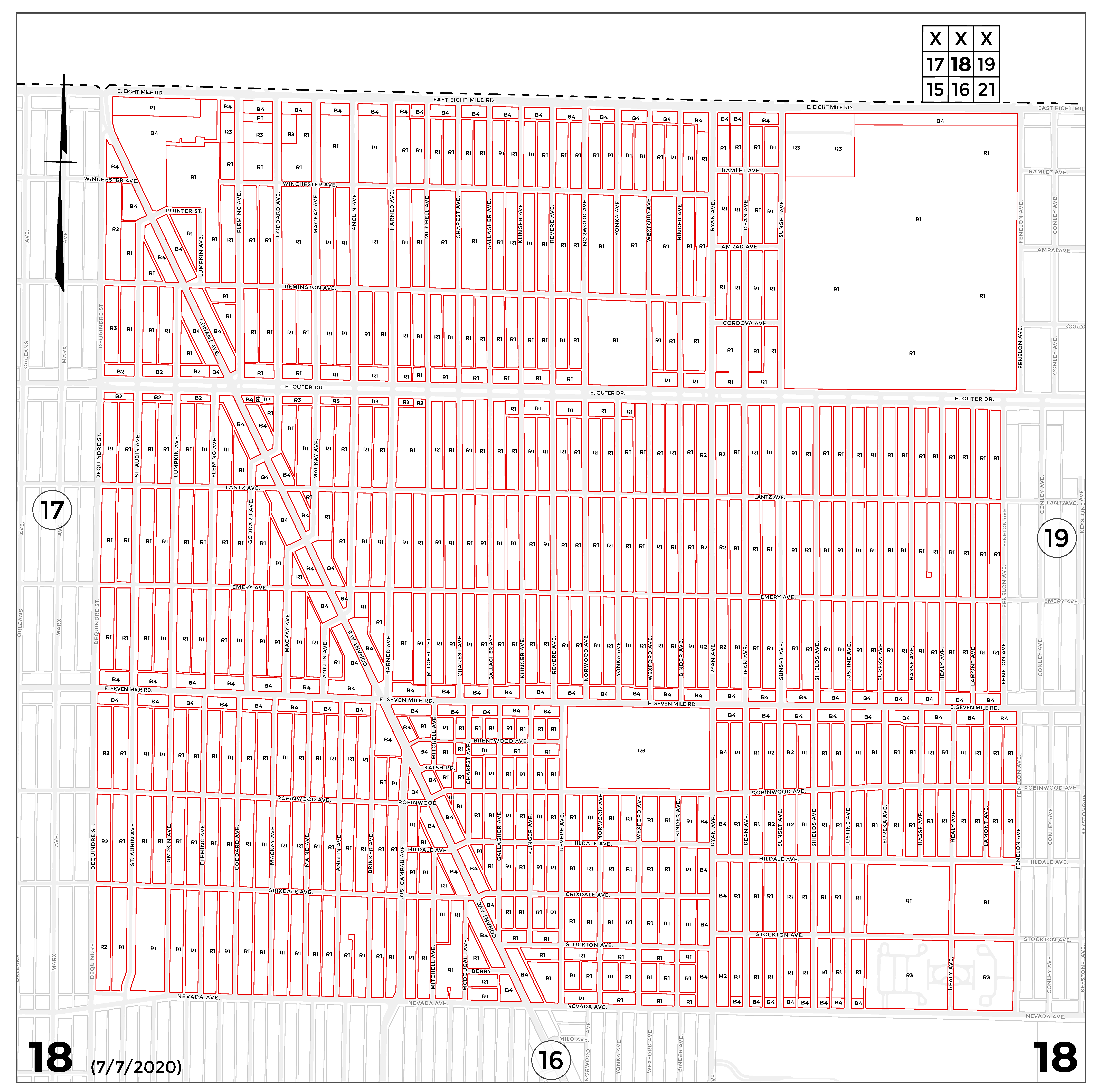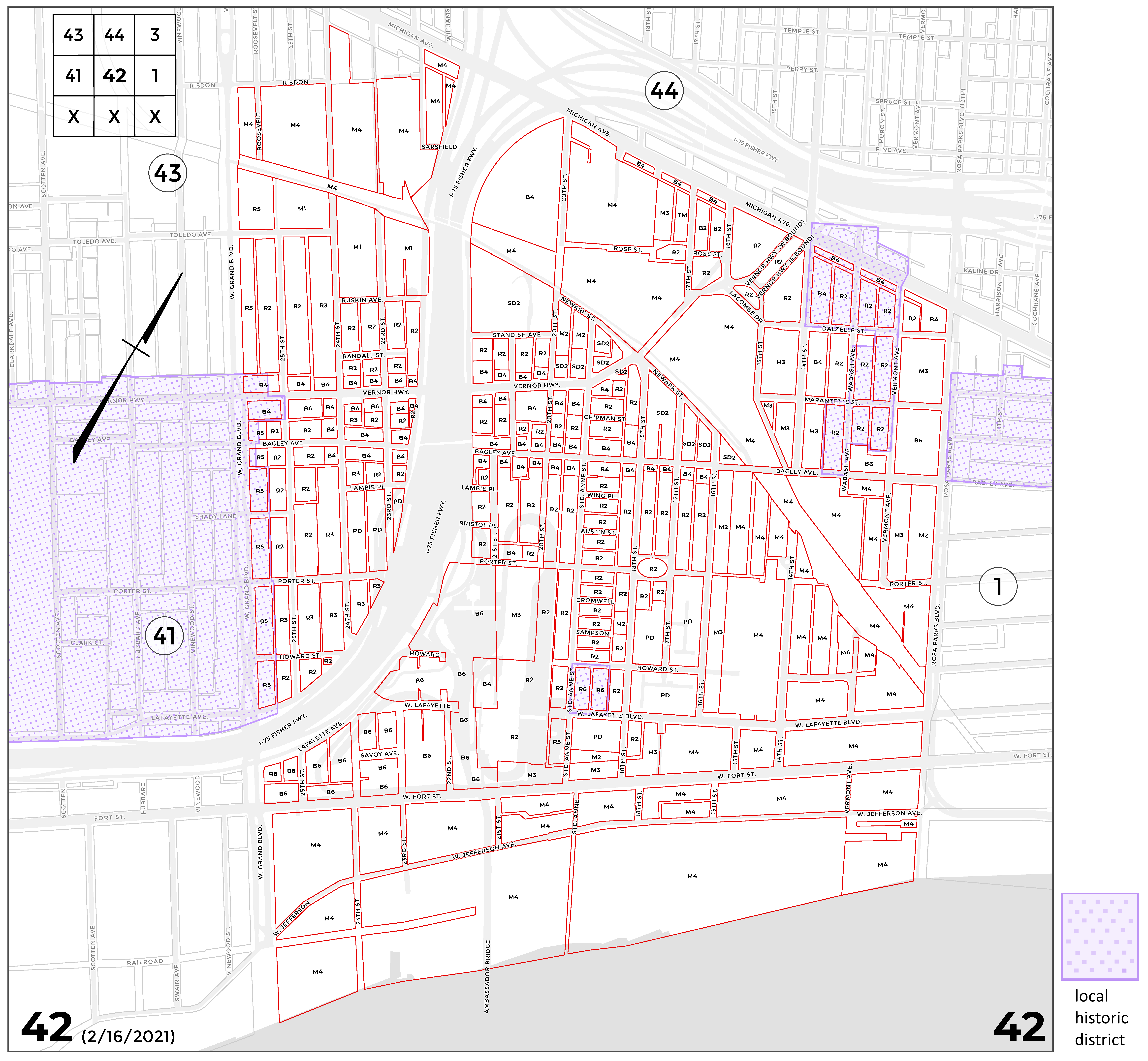 INDEX MAP FOR CITY OF DETROIT ZONING DISTRICTS