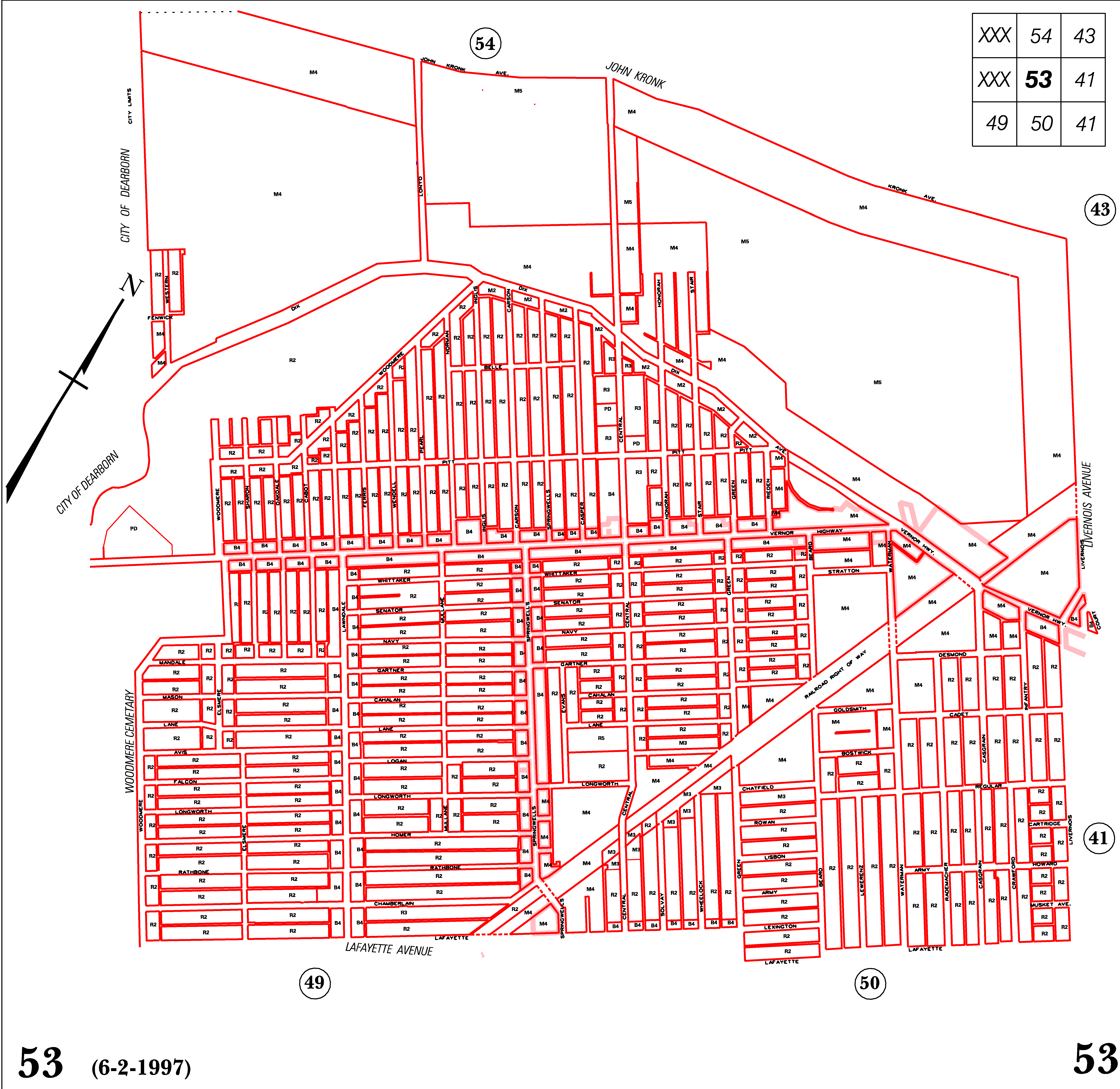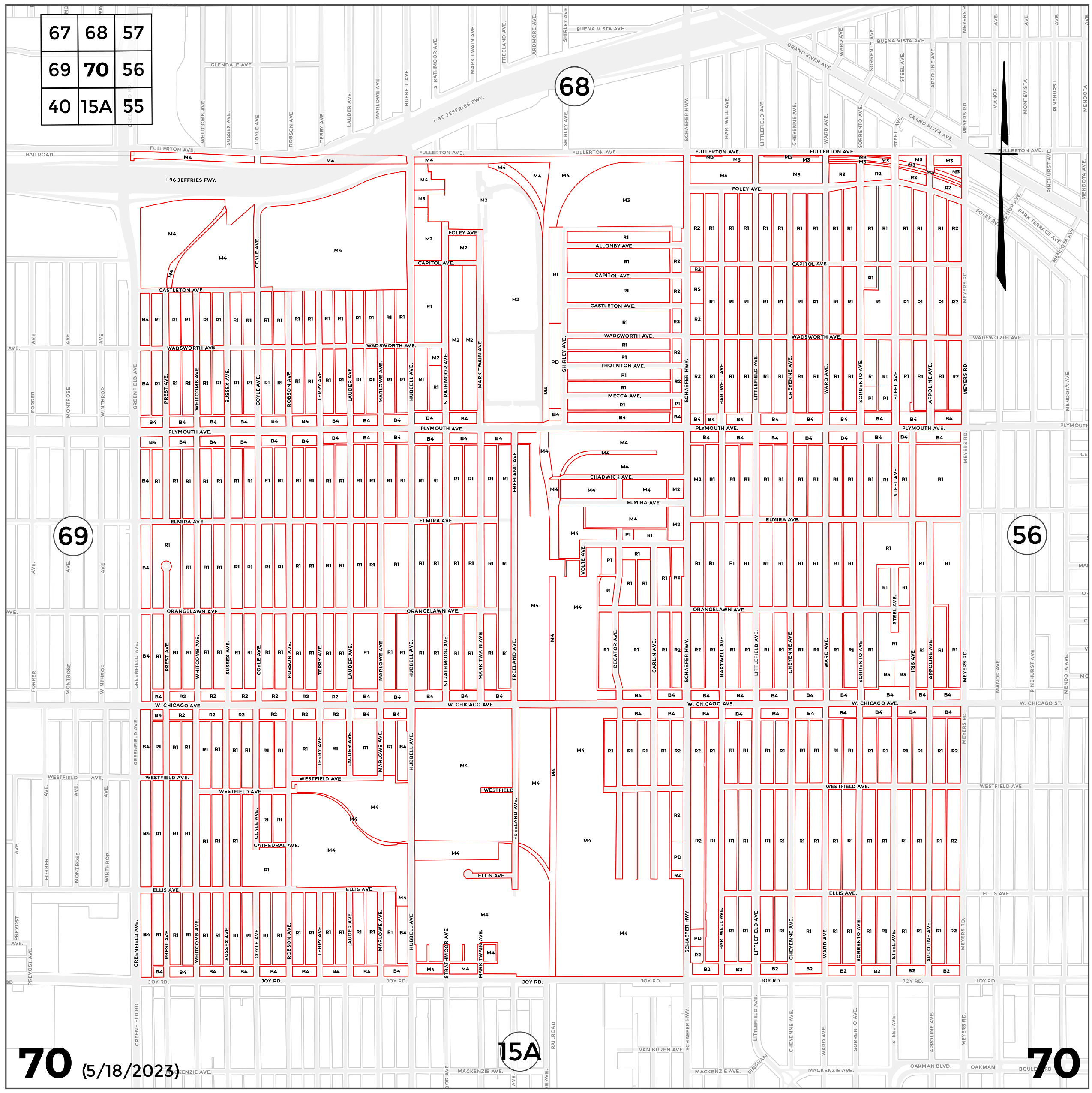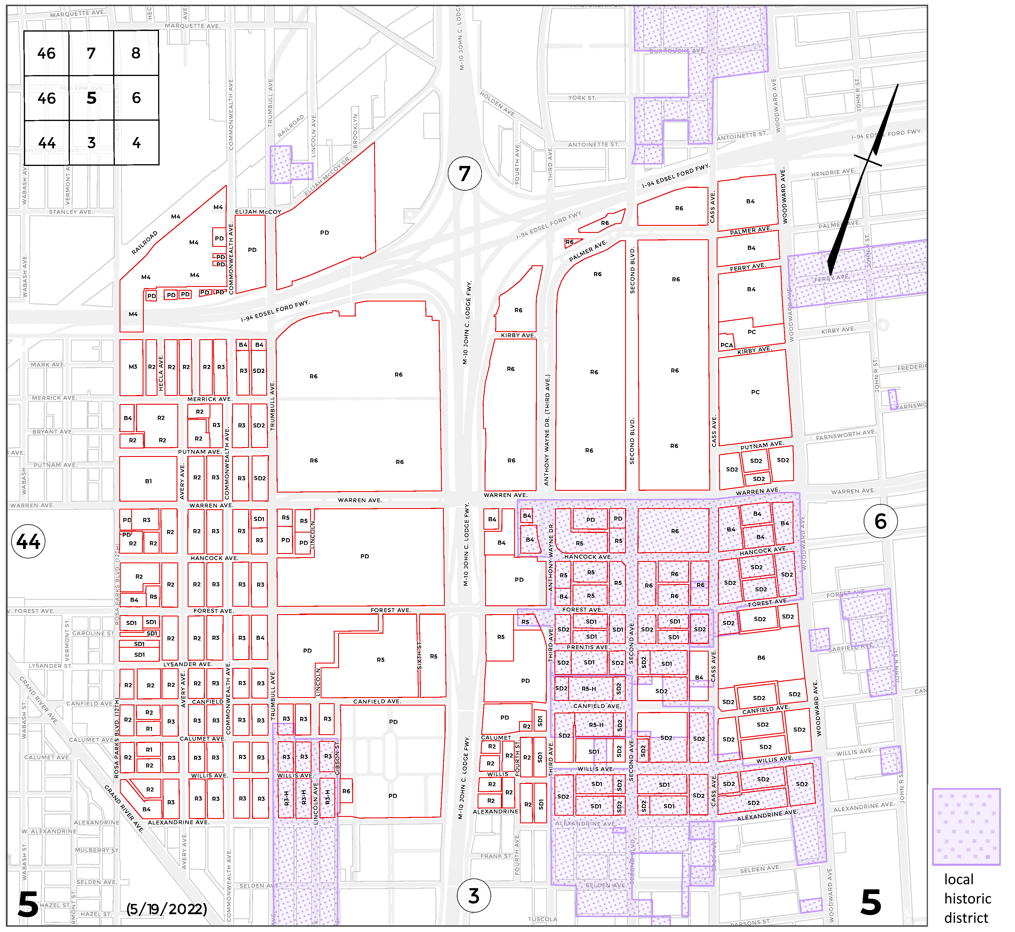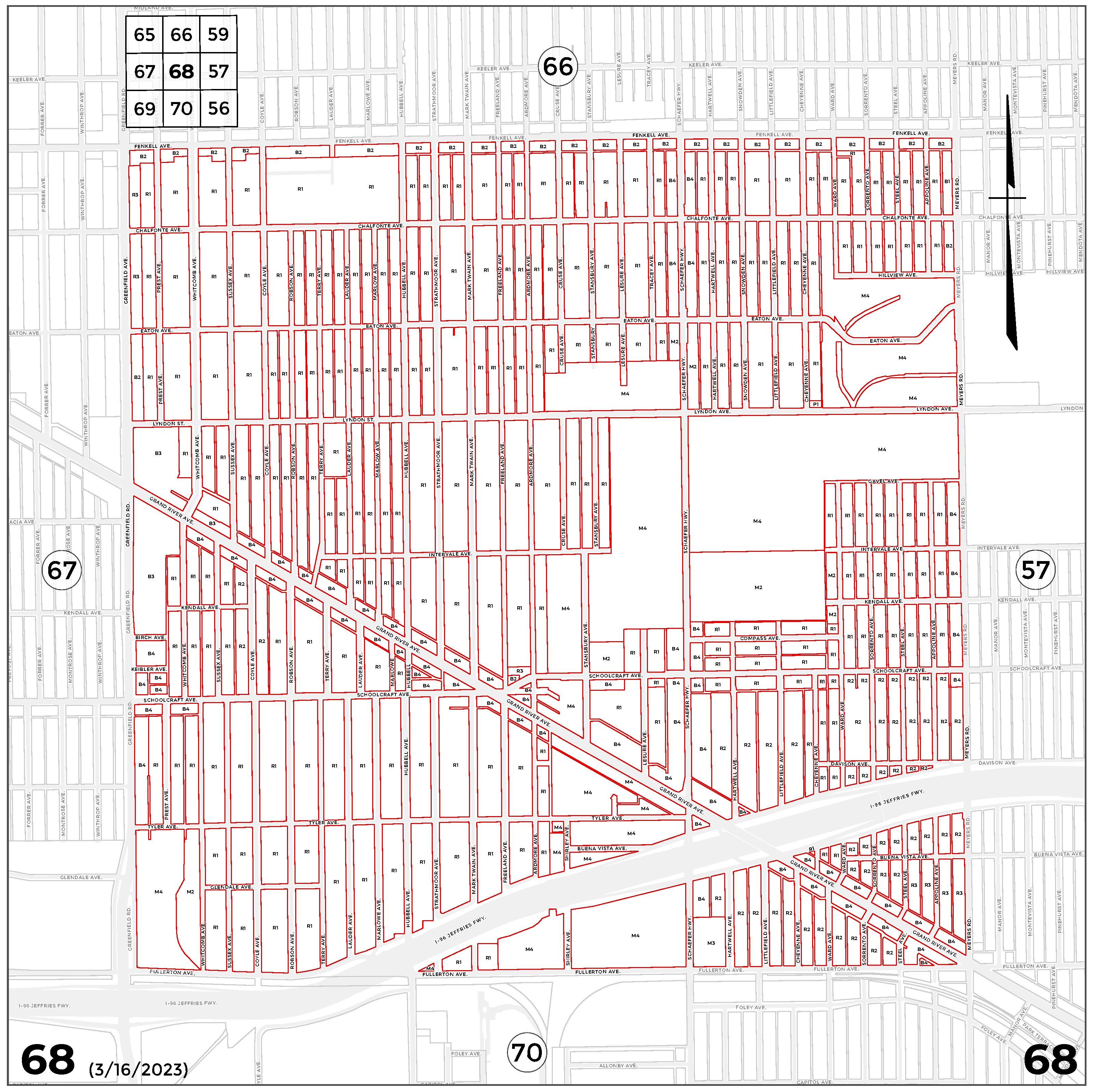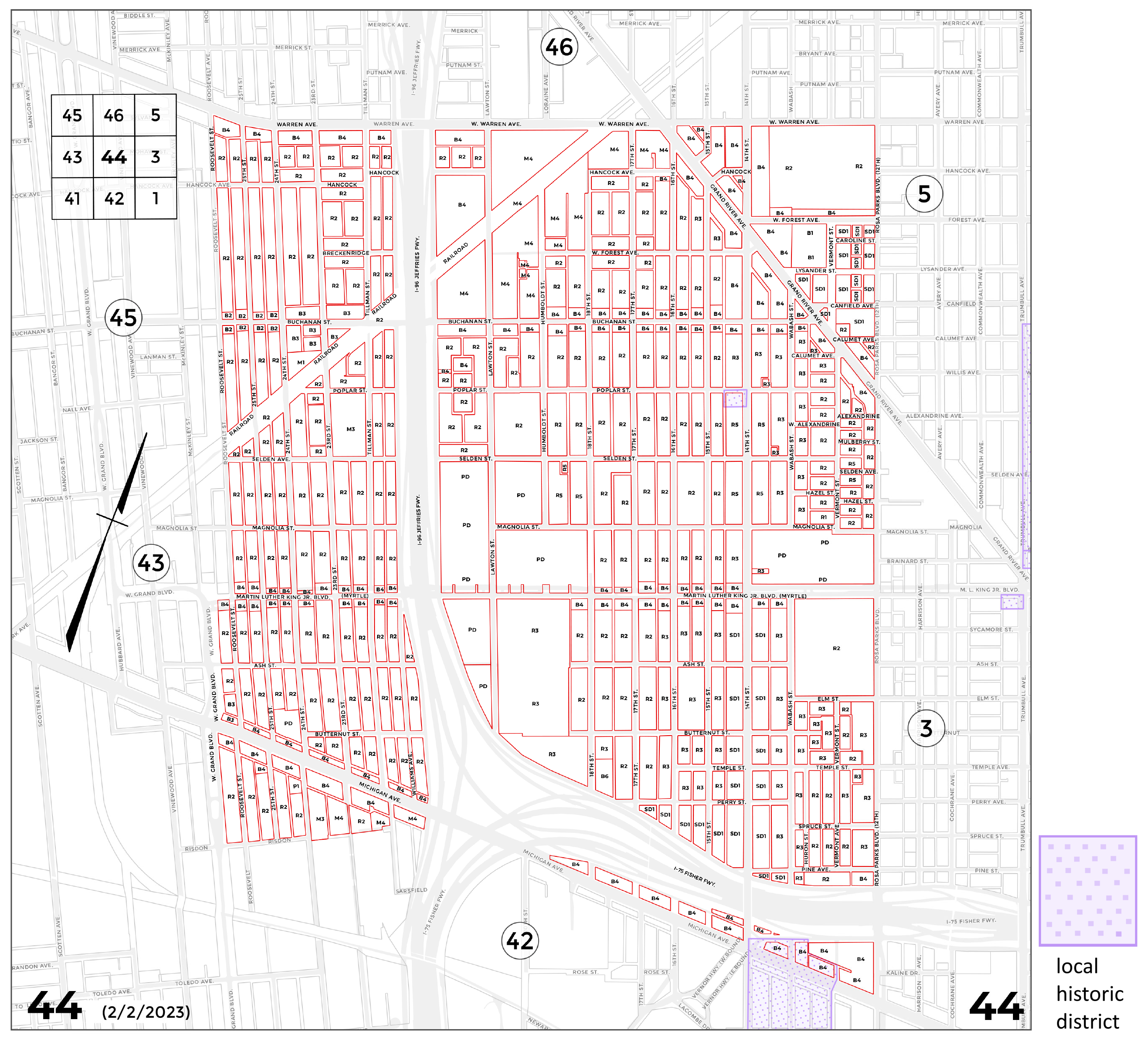 INDEX MAP FOR CITY OF DETROIT ZONING DISTRICTS