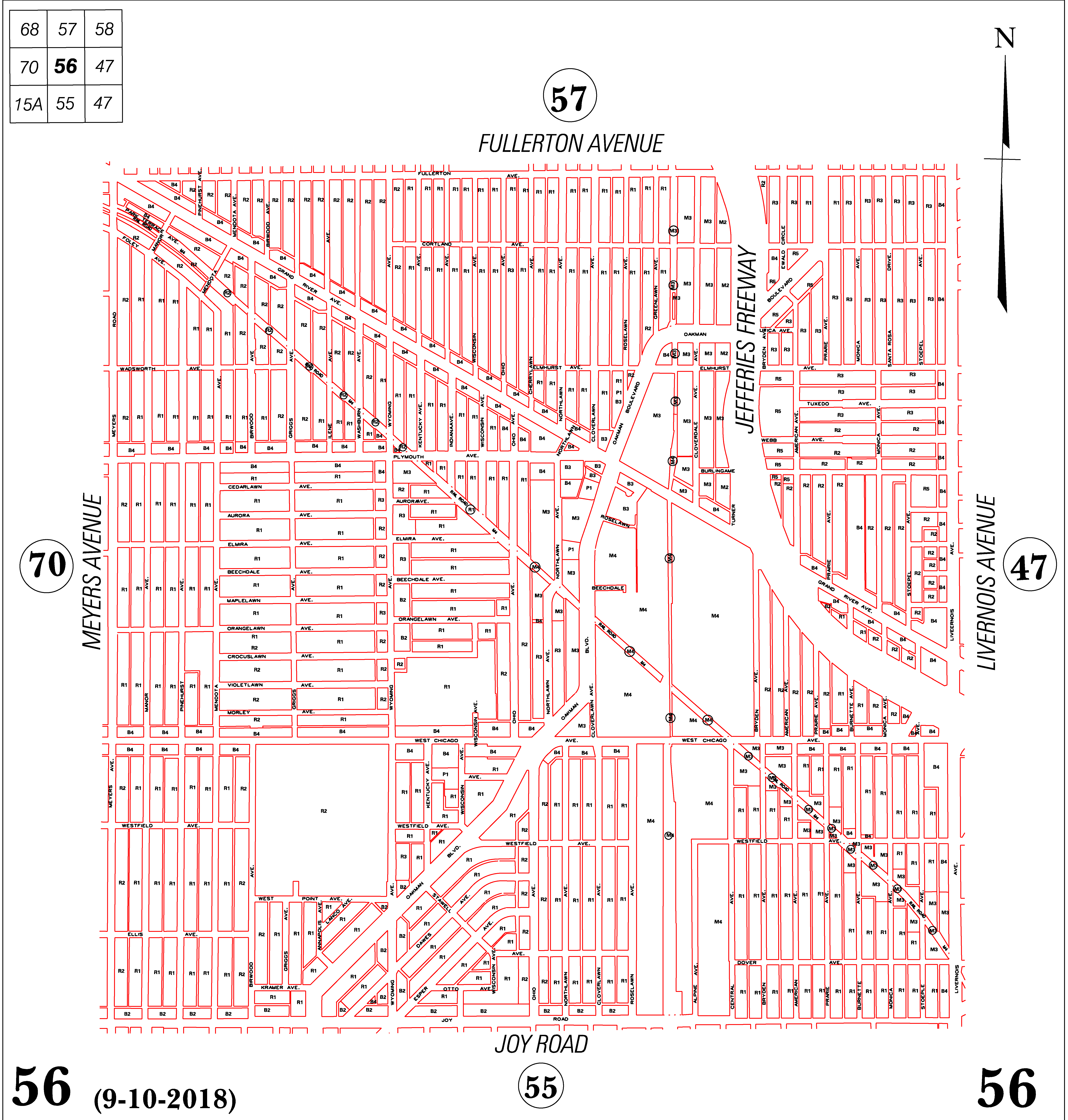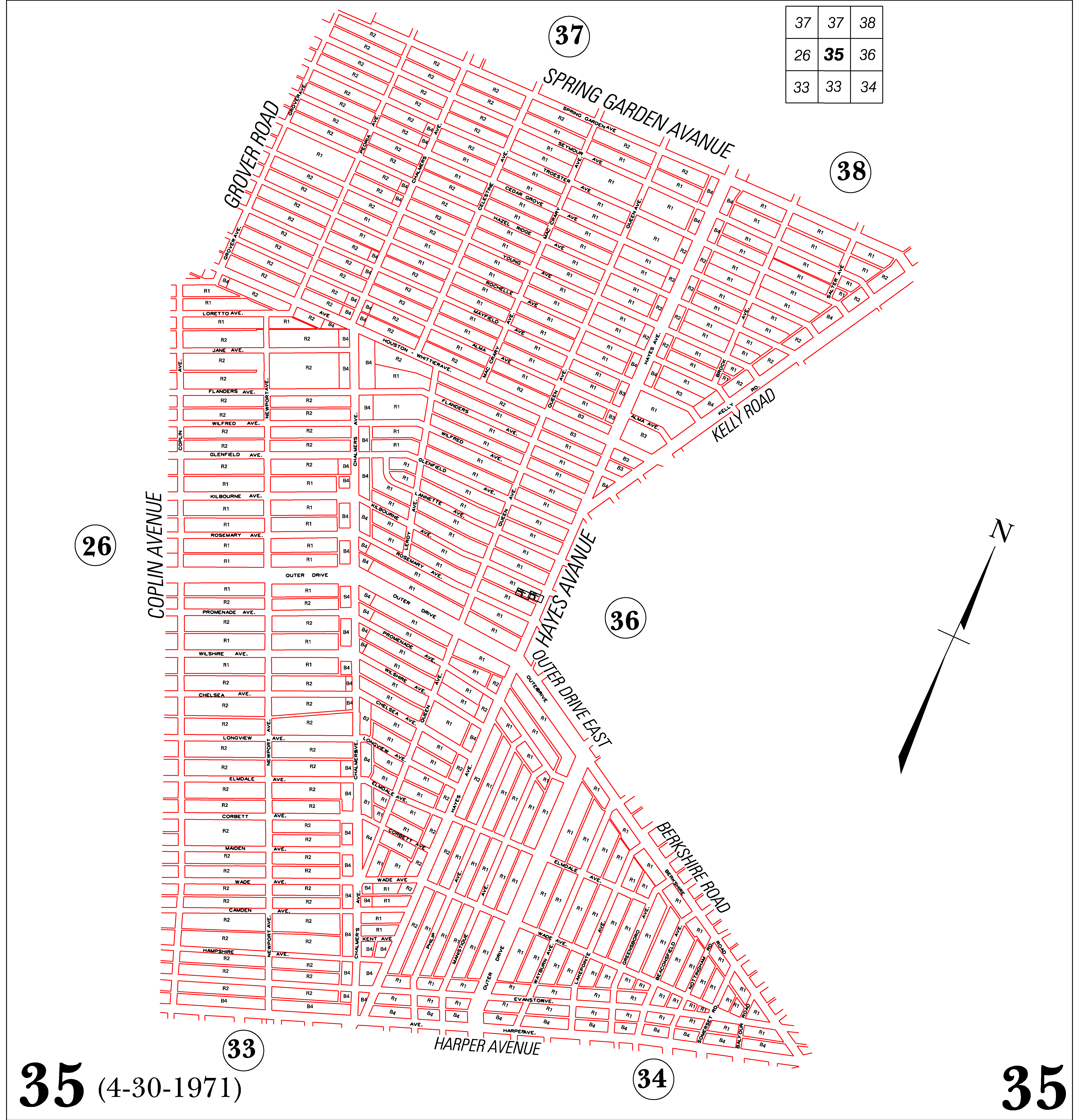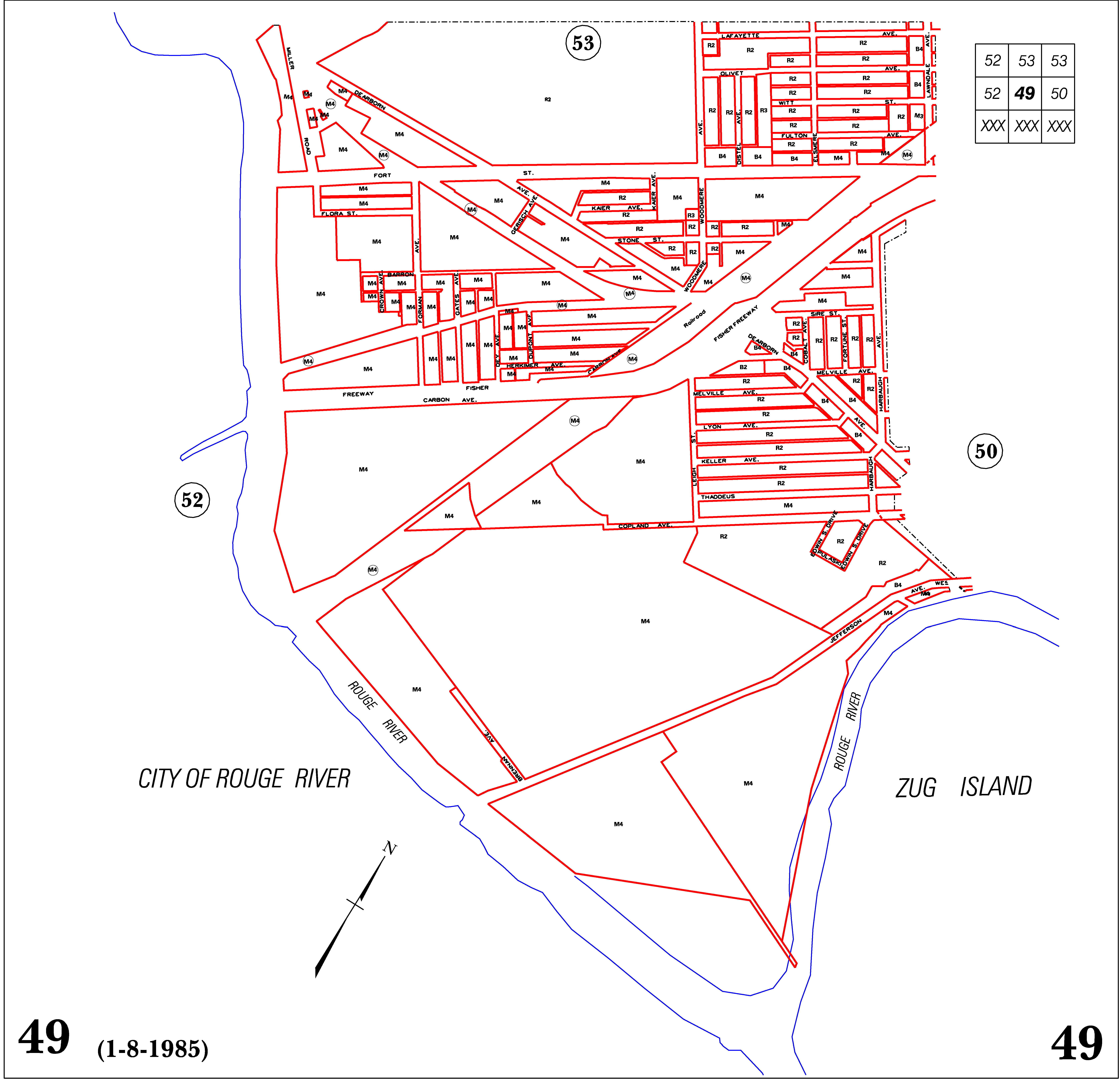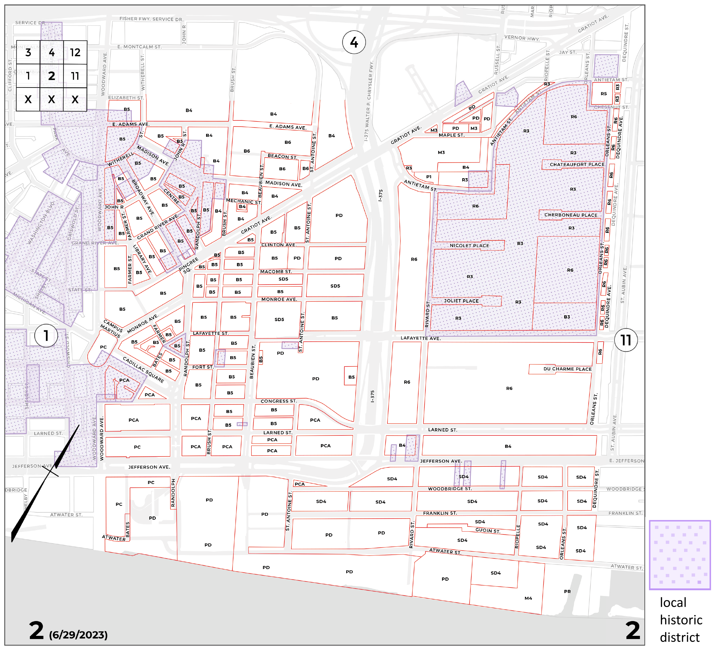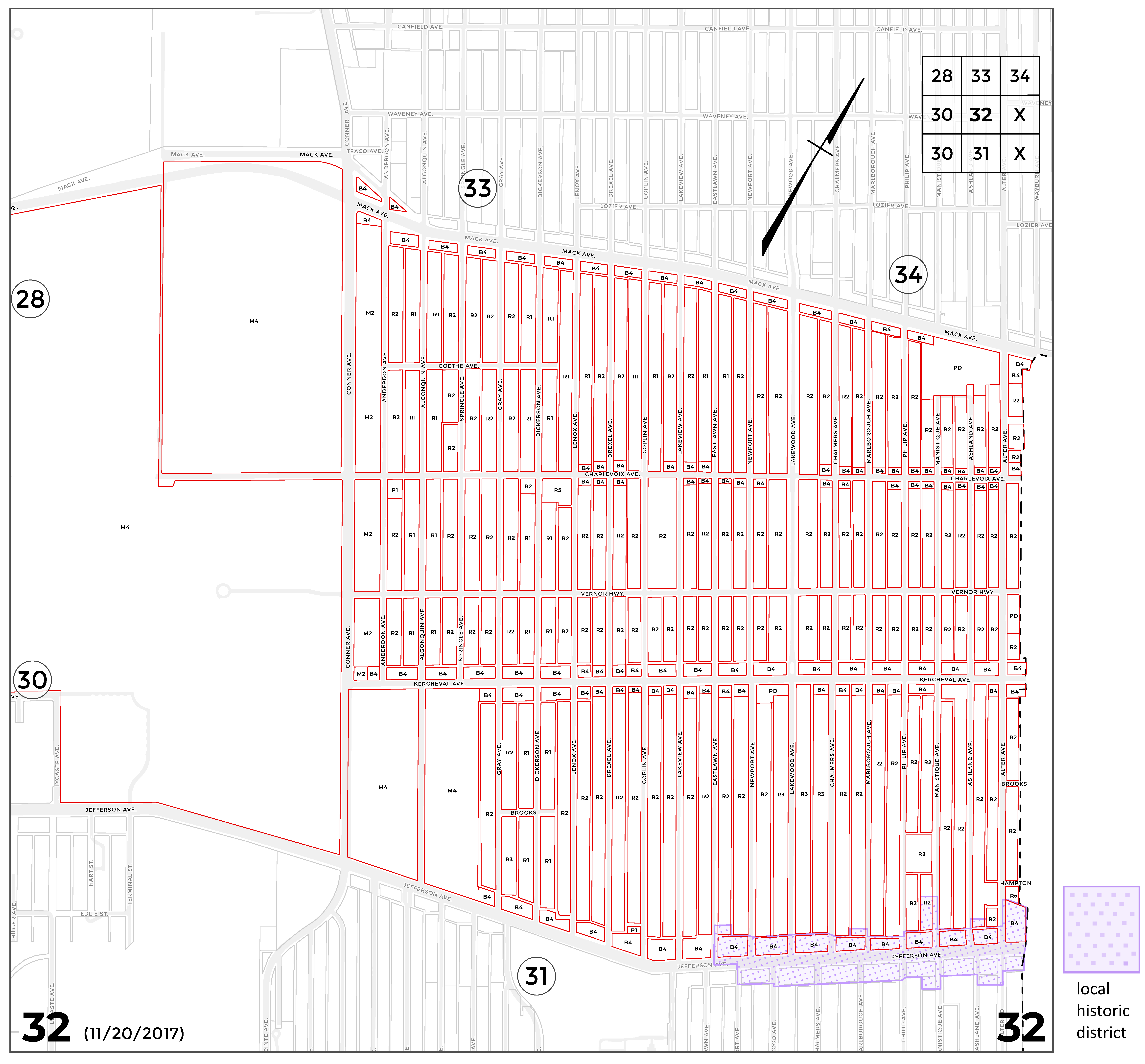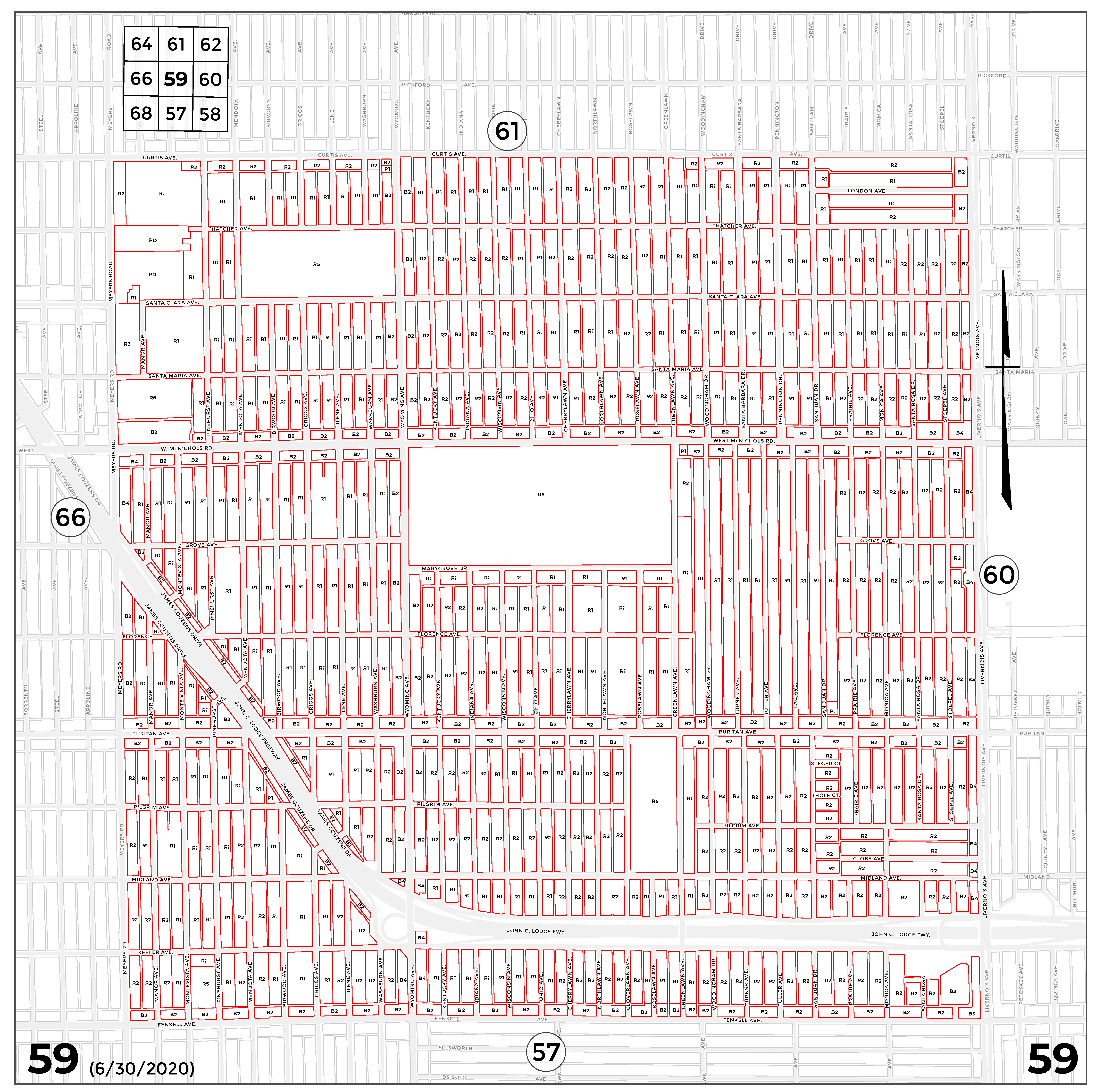 INDEX MAP FOR CITY OF DETROIT ZONING DISTRICTS