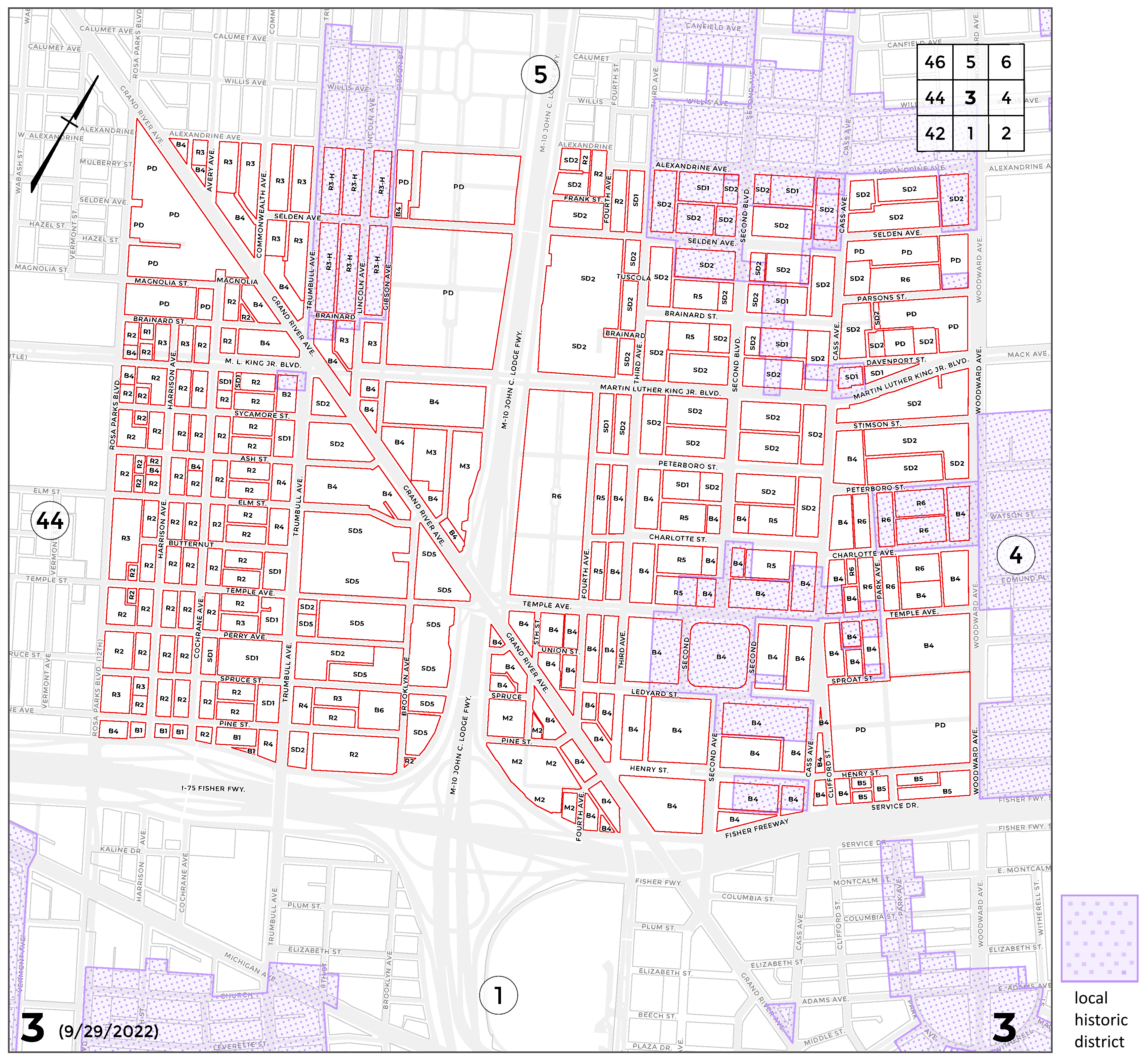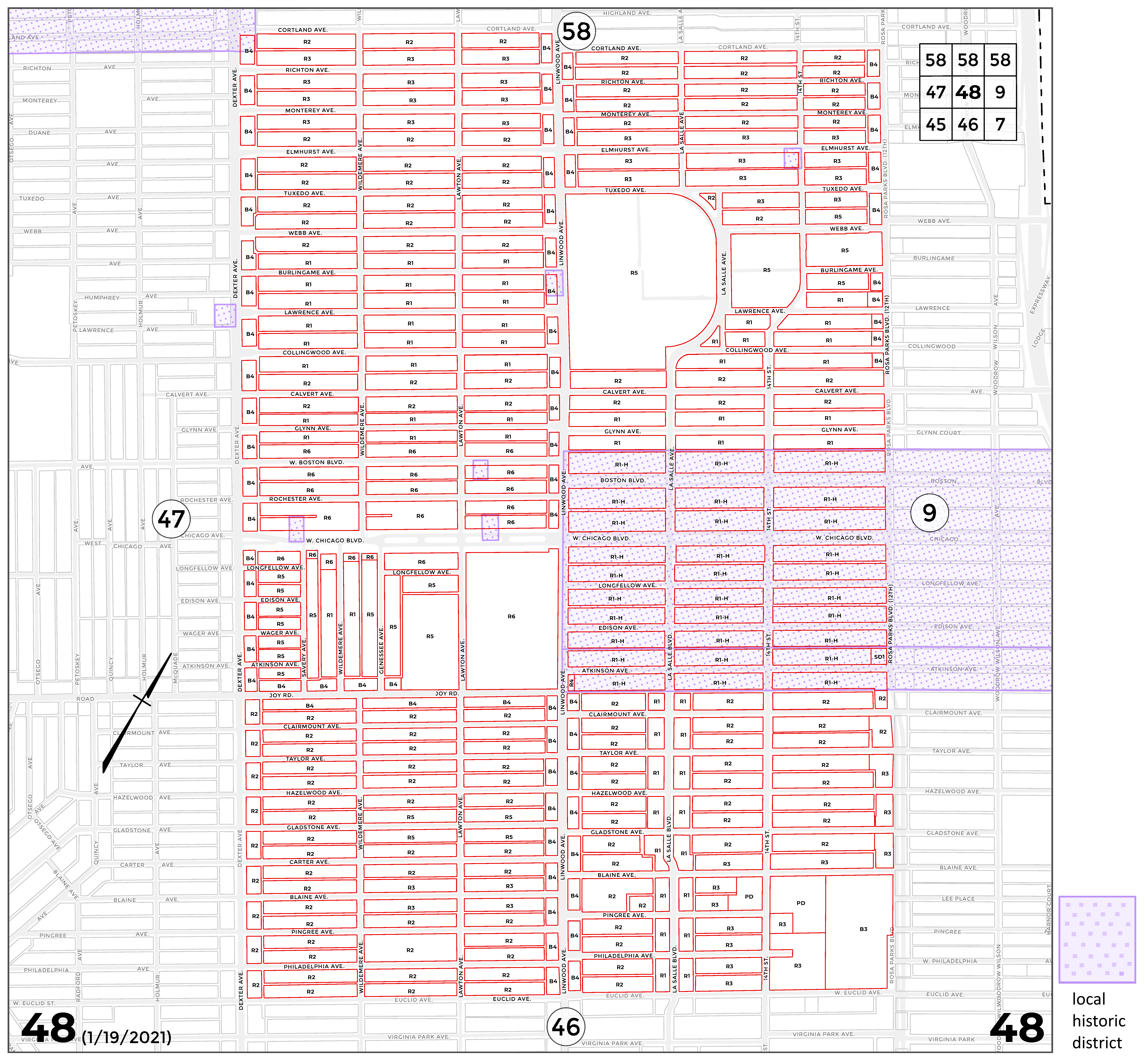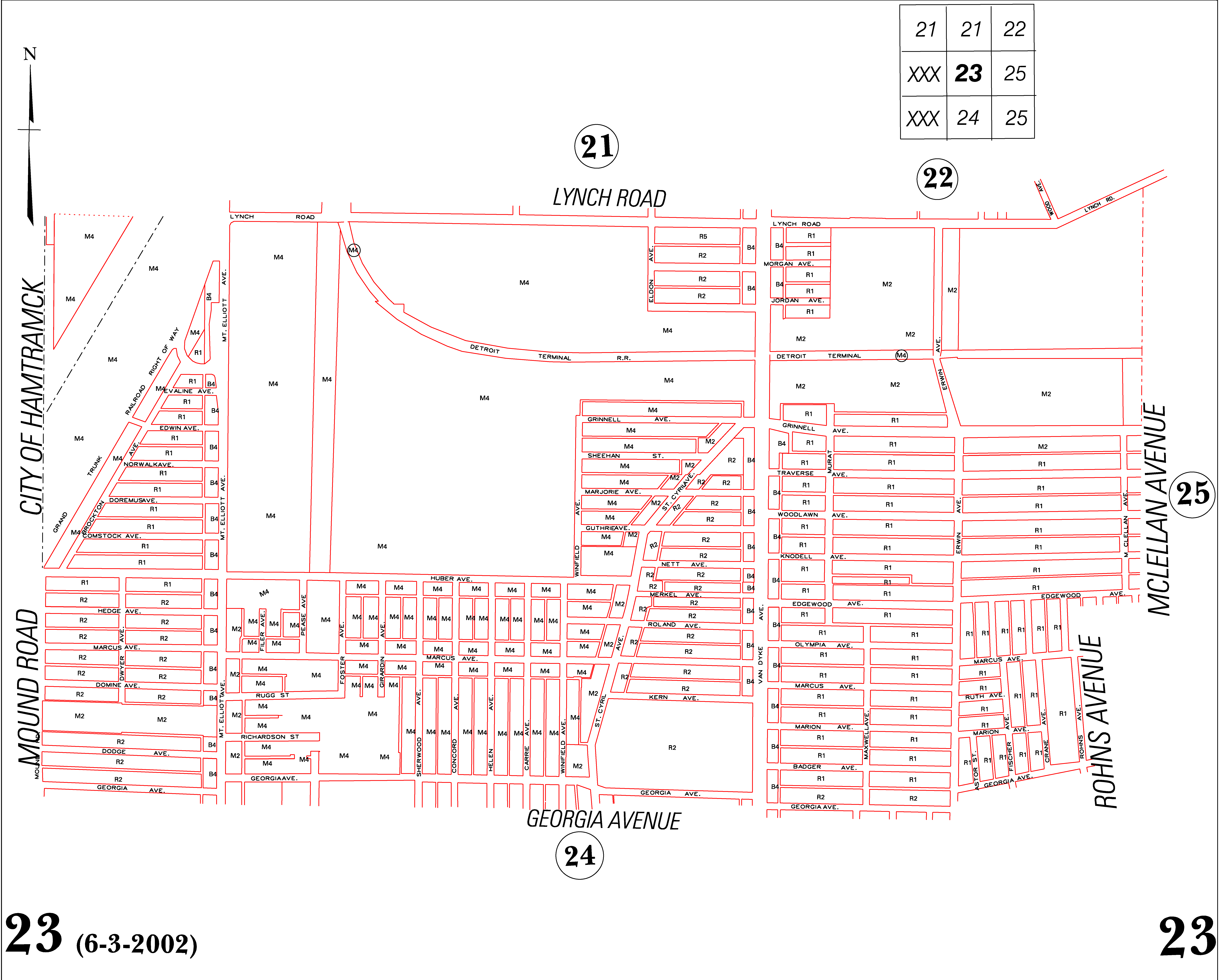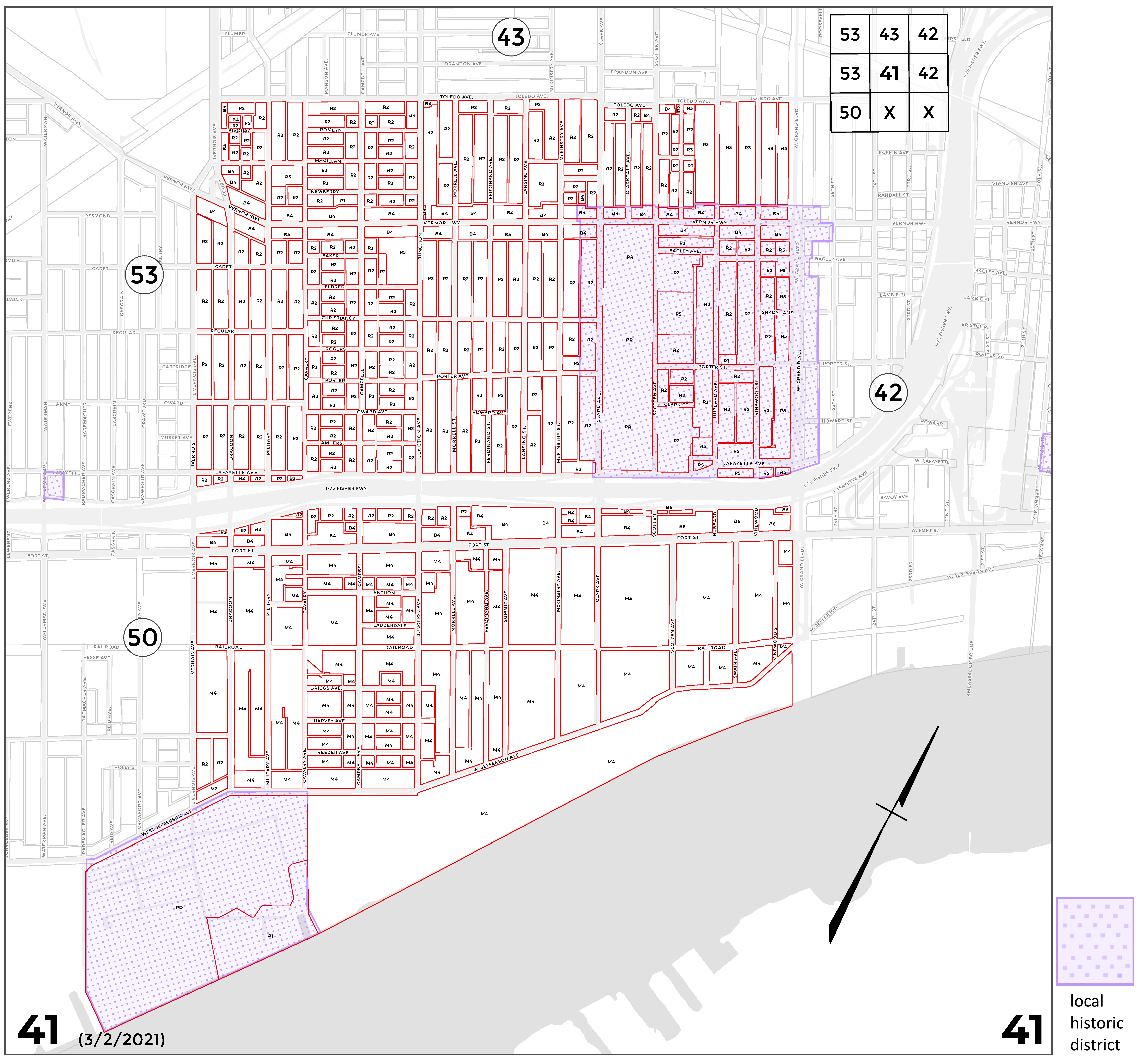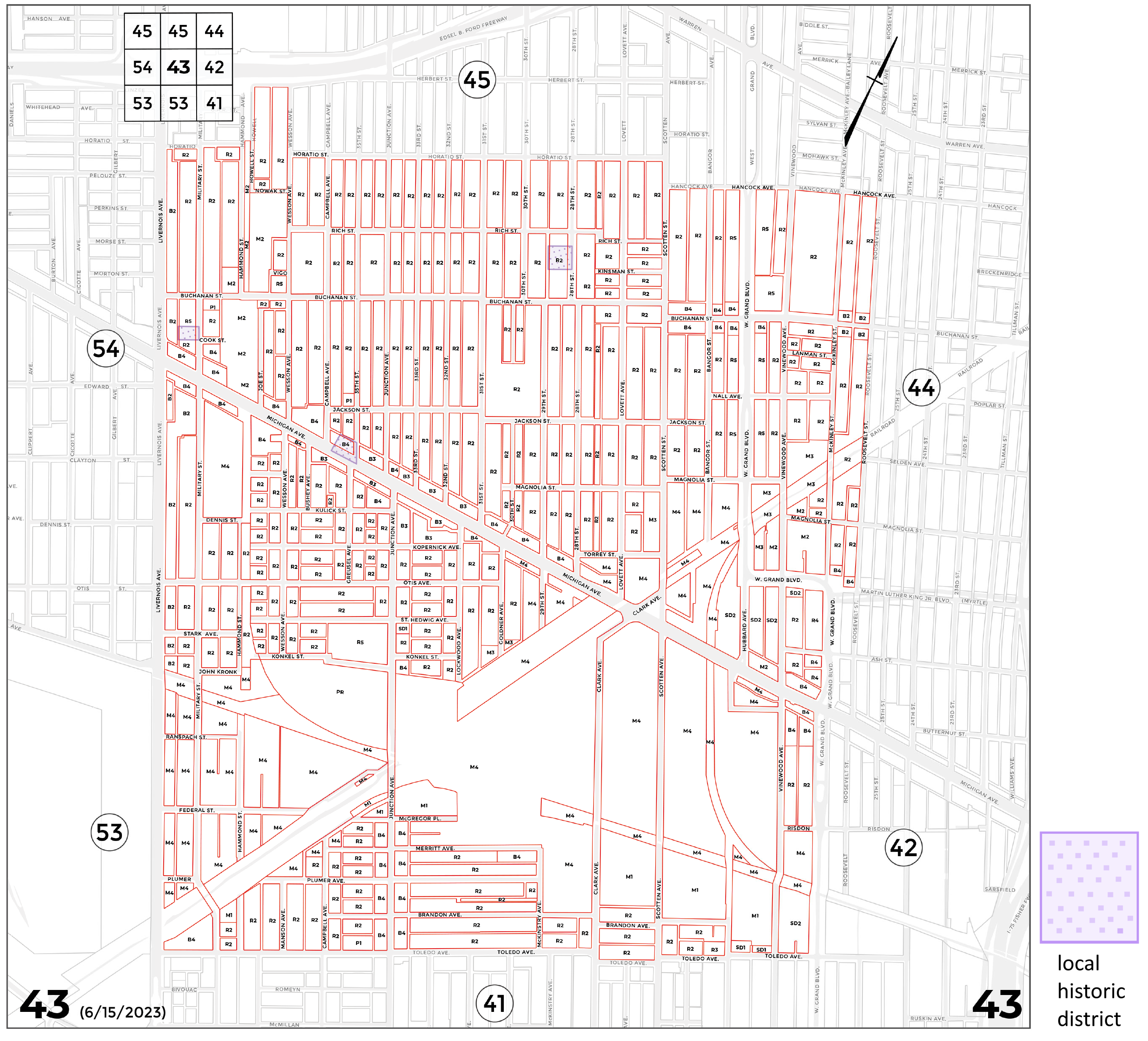 INDEX MAP FOR CITY OF DETROIT ZONING DISTRICTS