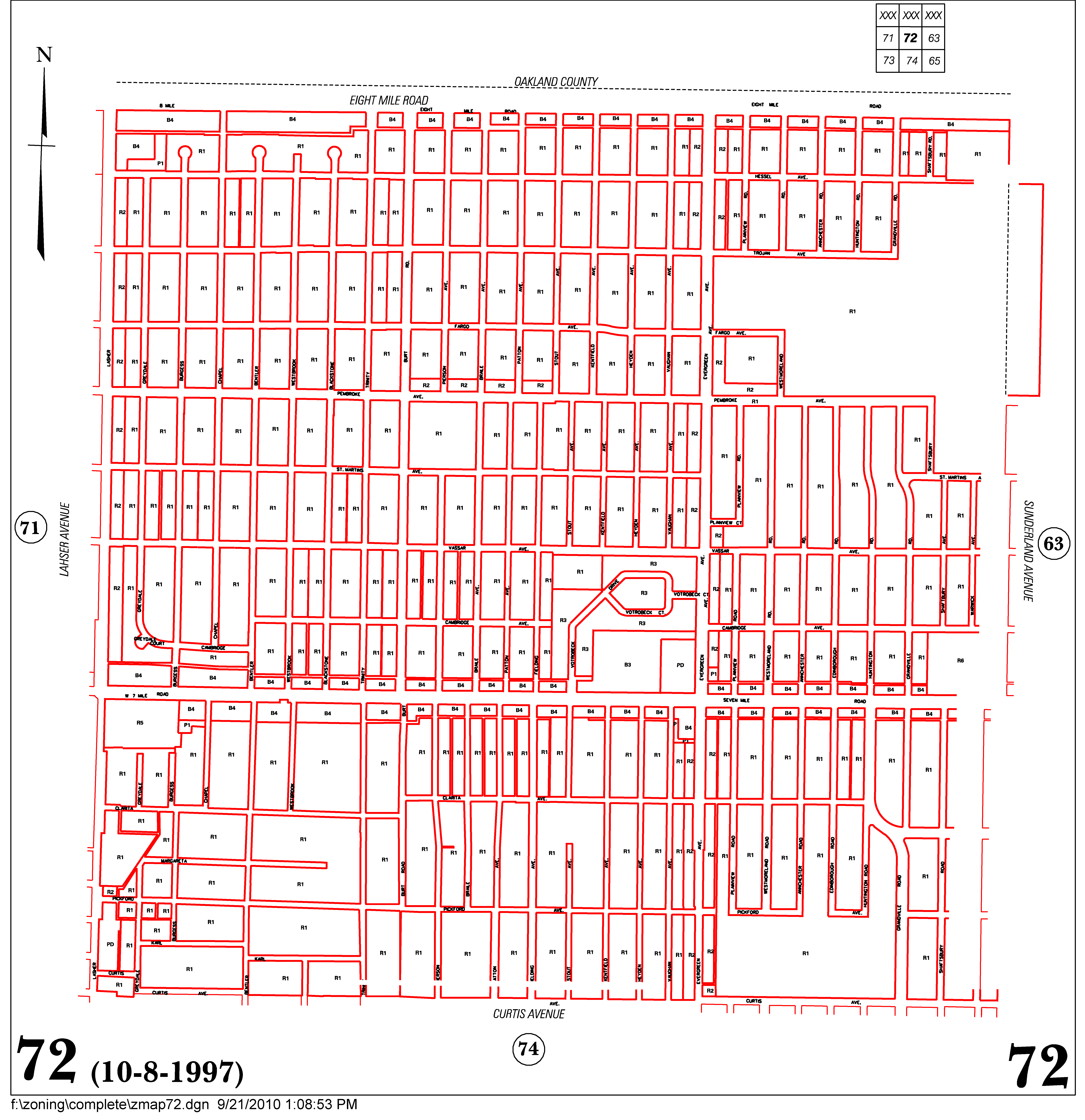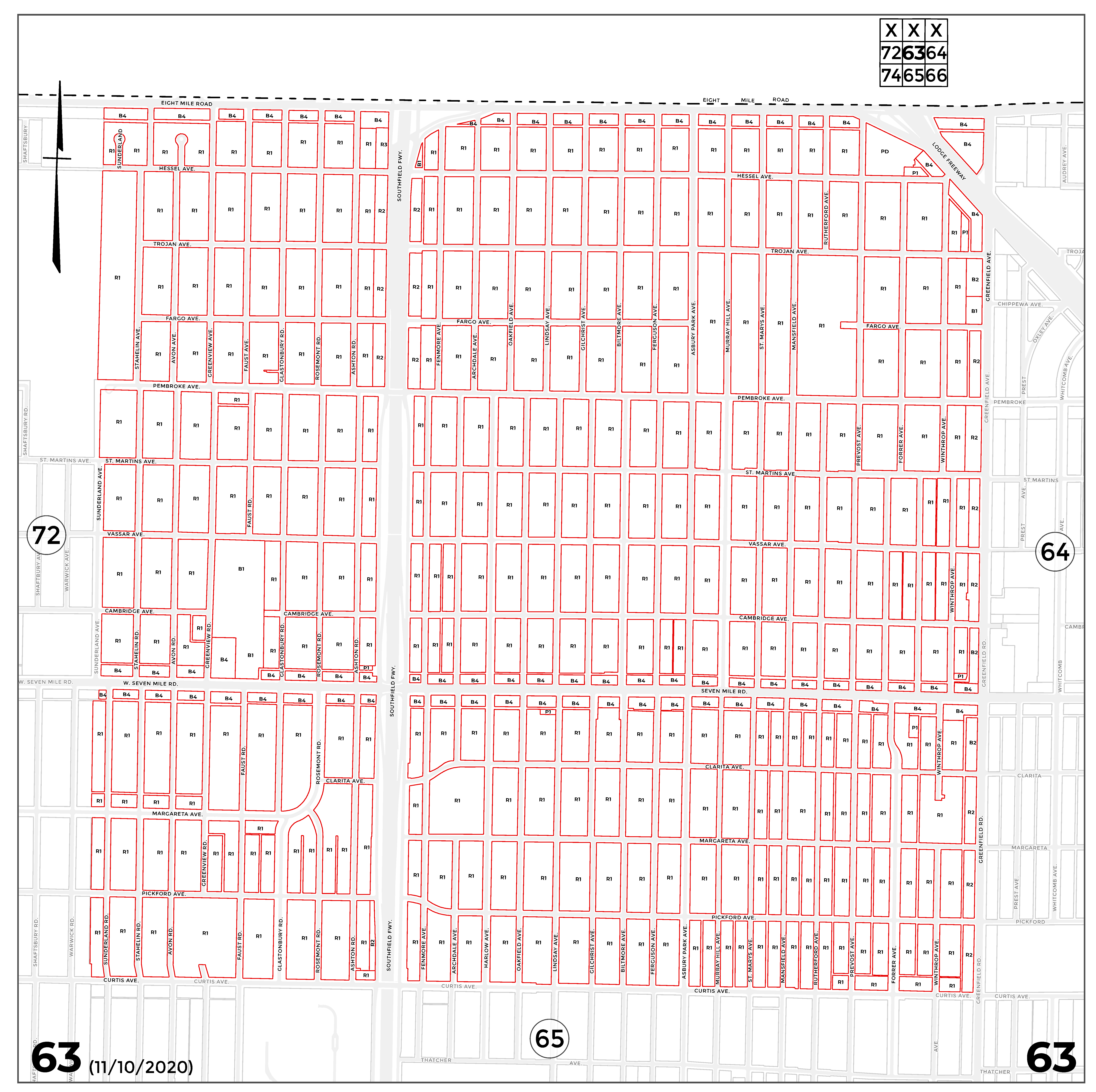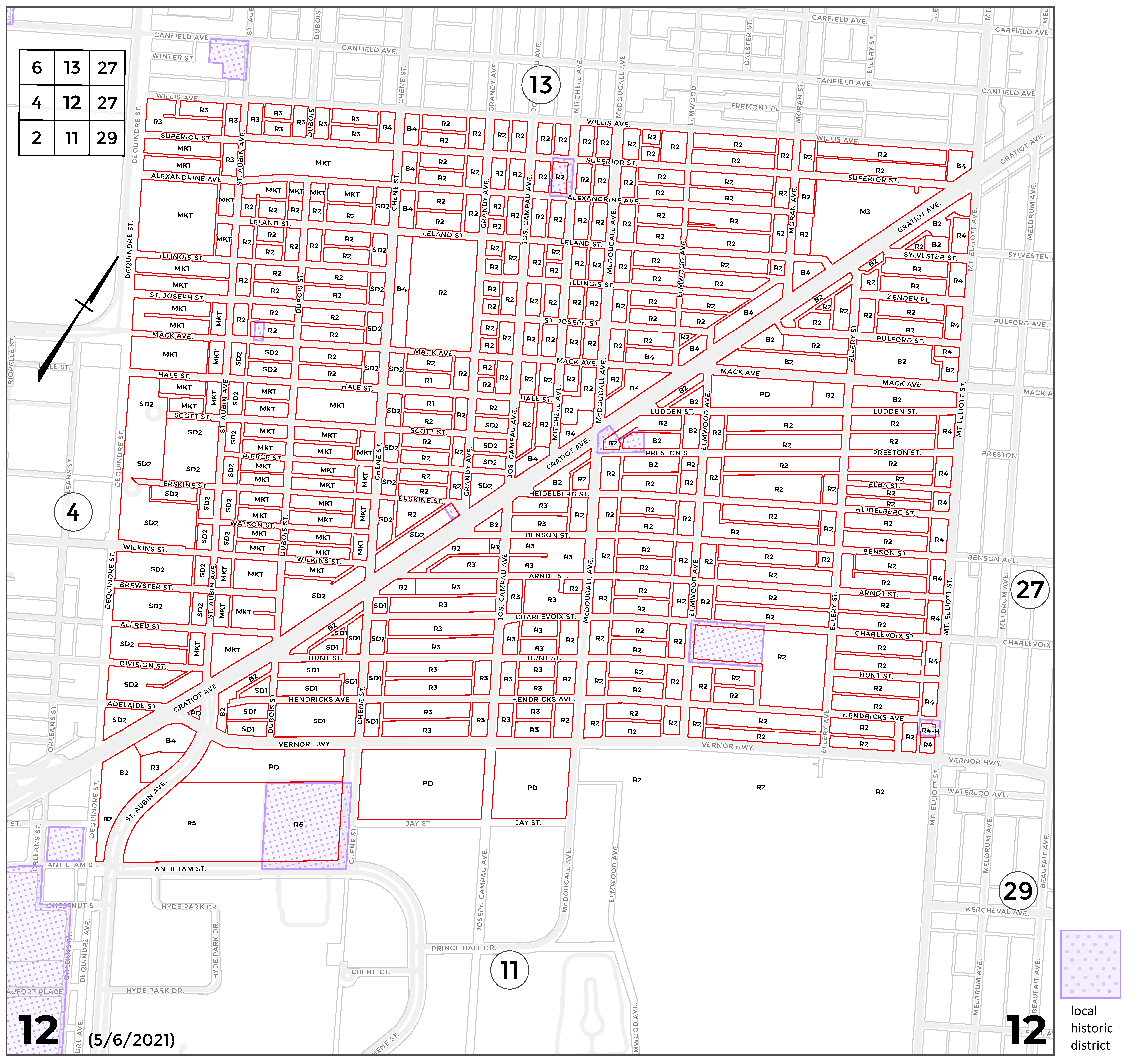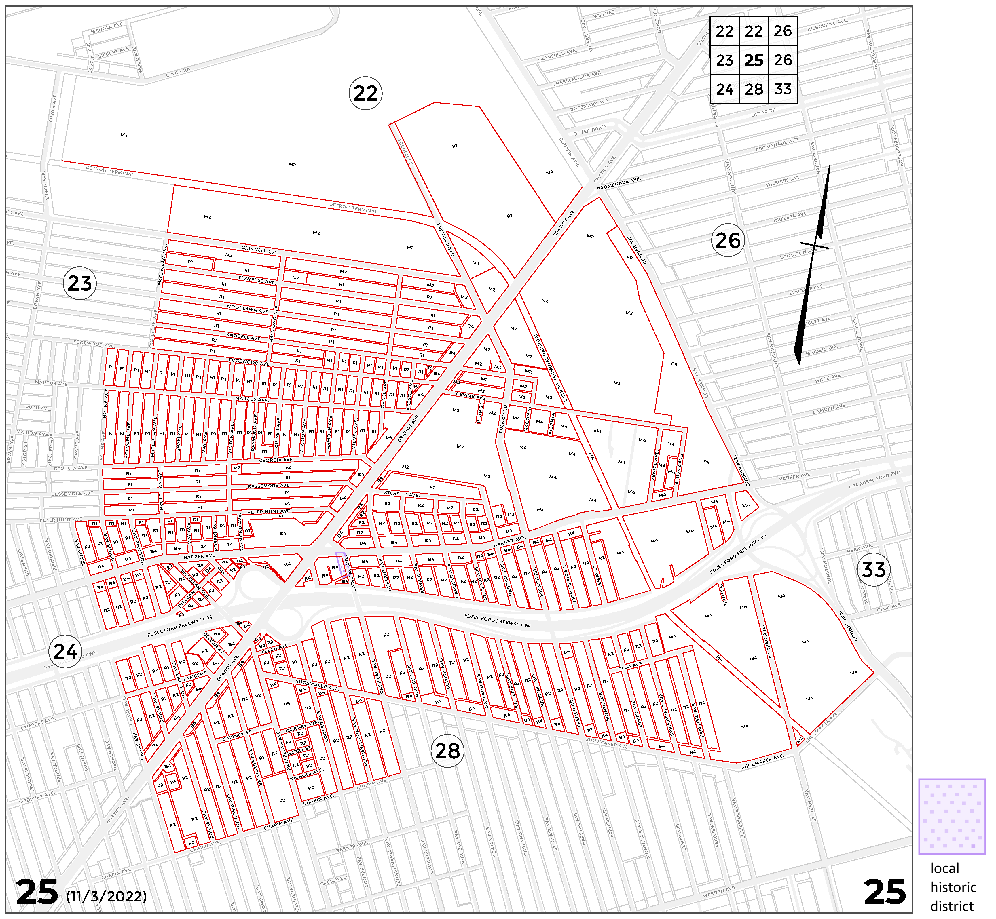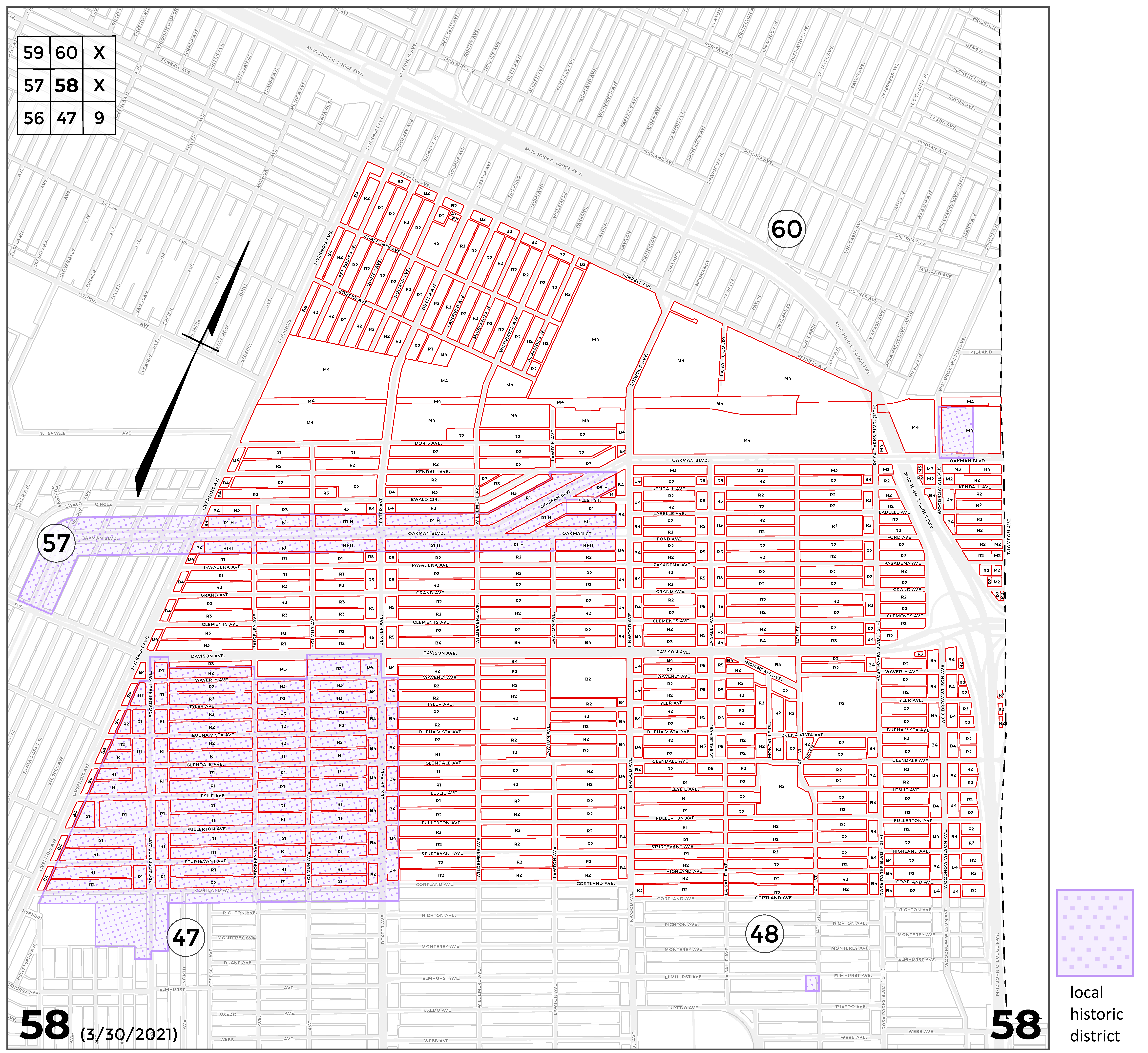 INDEX MAP FOR CITY OF DETROIT ZONING DISTRICTS