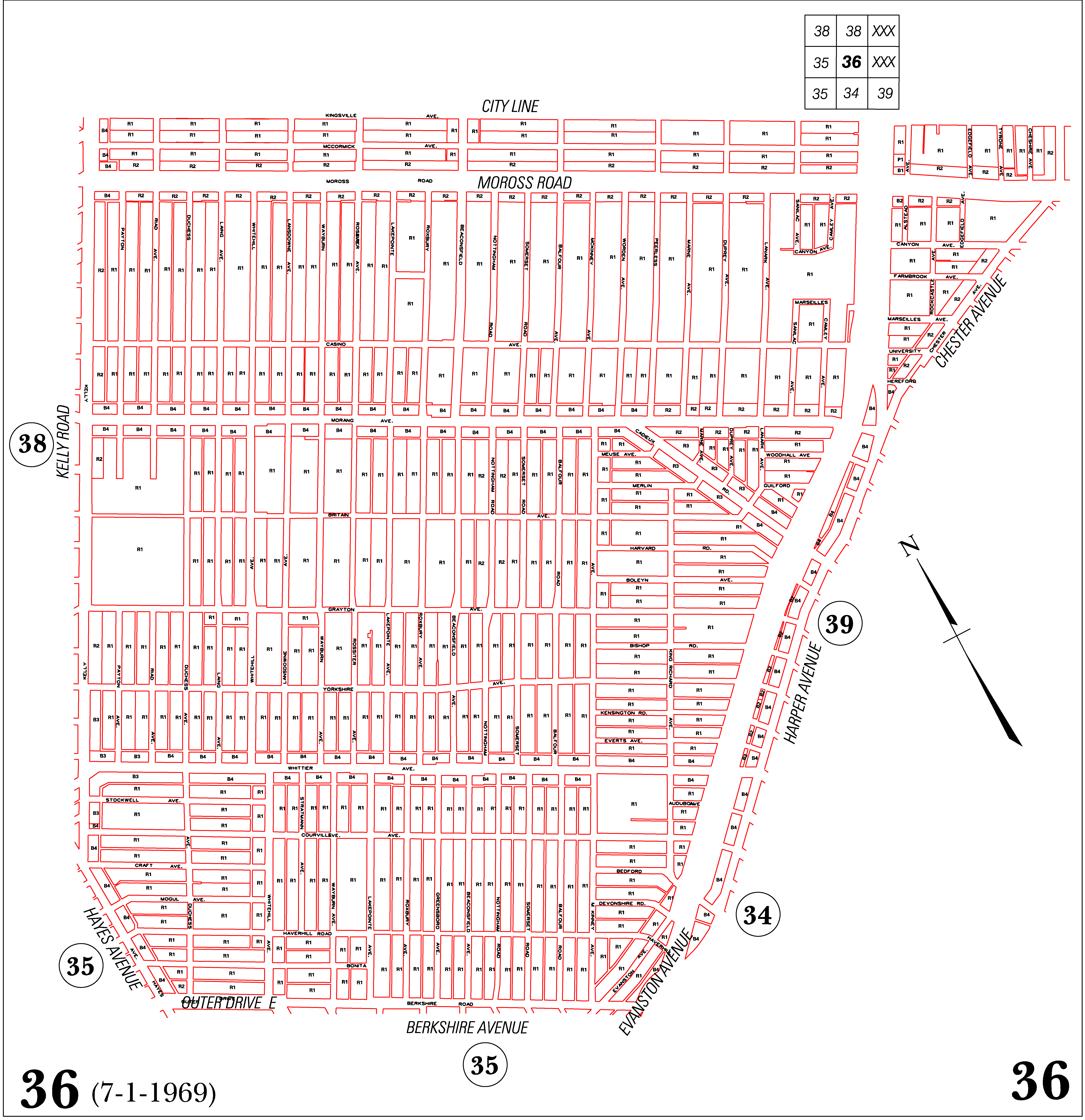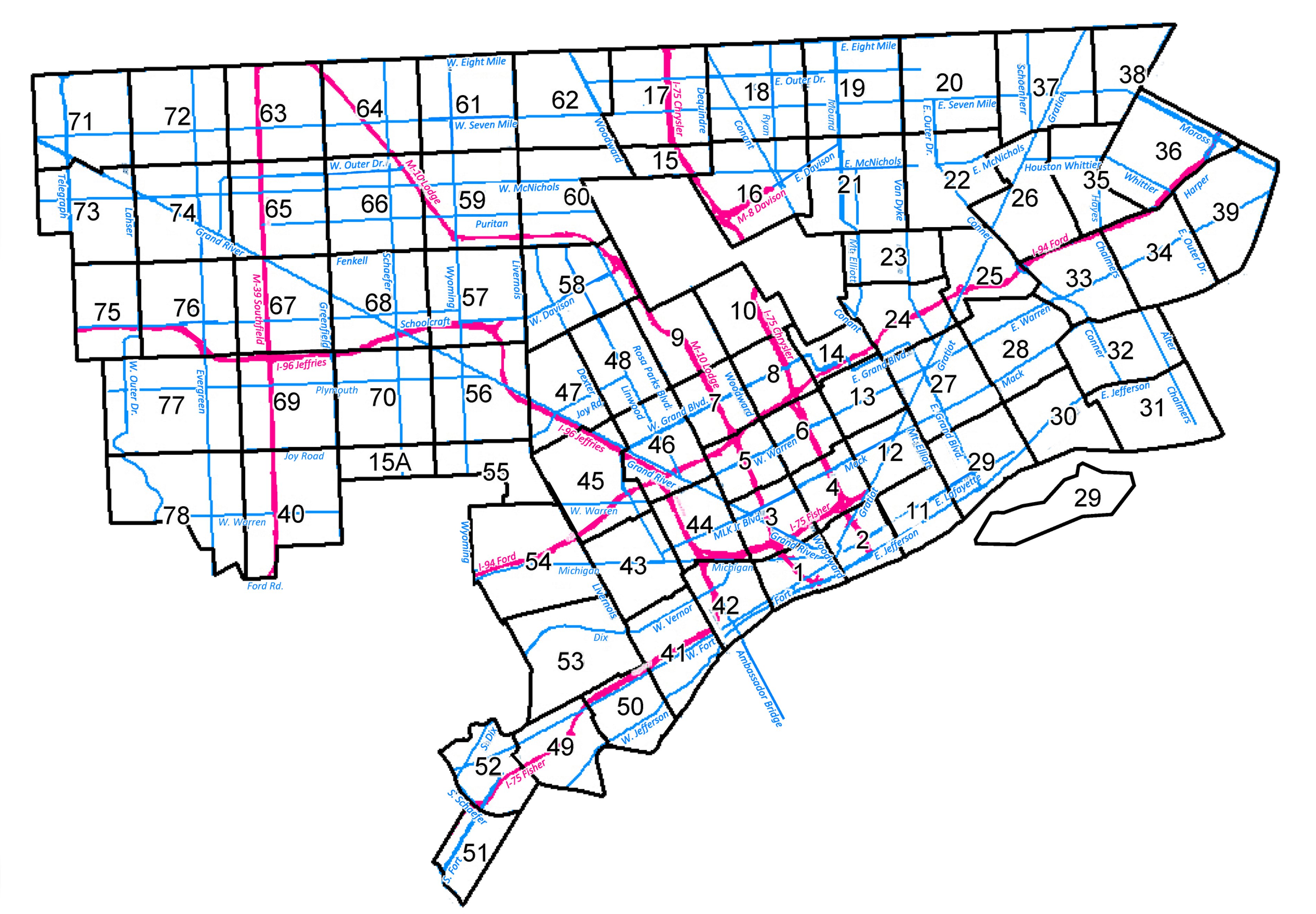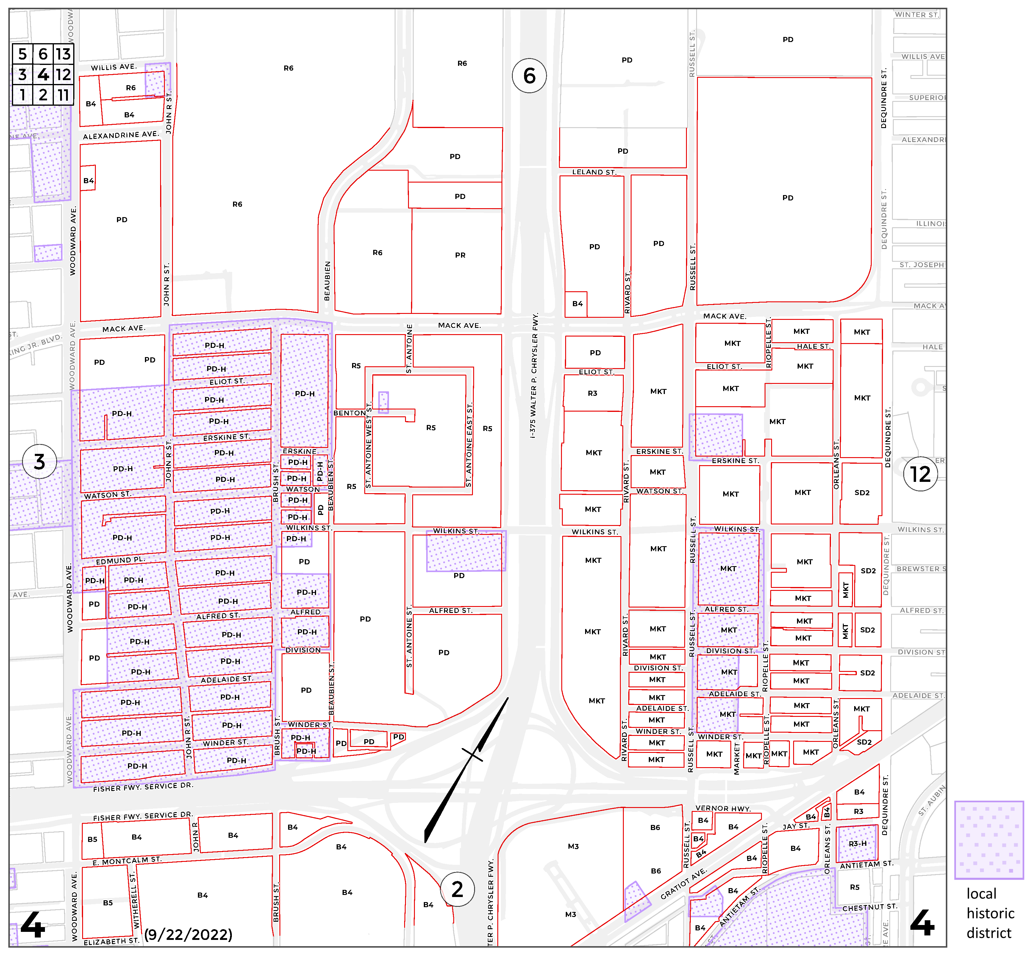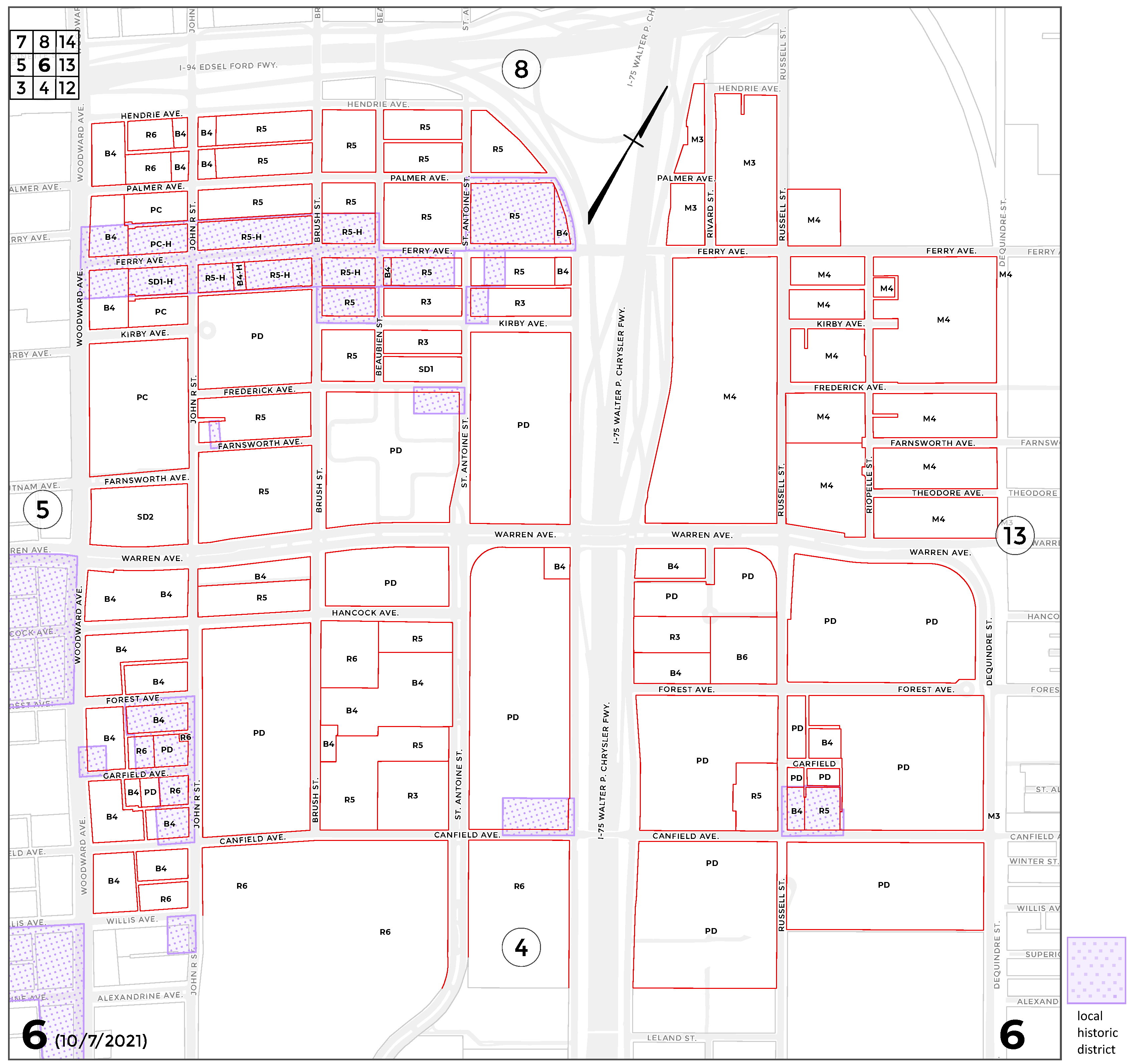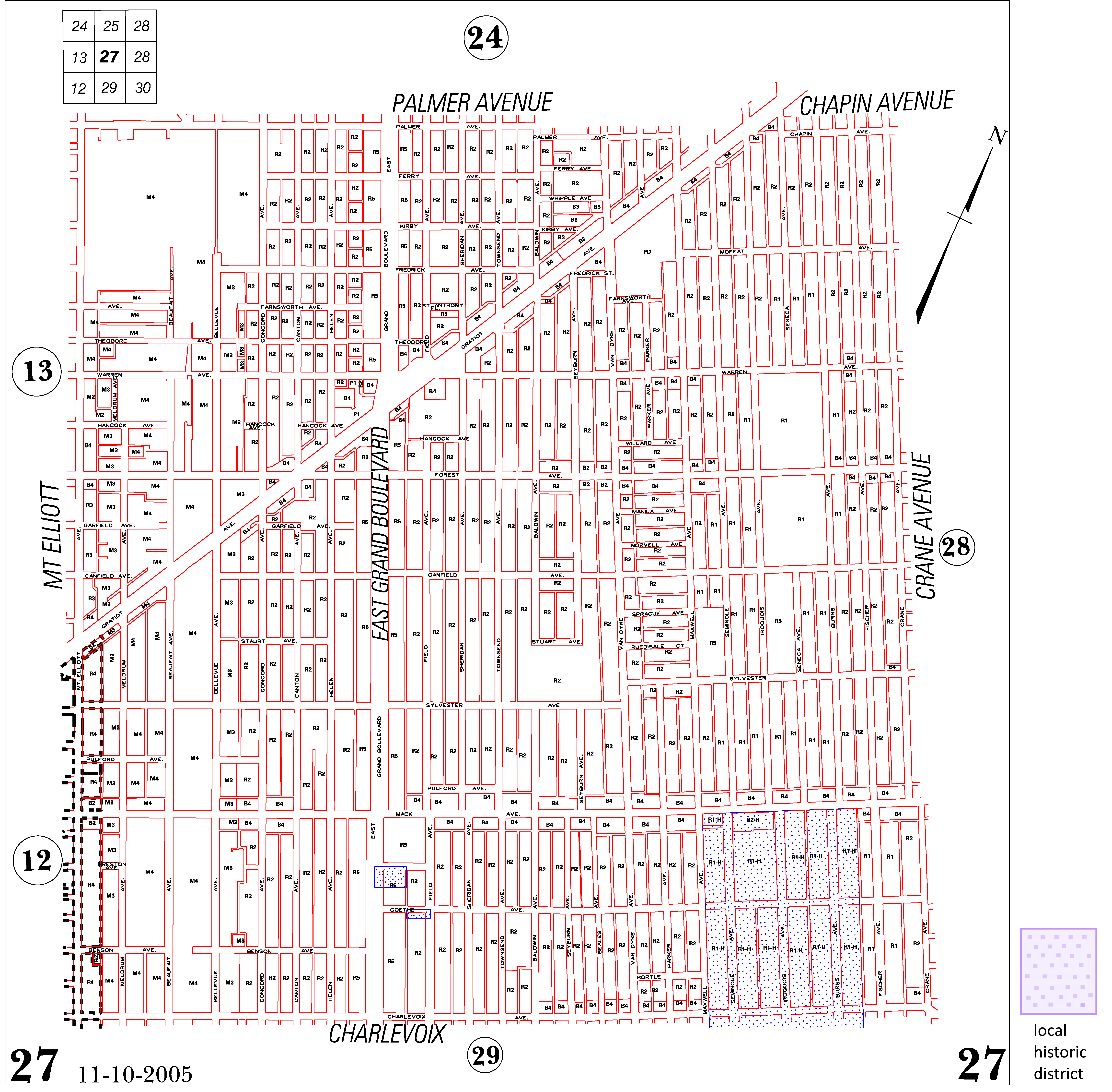 INDEX MAP FOR CITY OF DETROIT ZONING DISTRICTS
