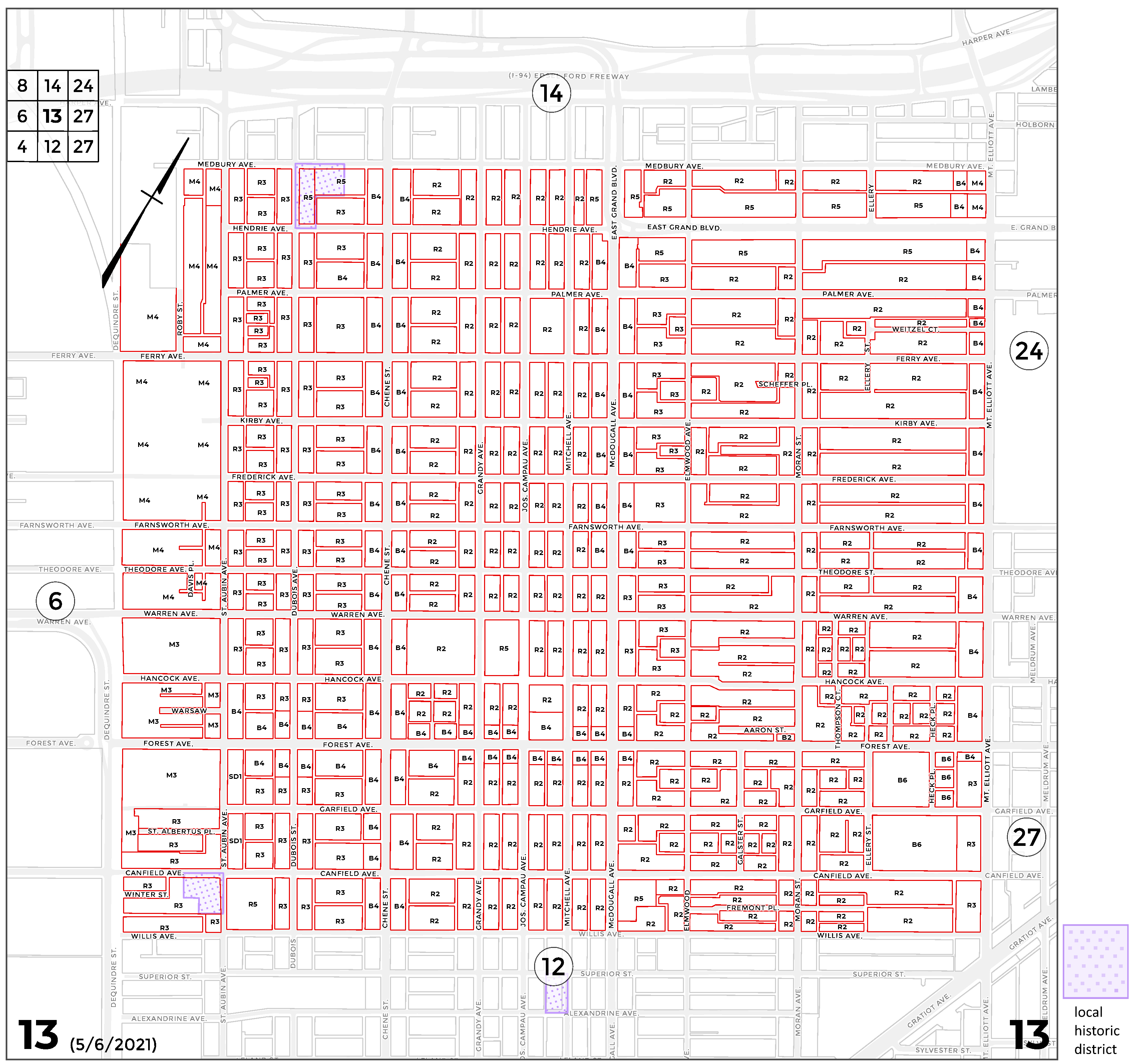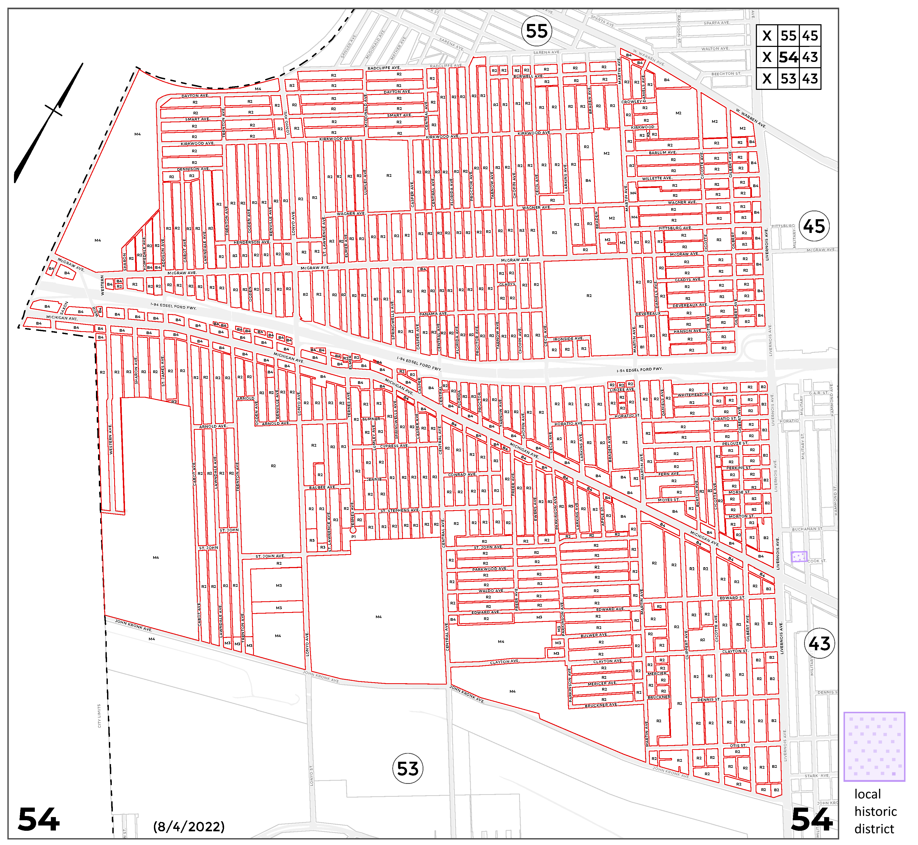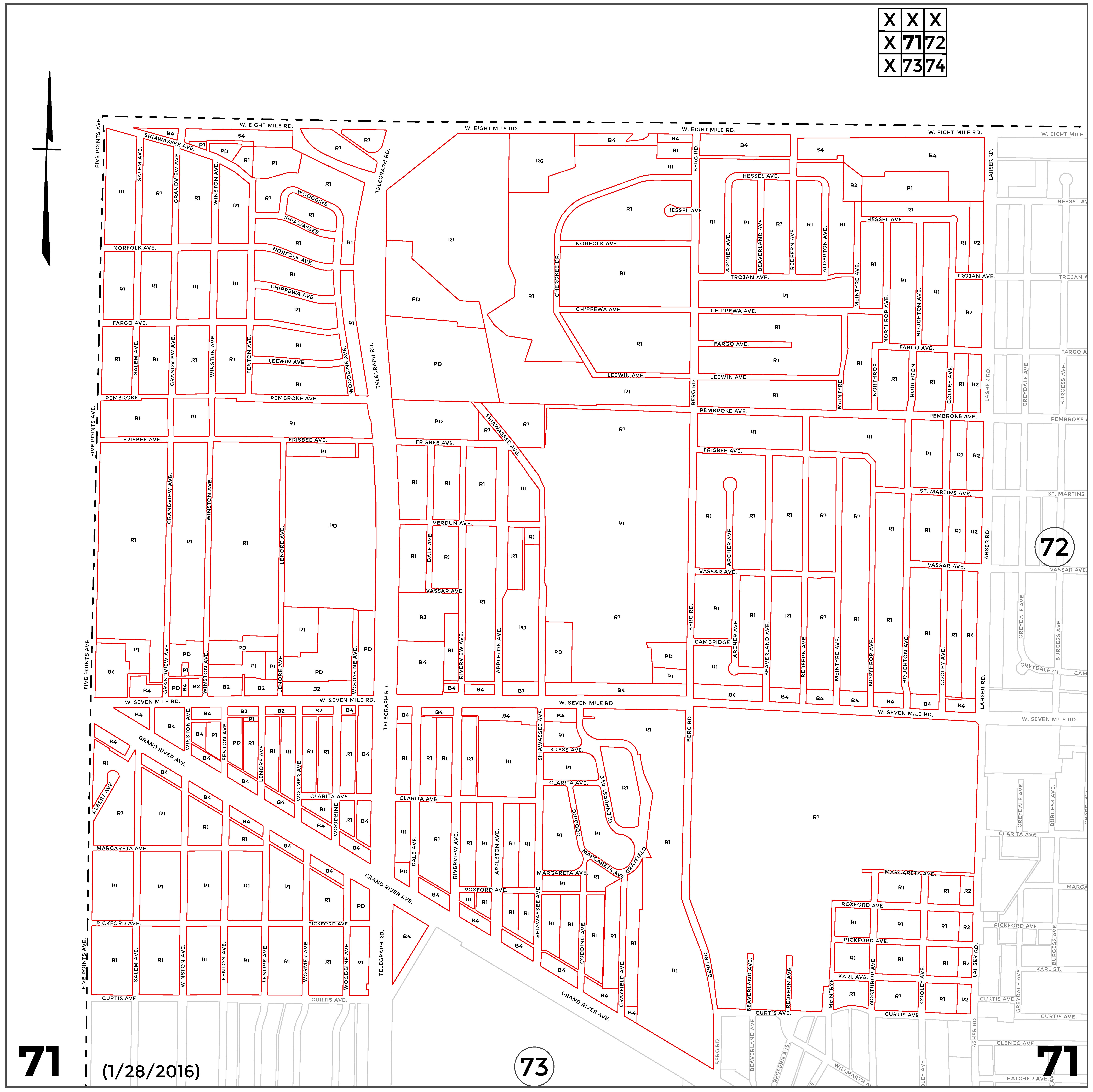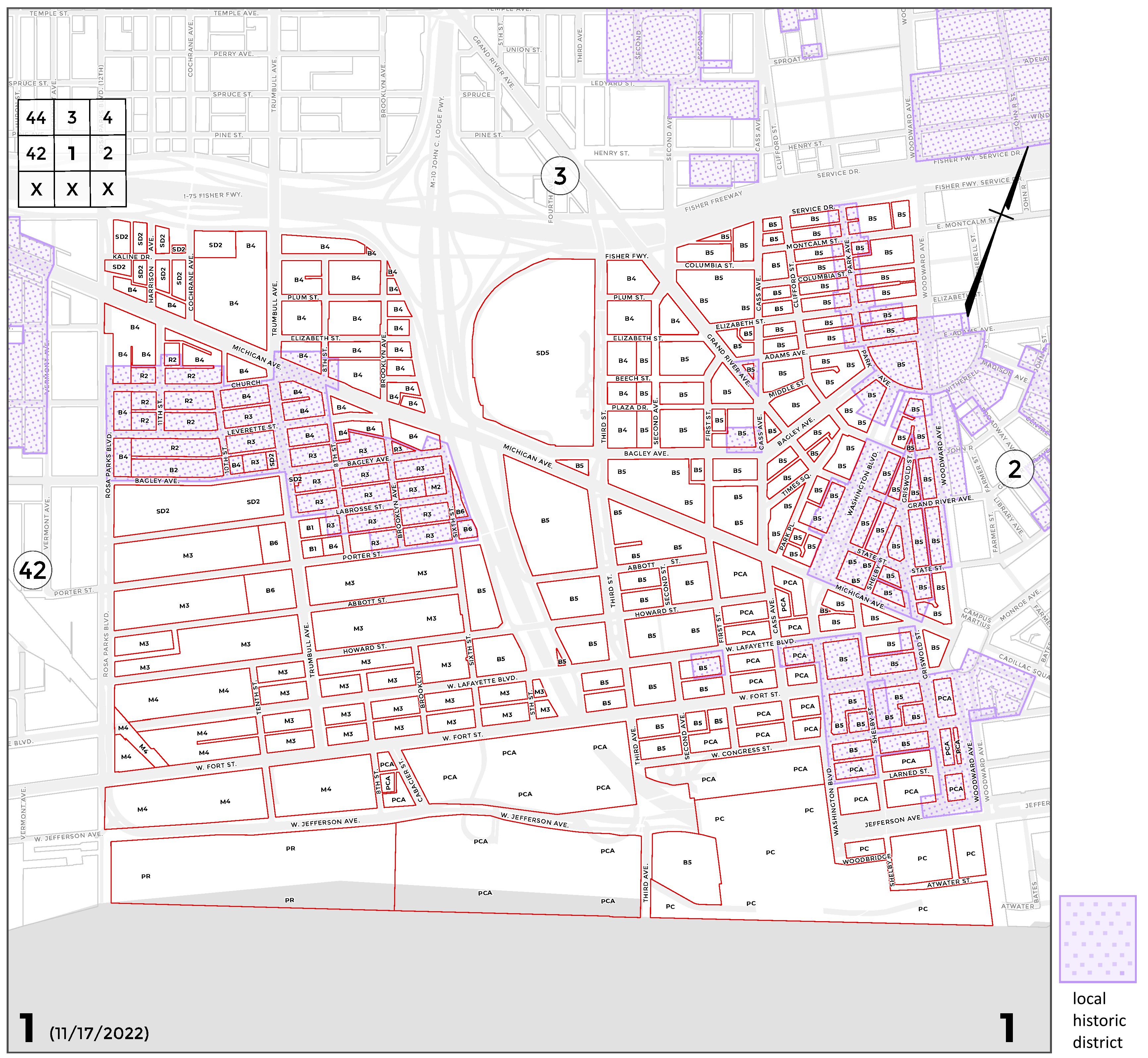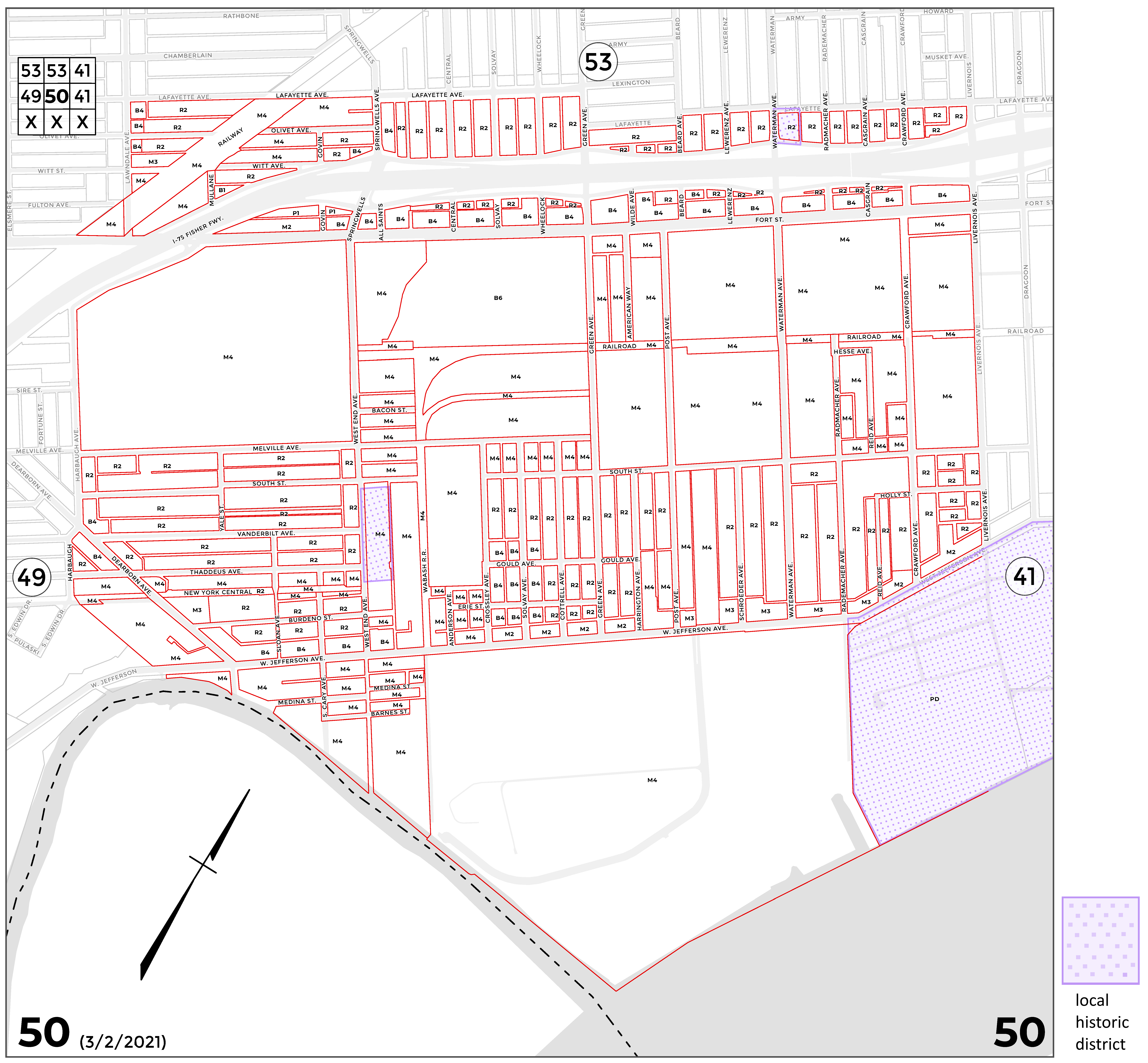 INDEX MAP FOR CITY OF DETROIT ZONING DISTRICTS