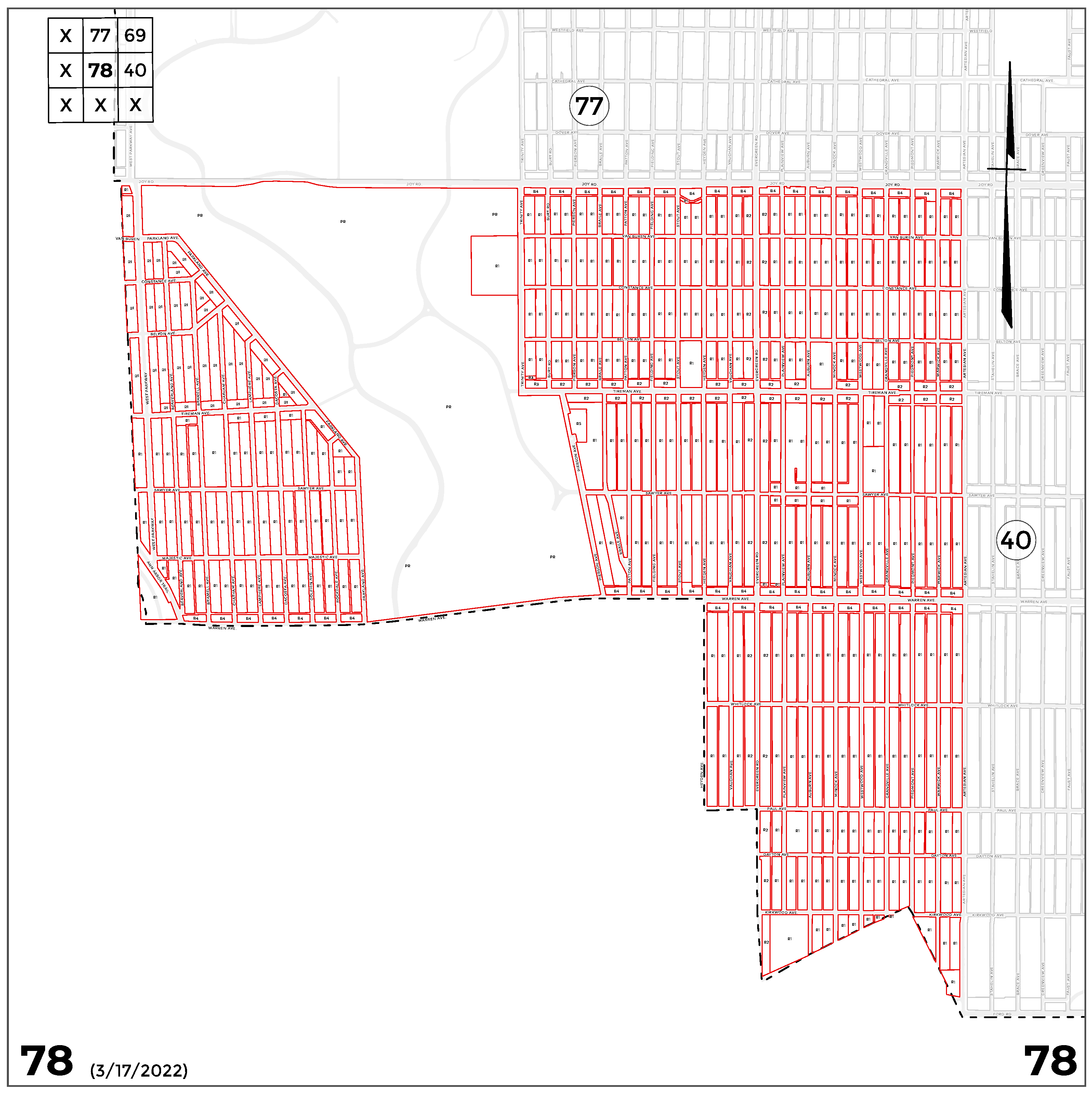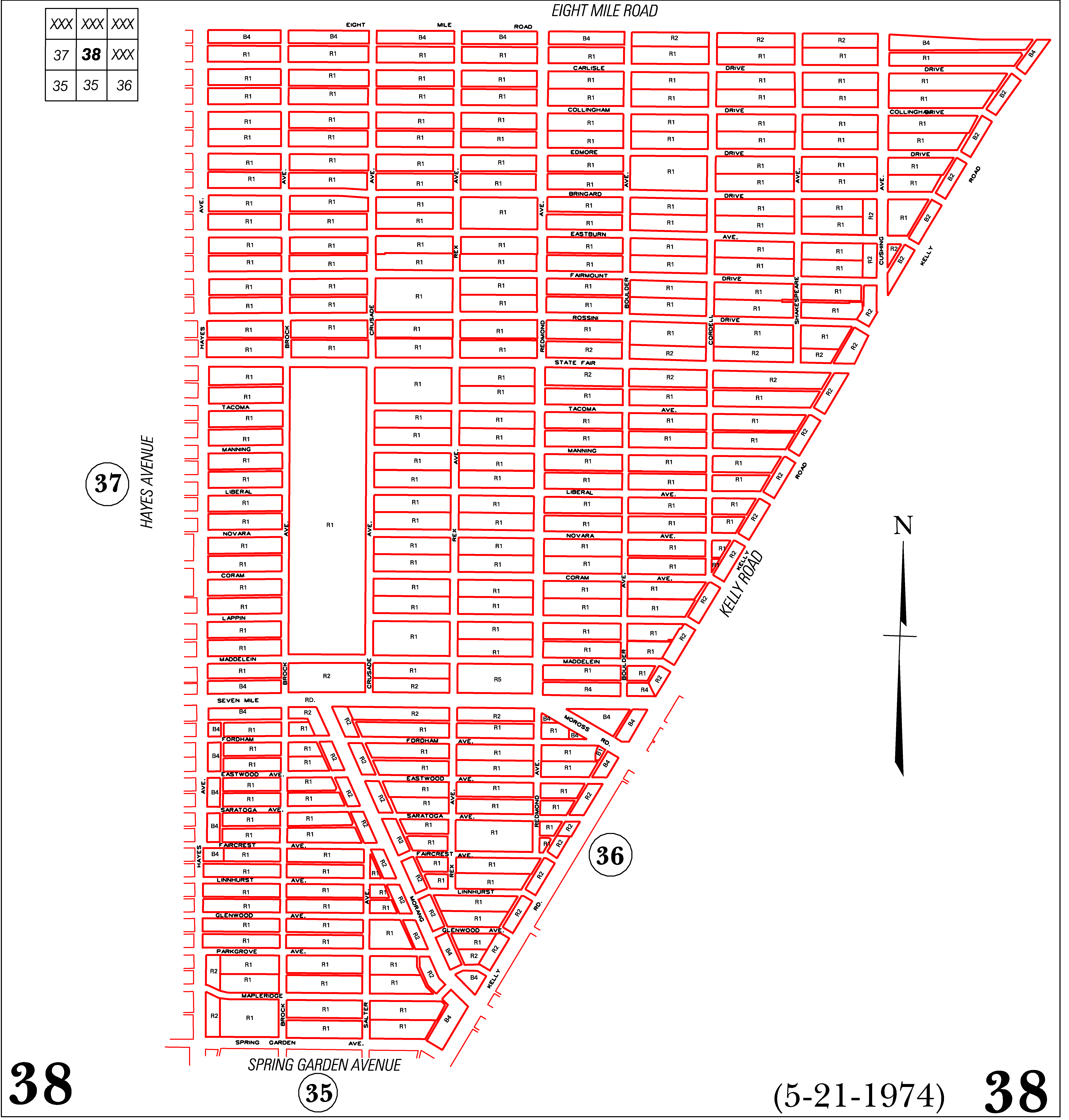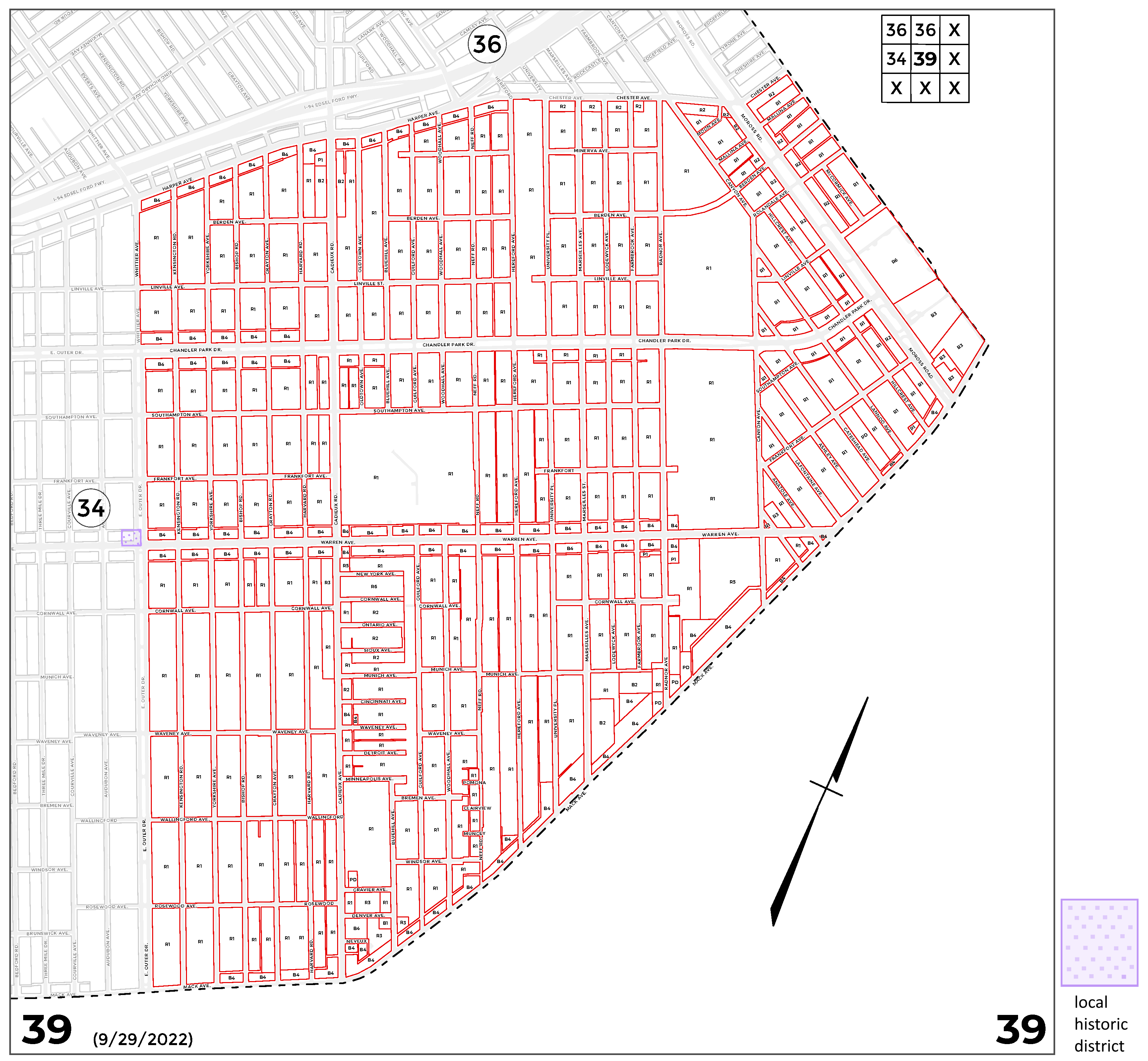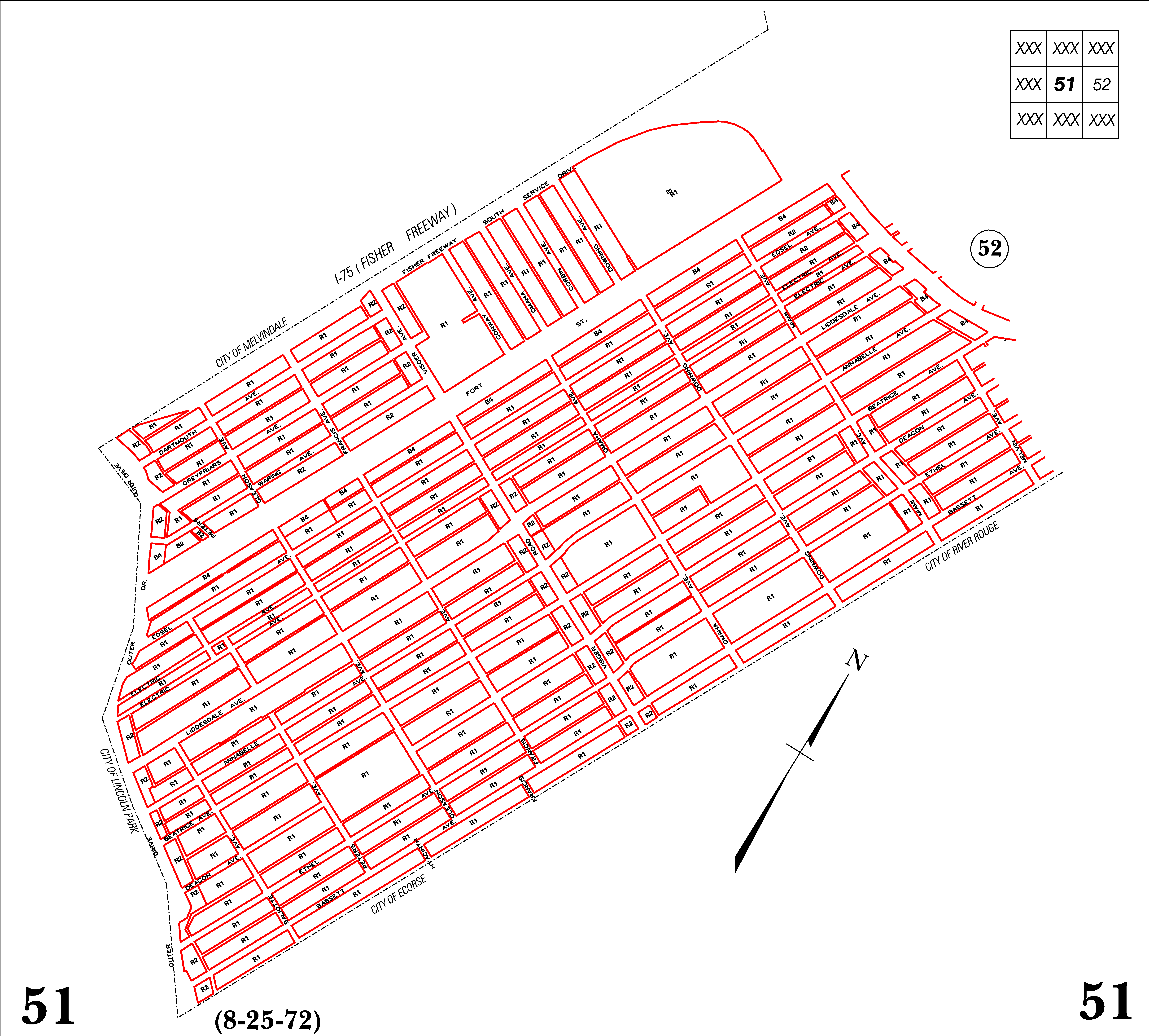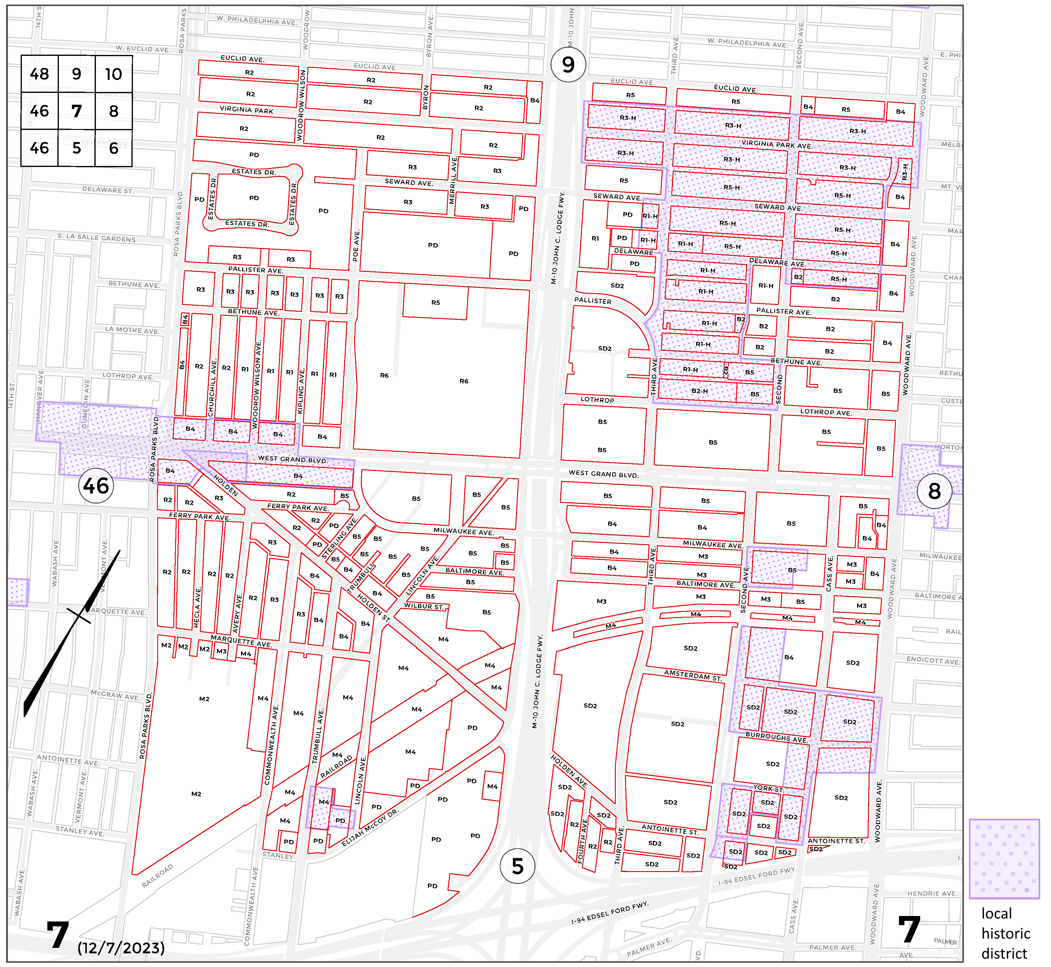 INDEX MAP FOR CITY OF DETROIT ZONING DISTRICTS