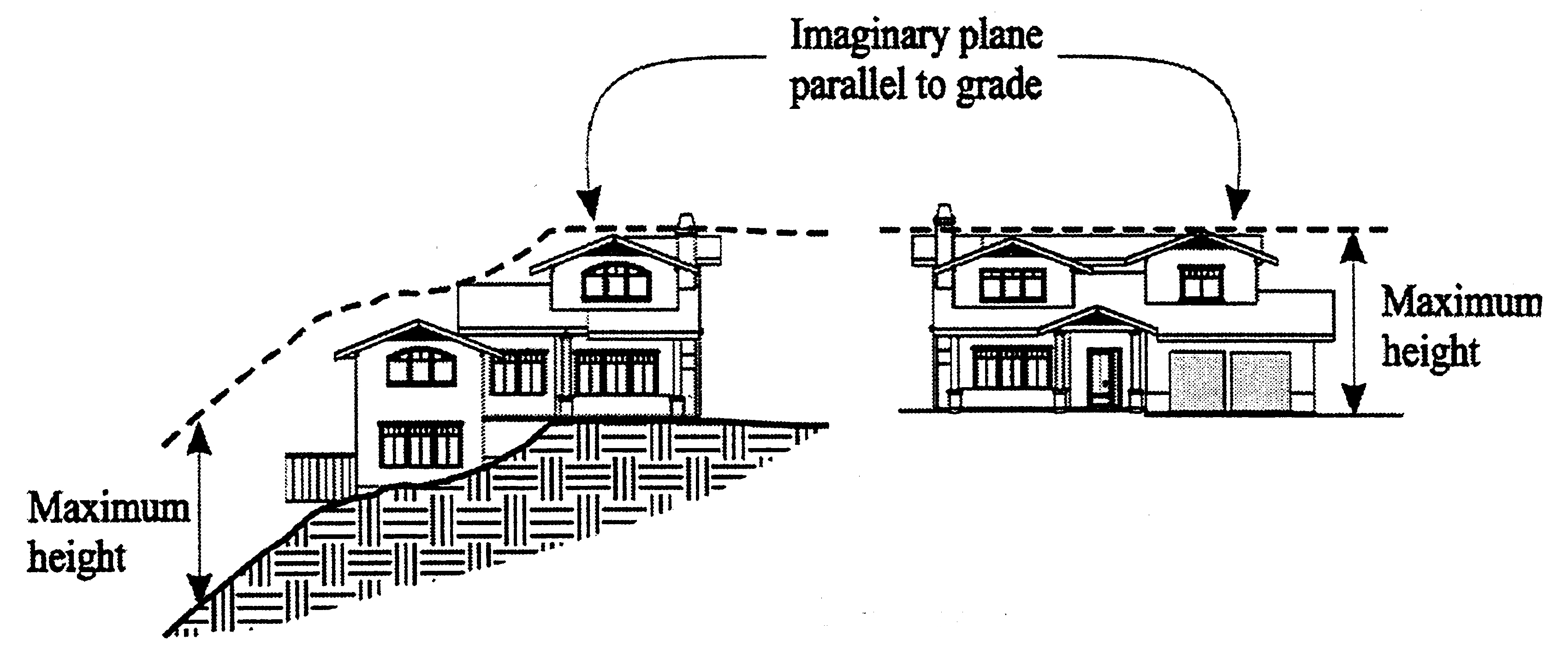 Maximum height. The height of structures shall not exceed the standards established by the applicable zoning districts in article II (Zoning Districts and Allowable Land Uses). Maximum height shall be measured from the finished grade adjacent to any point at each exterior wall of the structure to the highest point of the roofline, above and parallel to the finished grade. Structures in hillside areas shall comply with the height regulations provided in section 22.22.120 (Architecture).