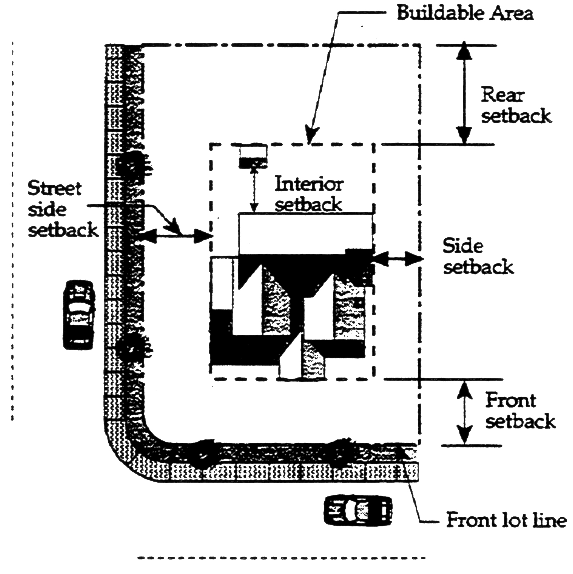 Side yard. An area extending from the front yard to the rear yard between the nearest side lot line and the required setback.