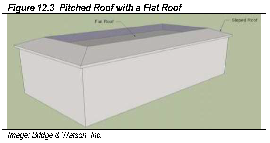 All one-story buildings less than ten-thousand (10,000) gross square feet must have a pitched roof (between 3:12 and 12:12) as much as possible.