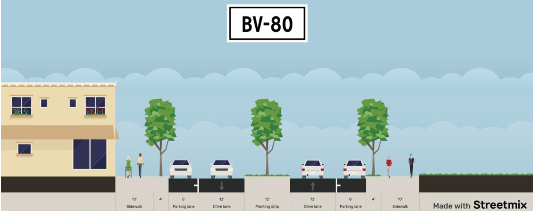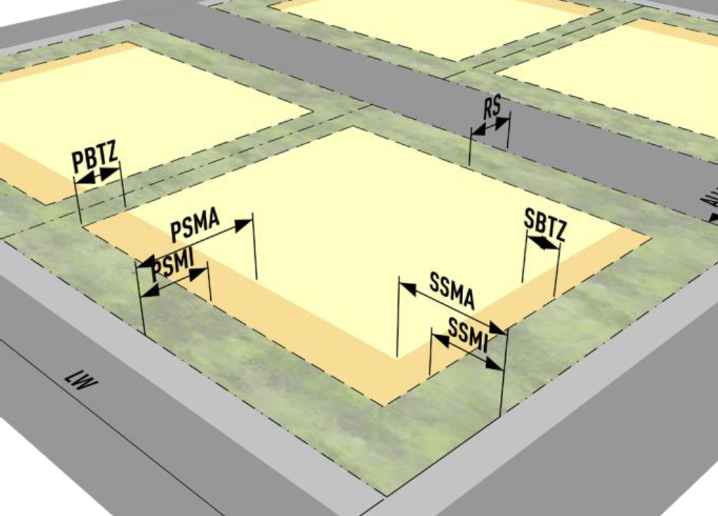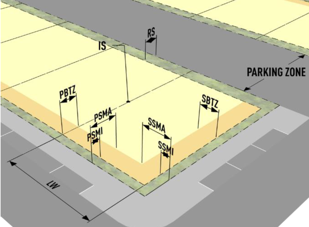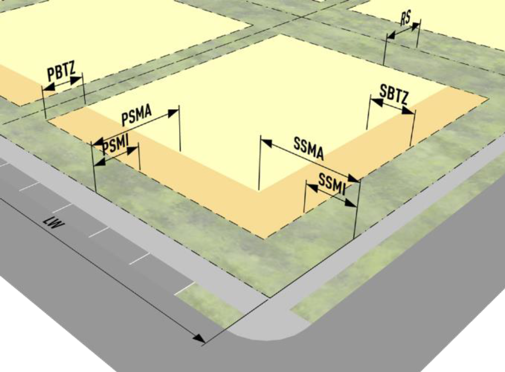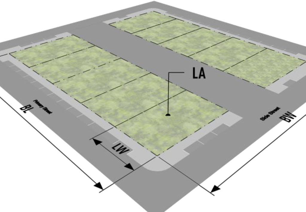 Lot width: Minimum of 80 feet at building setback line, and 40 feet on a public or platted street. Corner lots shall have a minimum width of 85 feet at the building setback line.