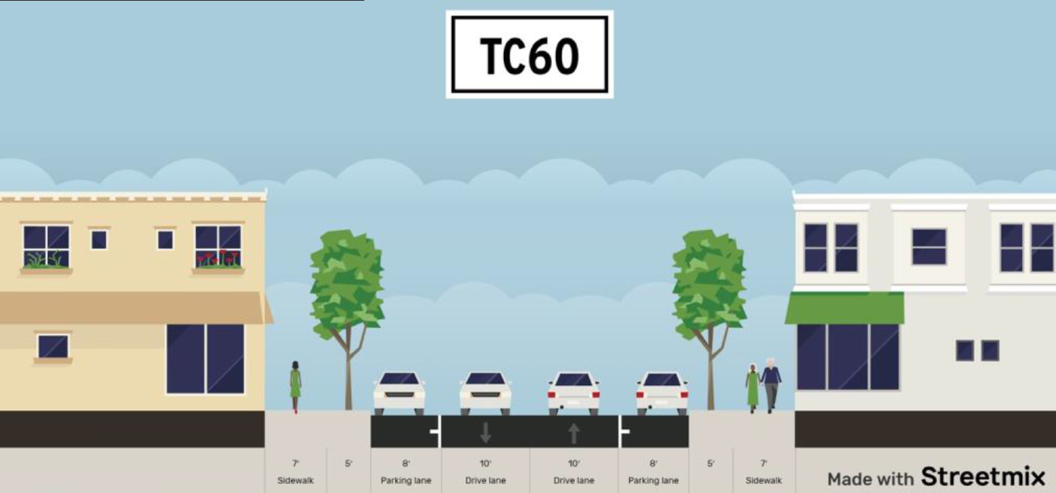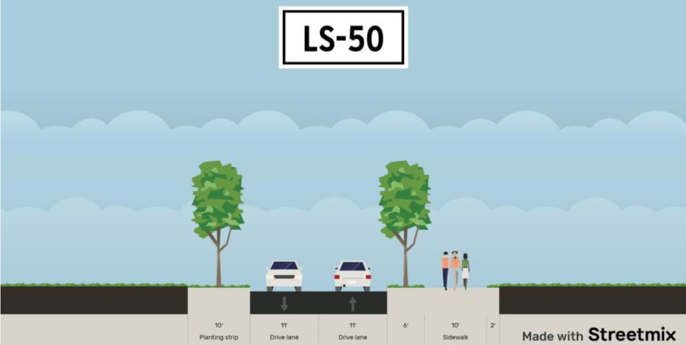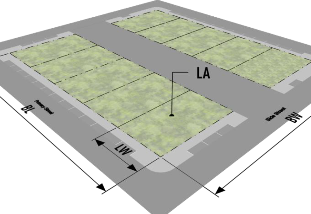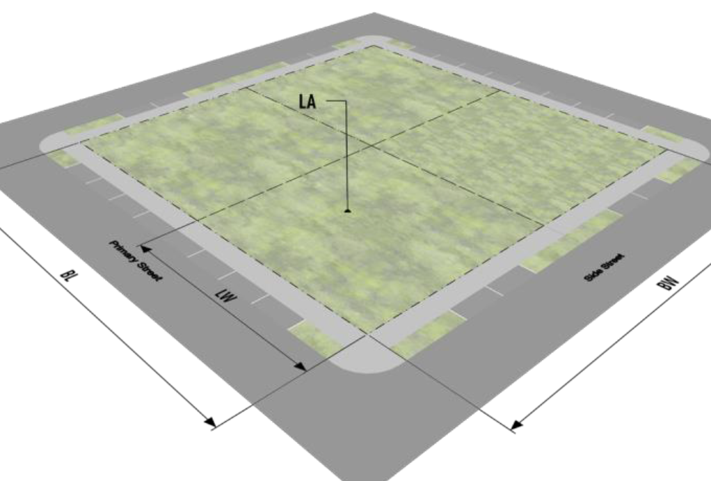 Lot width: Minimum of 60 feet at building setback line, and 40 feet on a public or platted street. Corner lots shall have a minimum width of 75 feet at the building setback line.
