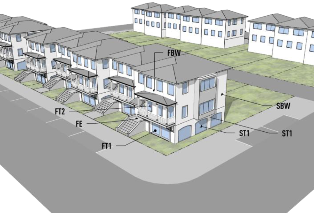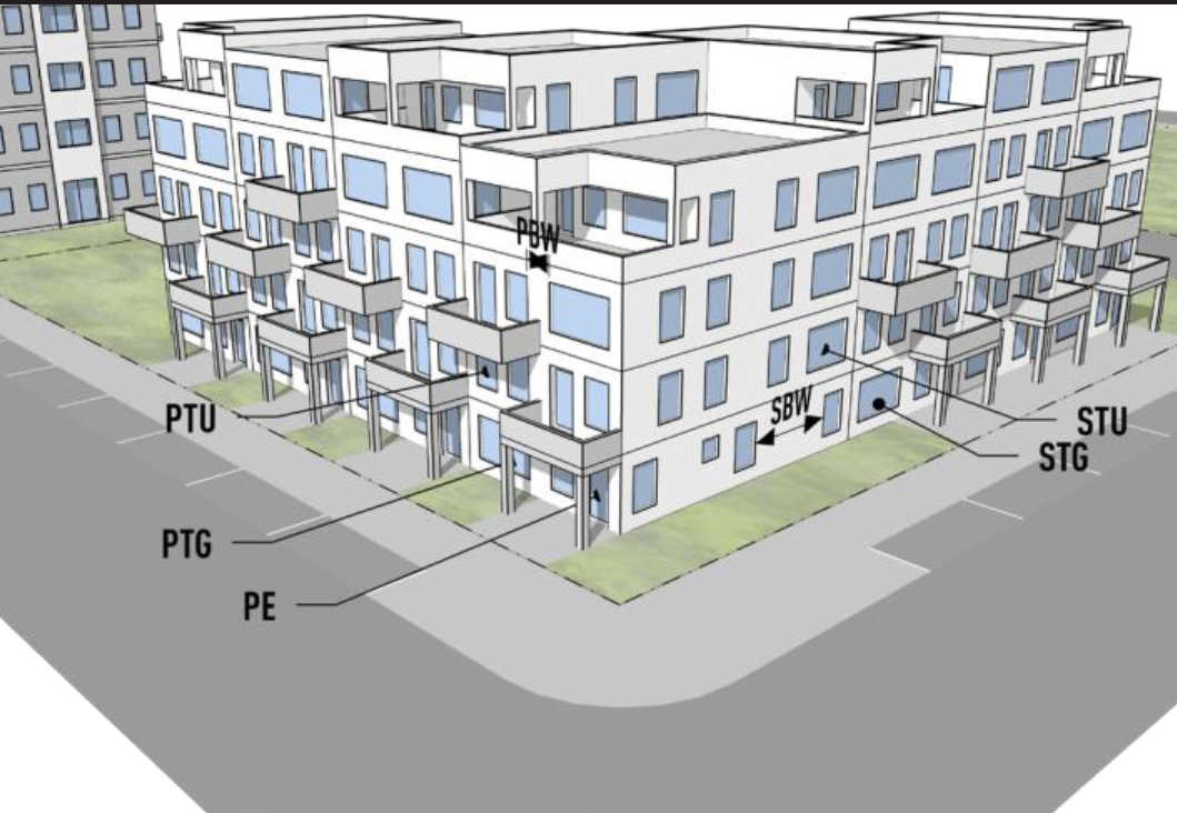 Parking Spaces and Garages shall be provided in accordance with Article 8, but no parking garage shall be detached from the main structure.