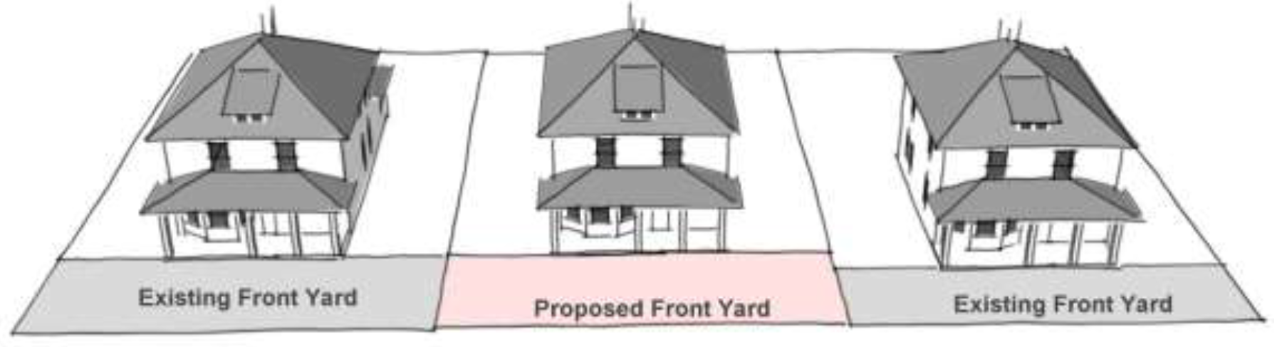 [Front yard depth.] The front yard of a lot between two lots (each having a principal building within twenty (20') of the lot) may be reduced to a depth equal to that of the greater of the two adjoining lots, except that the front yard shall not be less than ten (10') feet.