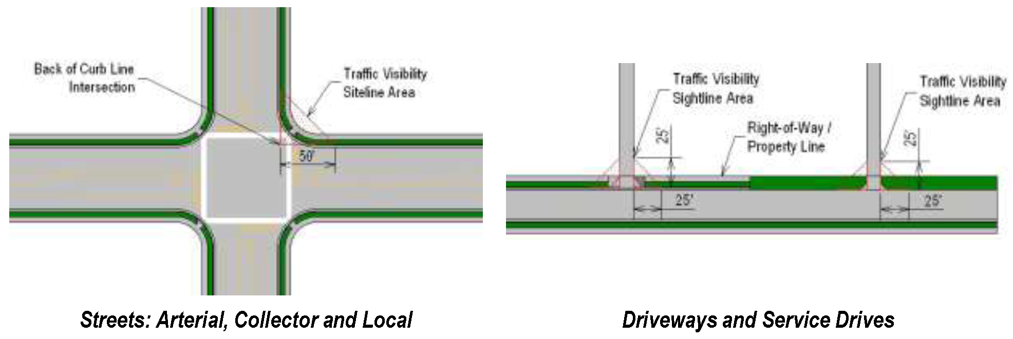 Sightlines at Intersections of Driveways or Access ways with Streets.