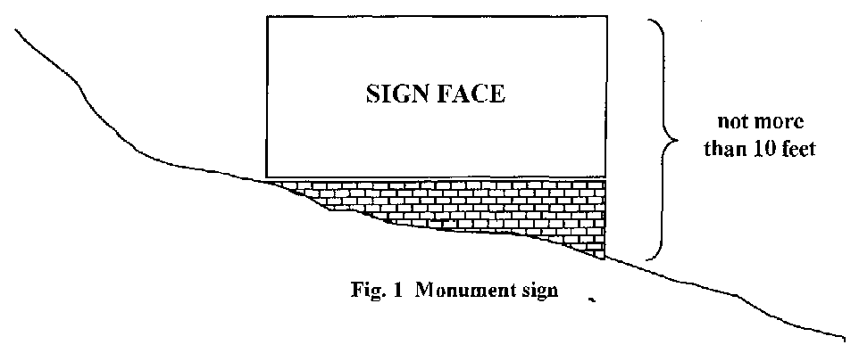 Monument sign means a freestanding sign of not more than ten (10) feet in height that includes an architecturally designed base or column which is constructed of stone, brick, timbers or other similar material and is designed to be architecturally compatible with the design of the project. See Figure 1.