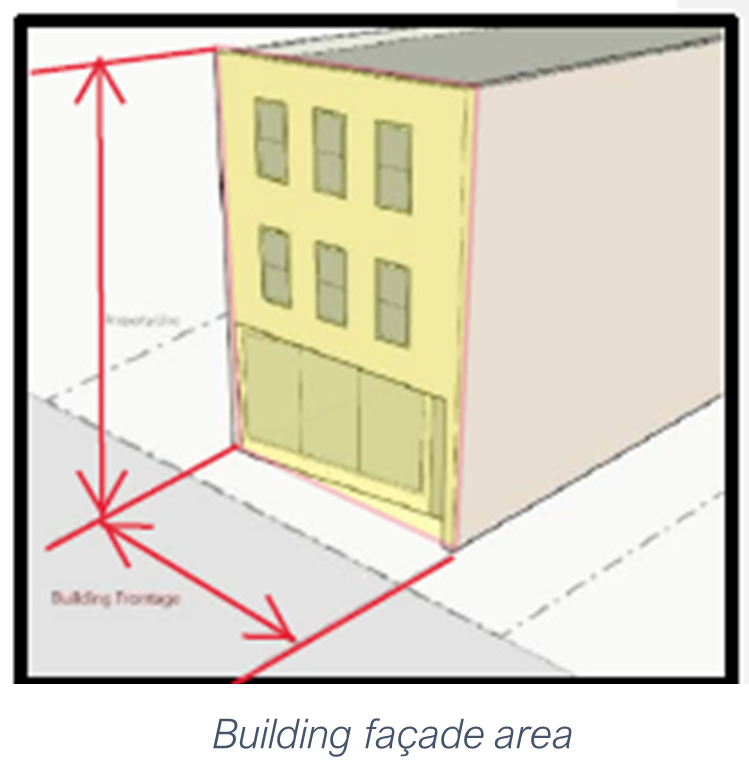 Between Buildings: The horizontal distance between the two closest portions of each building's exterior walls.
